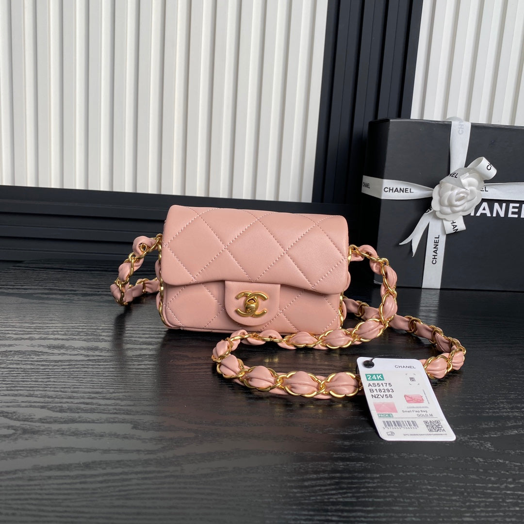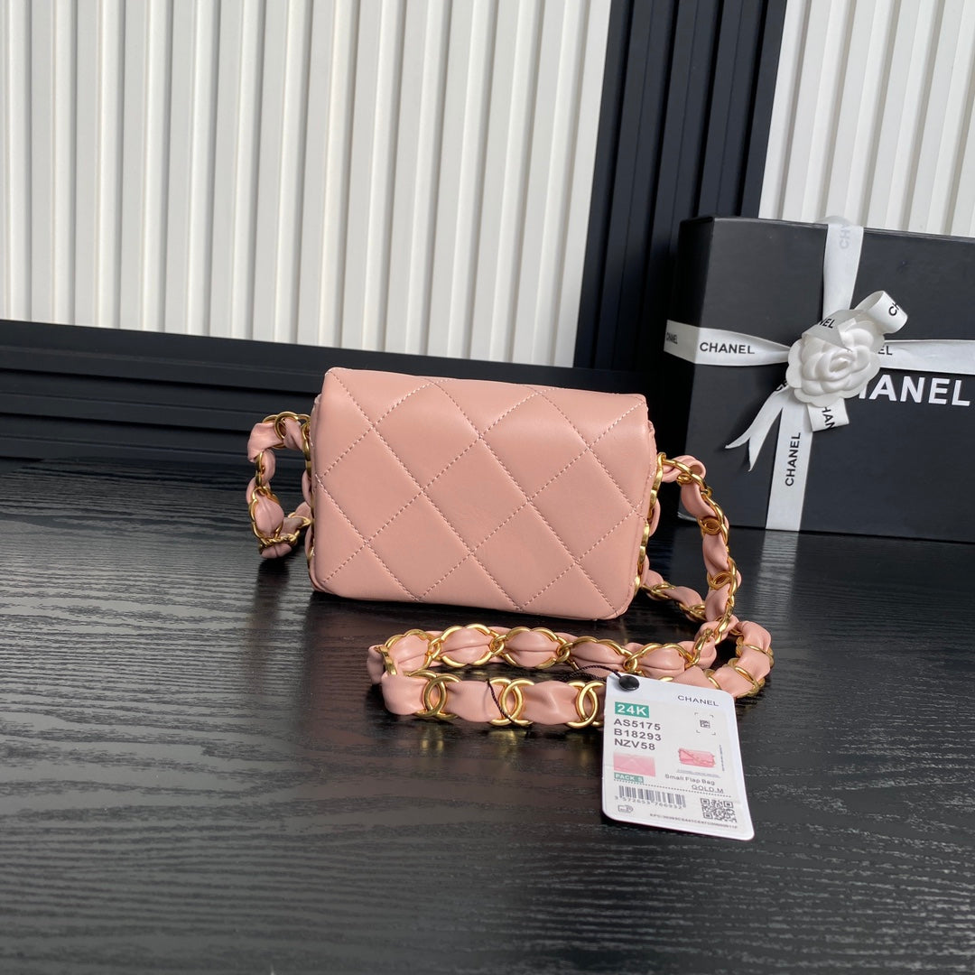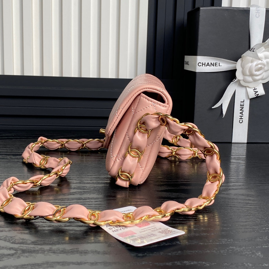 MINI FLAP BAG 16 IN MELON PINK CALFSKIN GOLD DOUBLE C THICK CHAIN