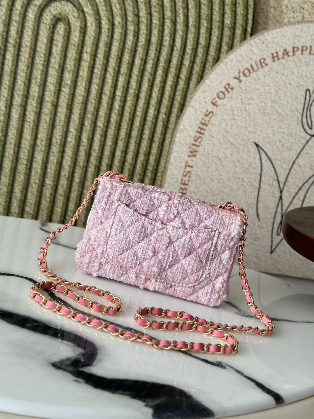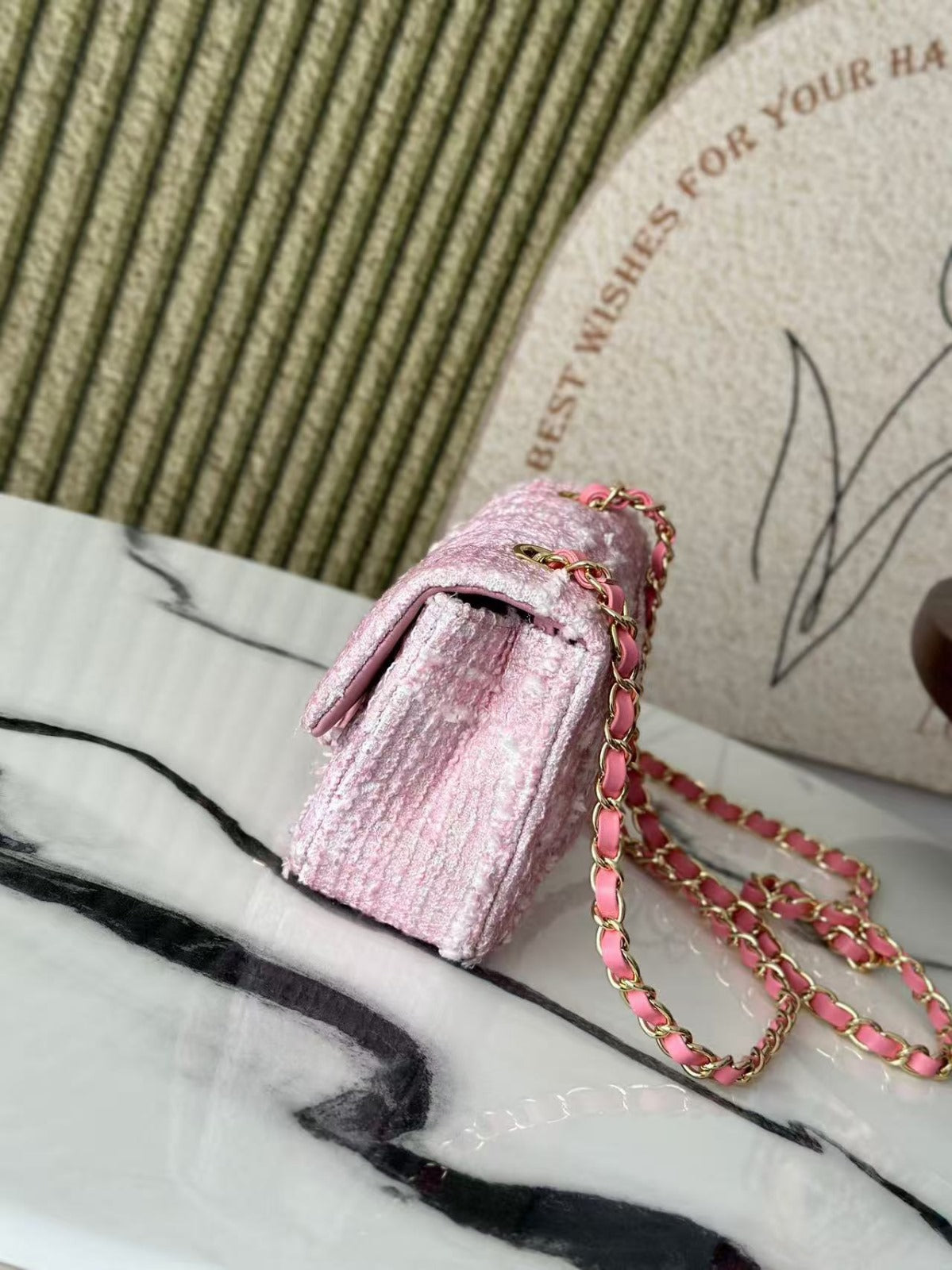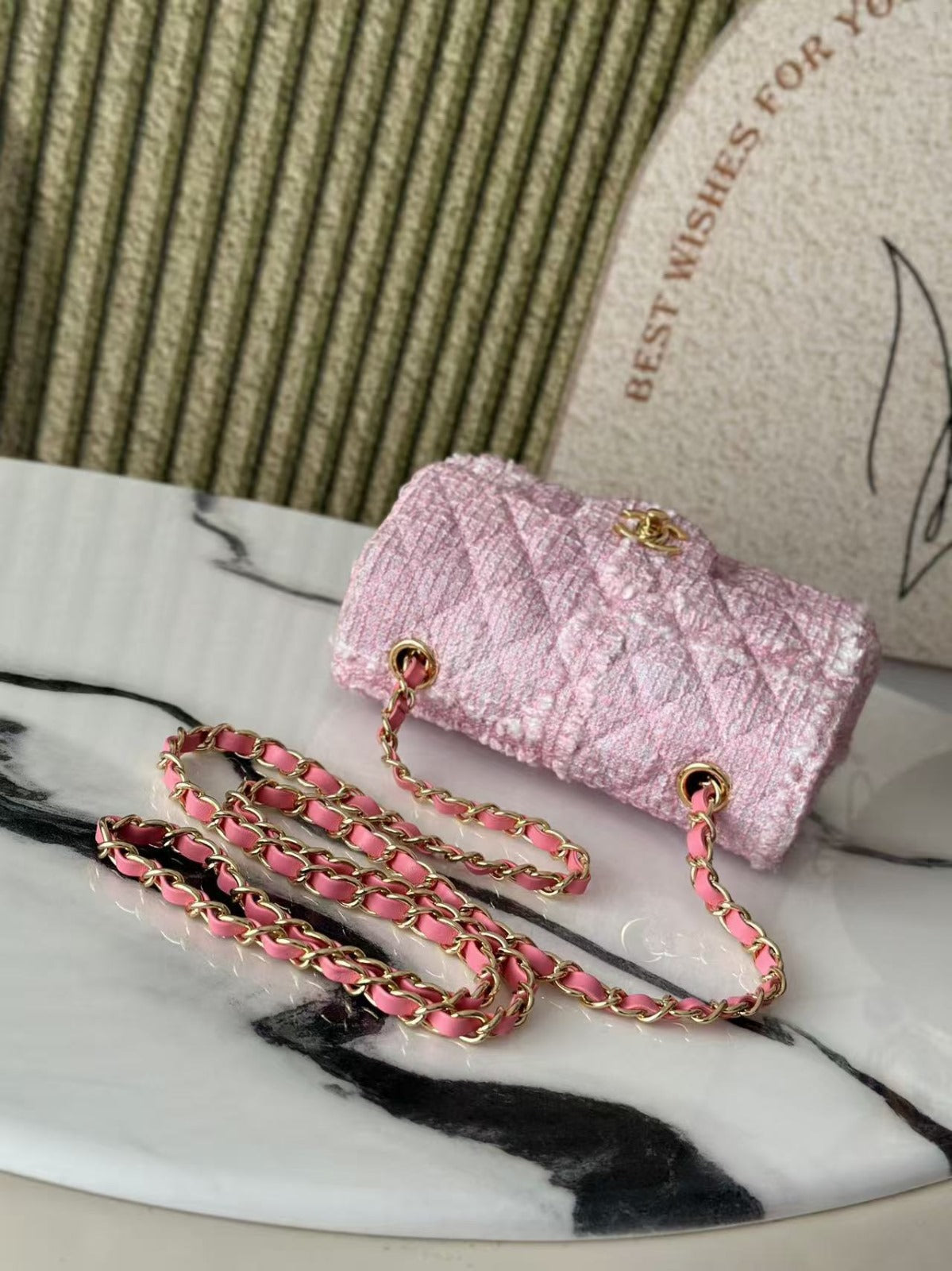 MINI FLAP BAG 20 IN LIGHT PINK TWEED GOLD HARDWARE