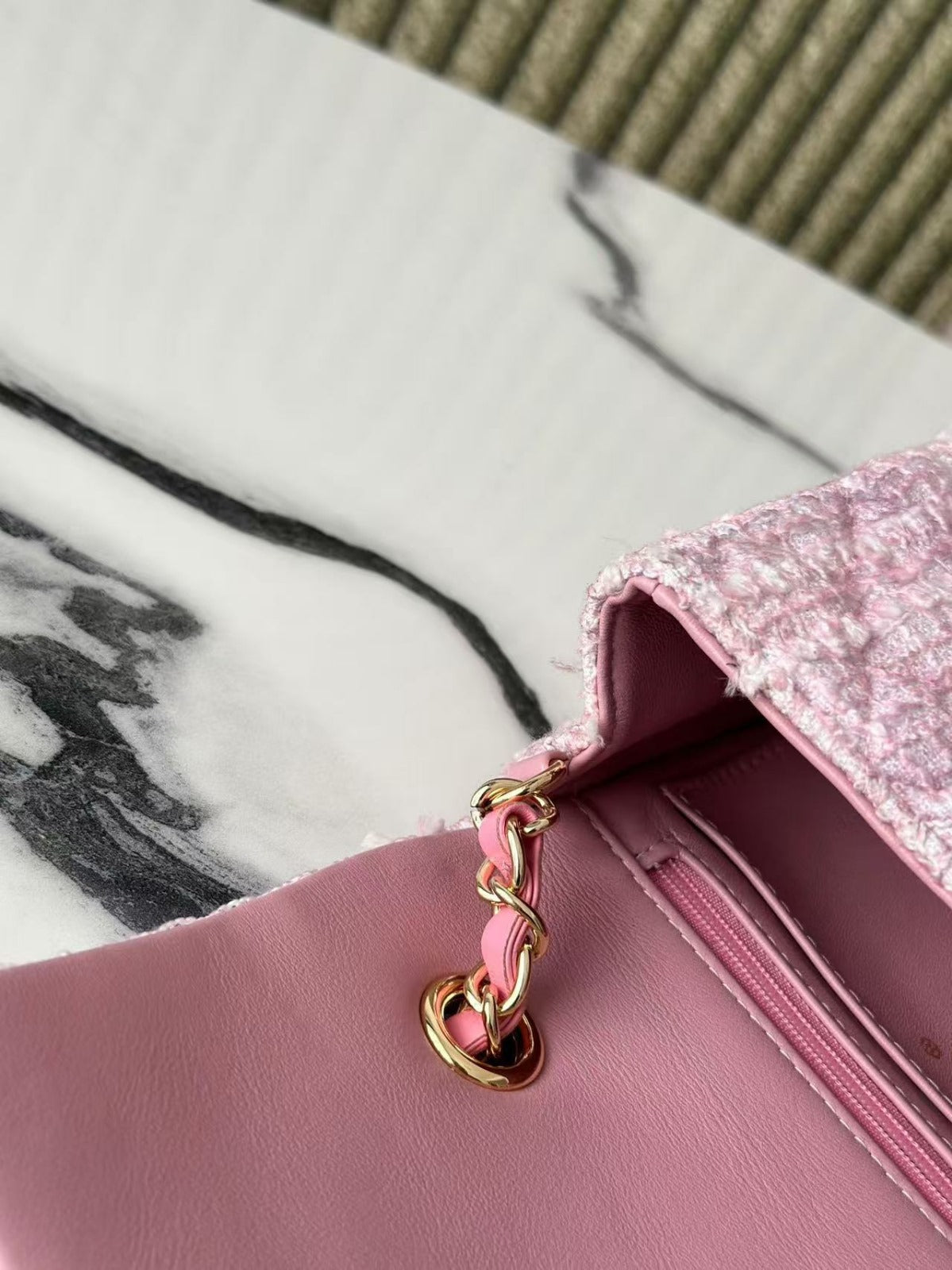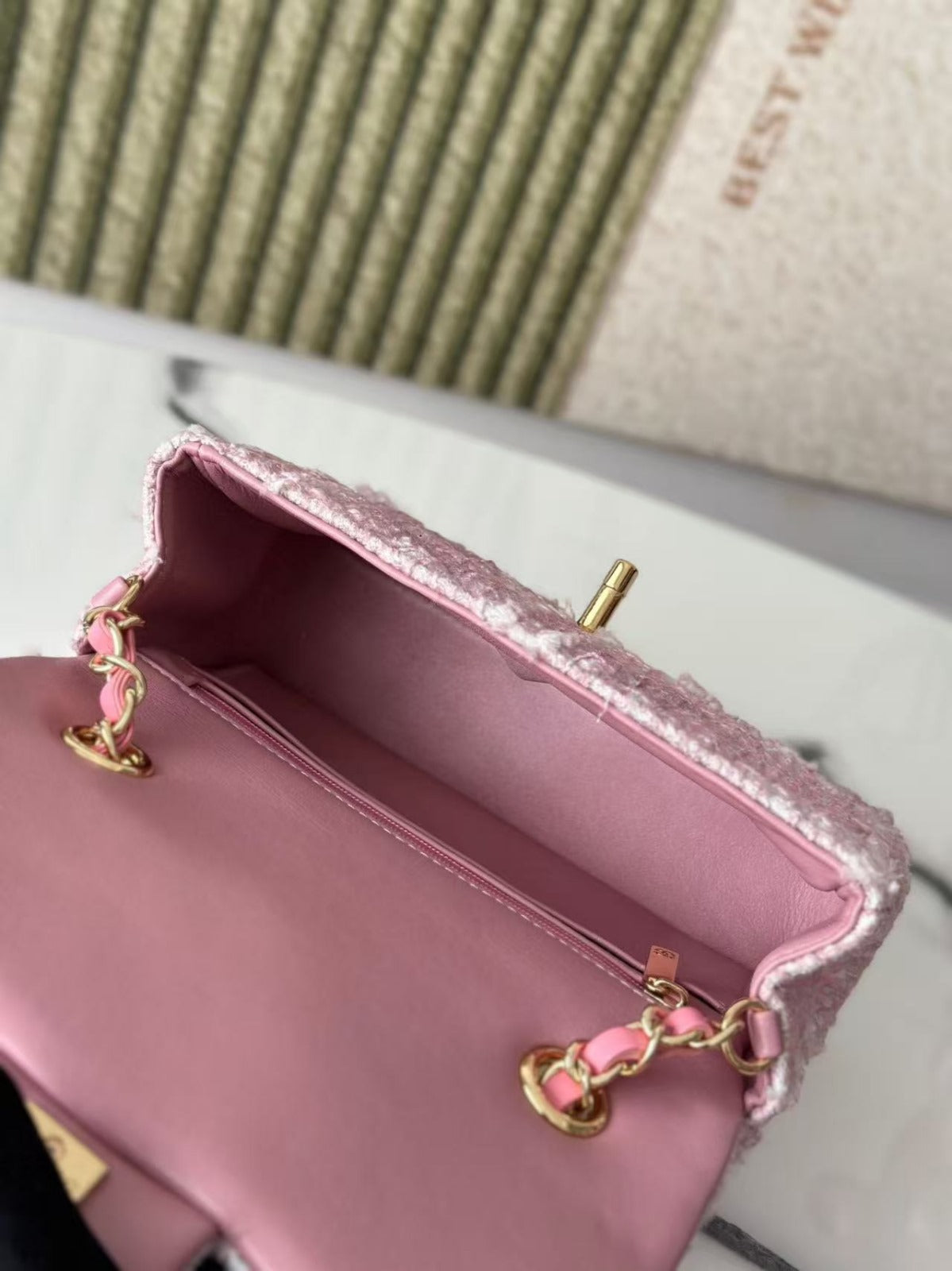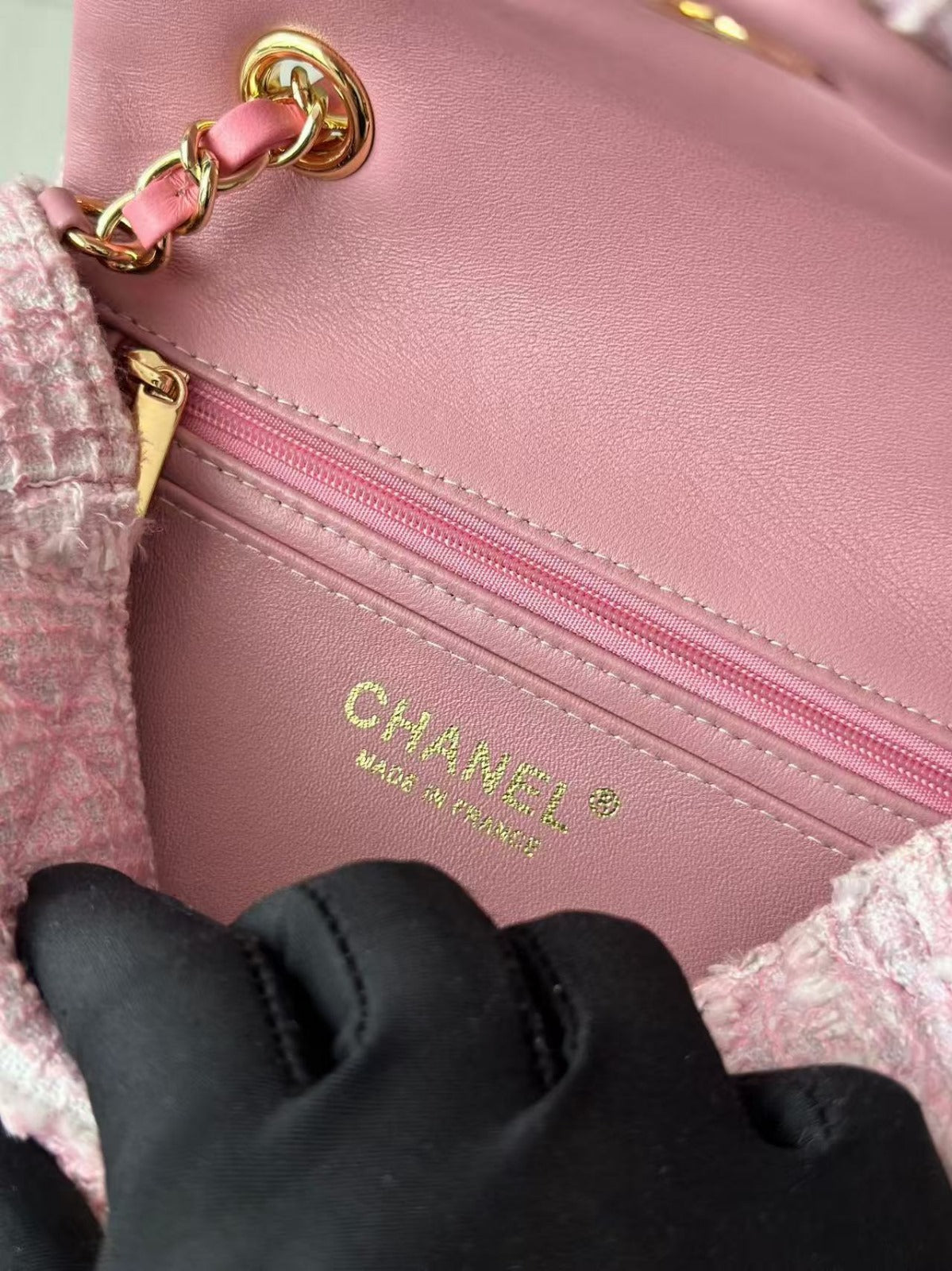 MINI FLAP BAG 20 IN LIGHT PINK TWEED GOLD HARDWARE
