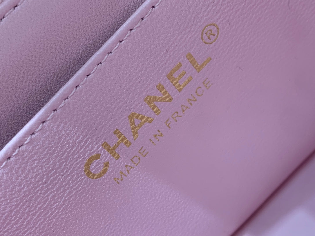 MINI SQUARE FLAP BAG 17CM PINK LAMBSKIN GOLD HARDWARE