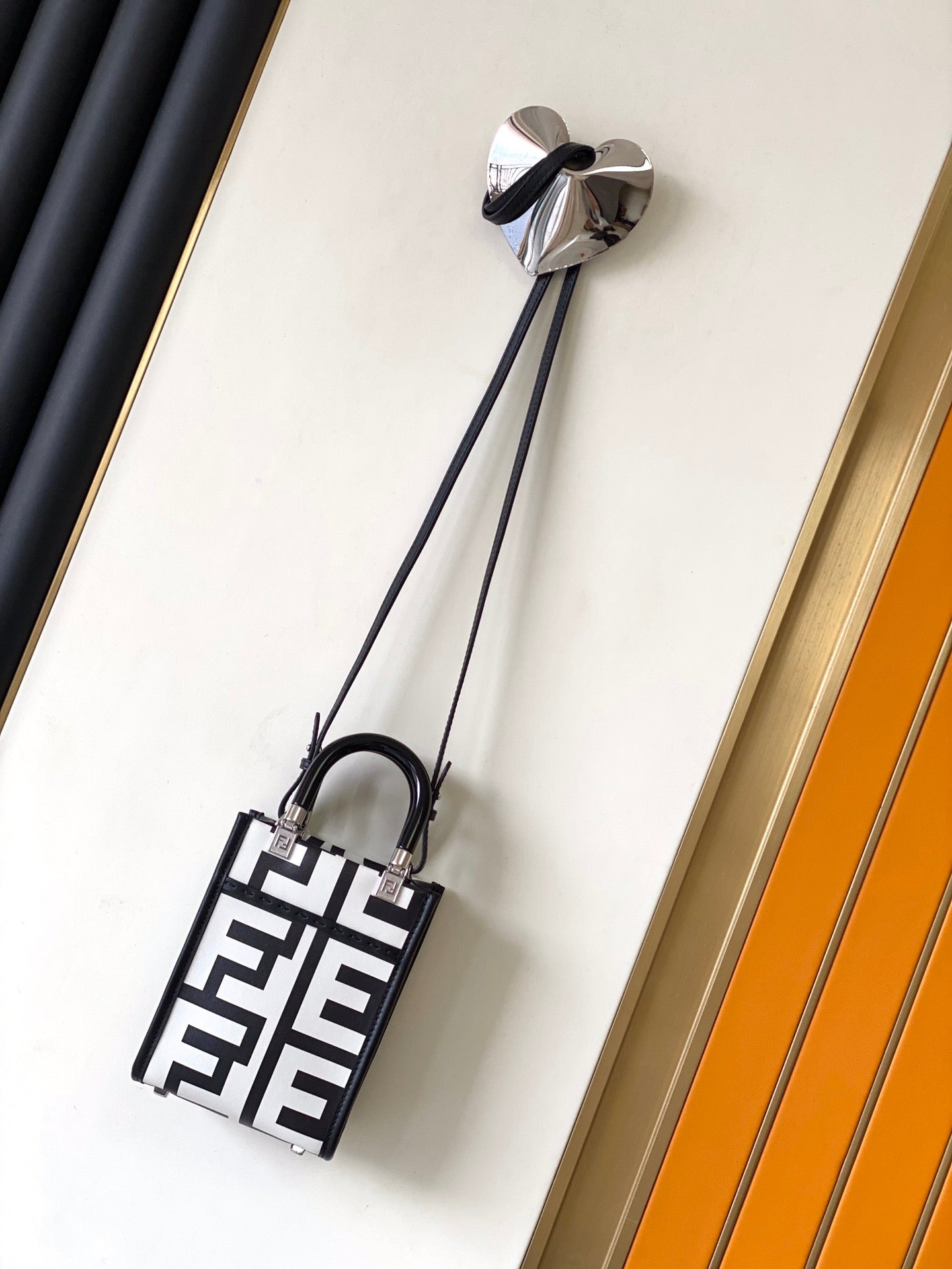 MINI SUNSHINE SHOPPER BAG 18 IN WHITE MIX BLACK SMOOTH CALFSKIN
