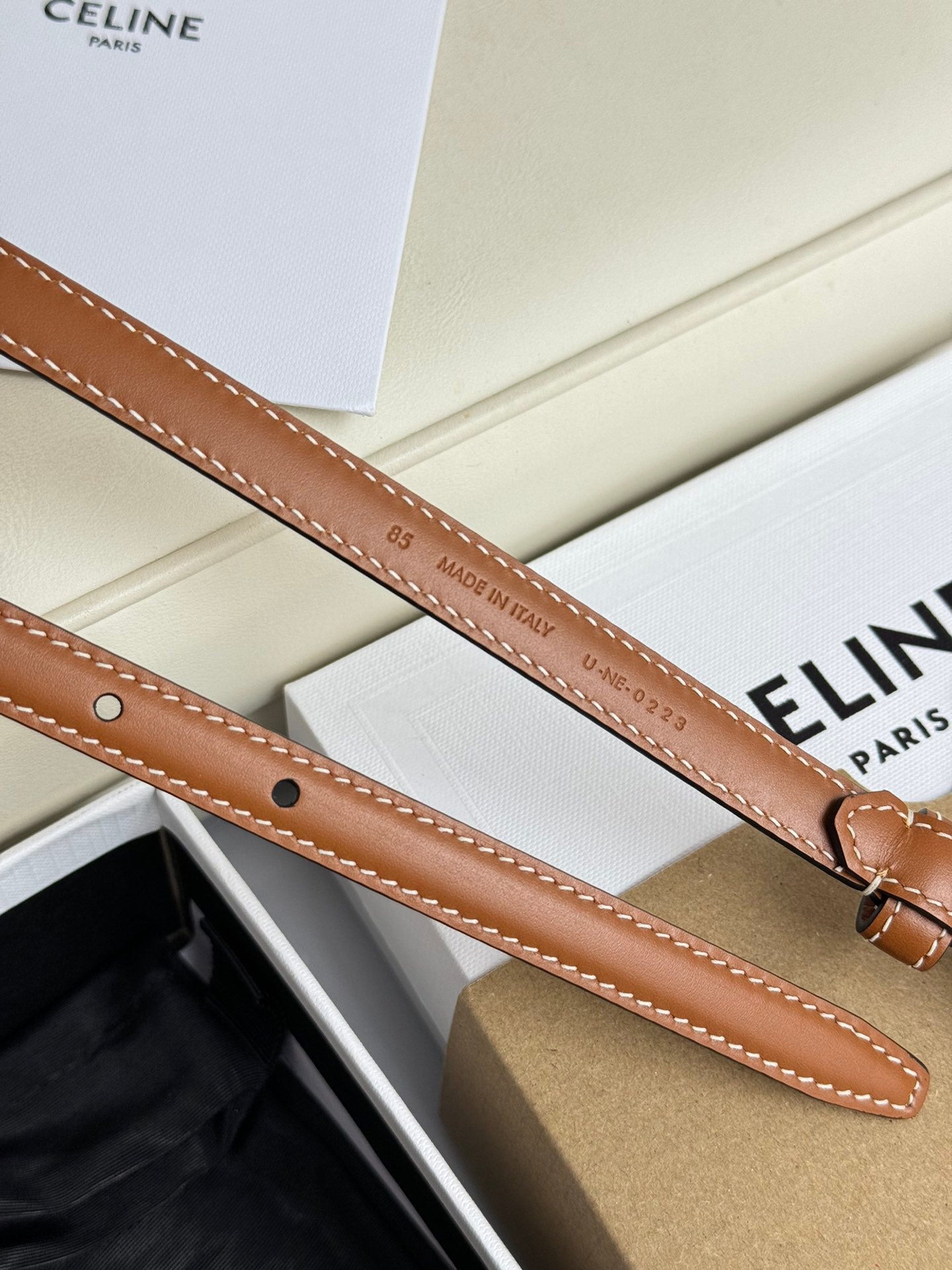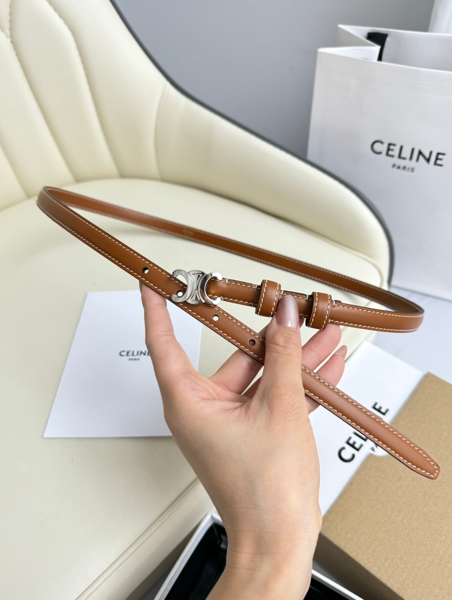 MINI TRIOMPHE BELT 13 MM BRONZE BROWN LEATHER SILVER HARDWARE