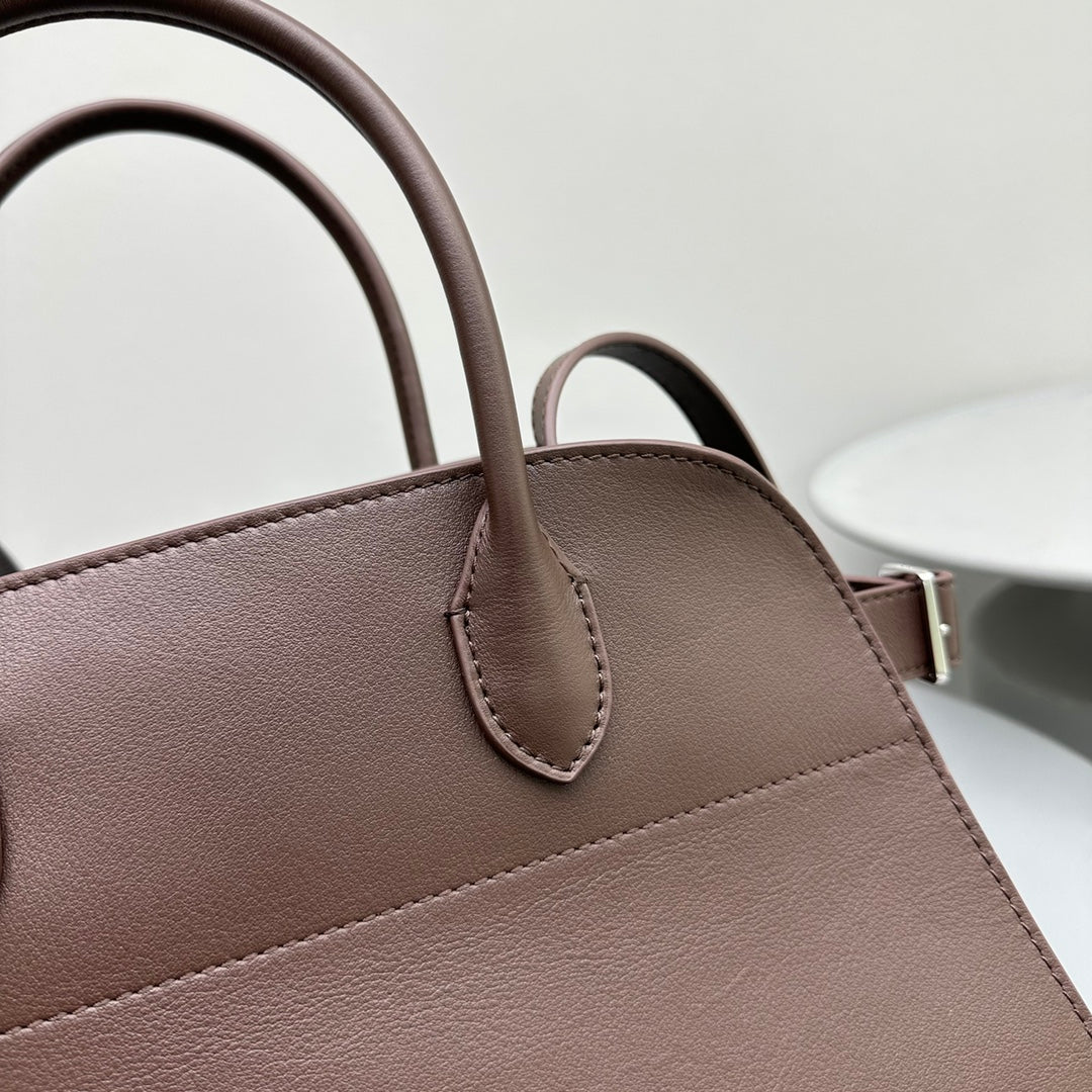 MINIMALIST STRUCTURED SILHOUETTE HANDBAG 32 IN MAUVE BROWN CALFSKIN