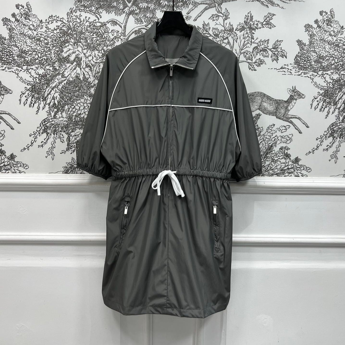 MIU 25S HOODED JACKET GREY IN NYLON 263119