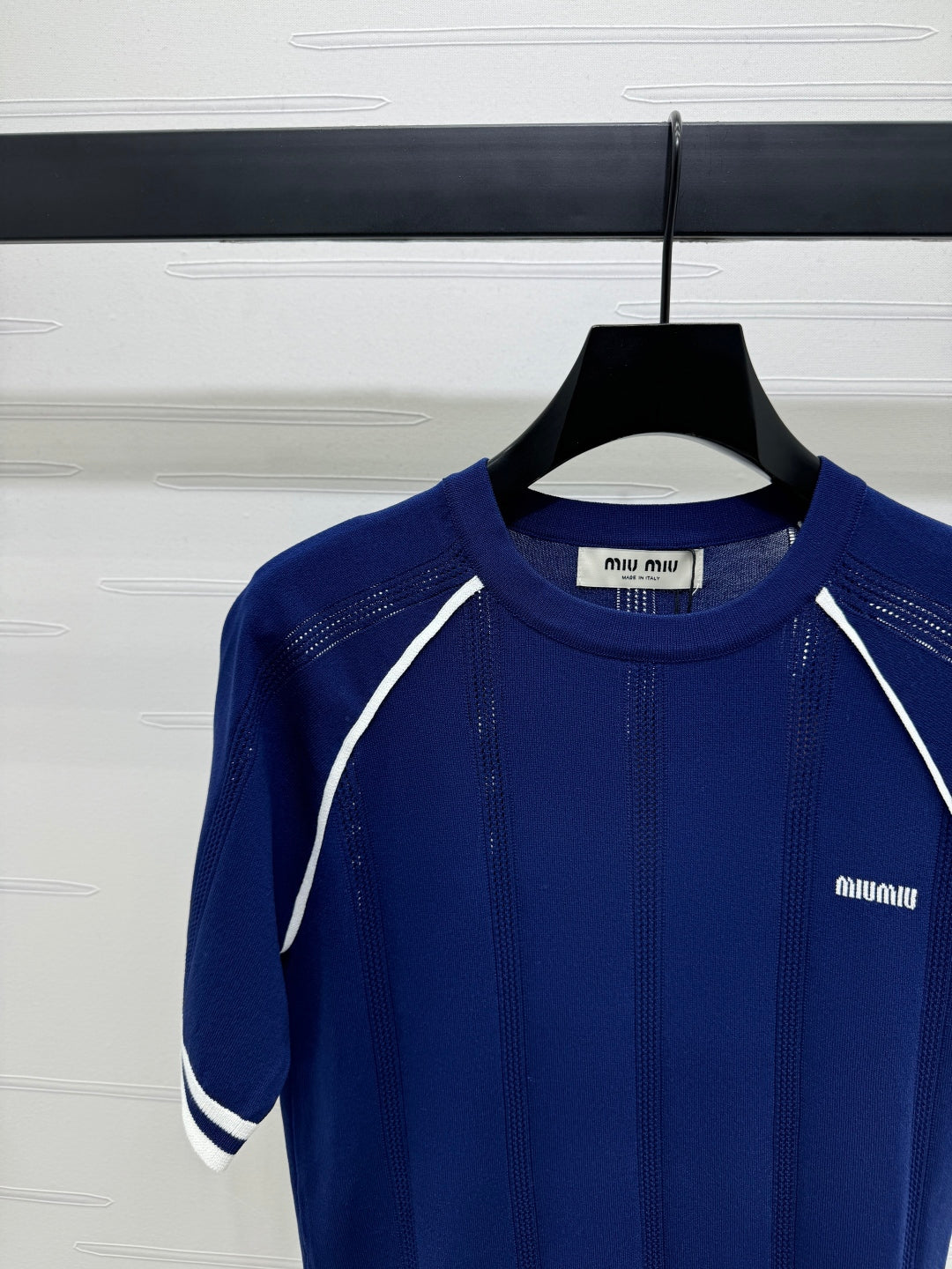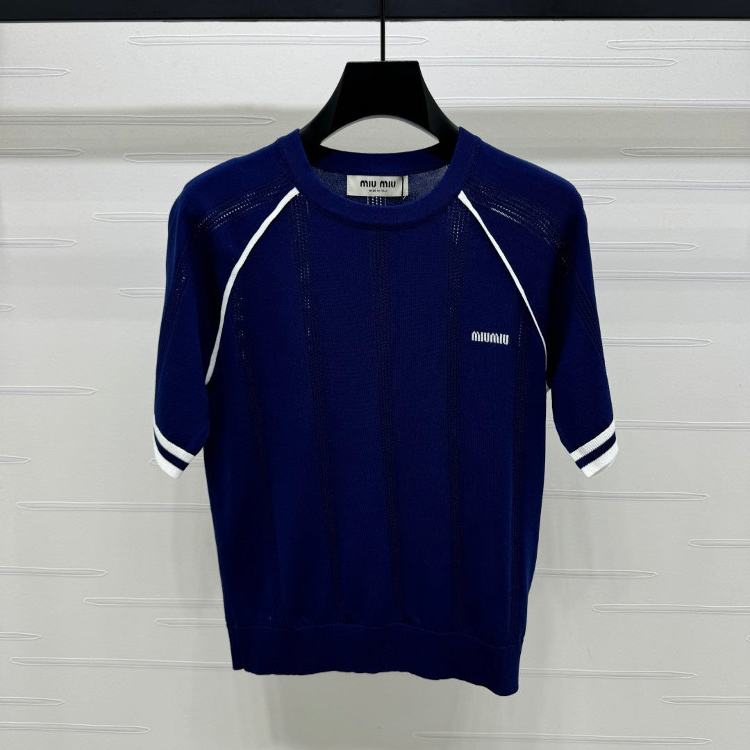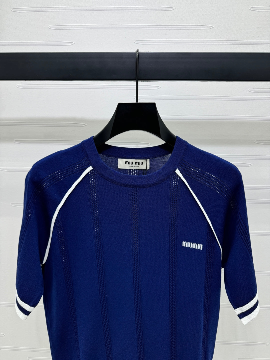 MIU 25S RAGLAN CREW NECK STRIPED KNIT SWEATER 264106