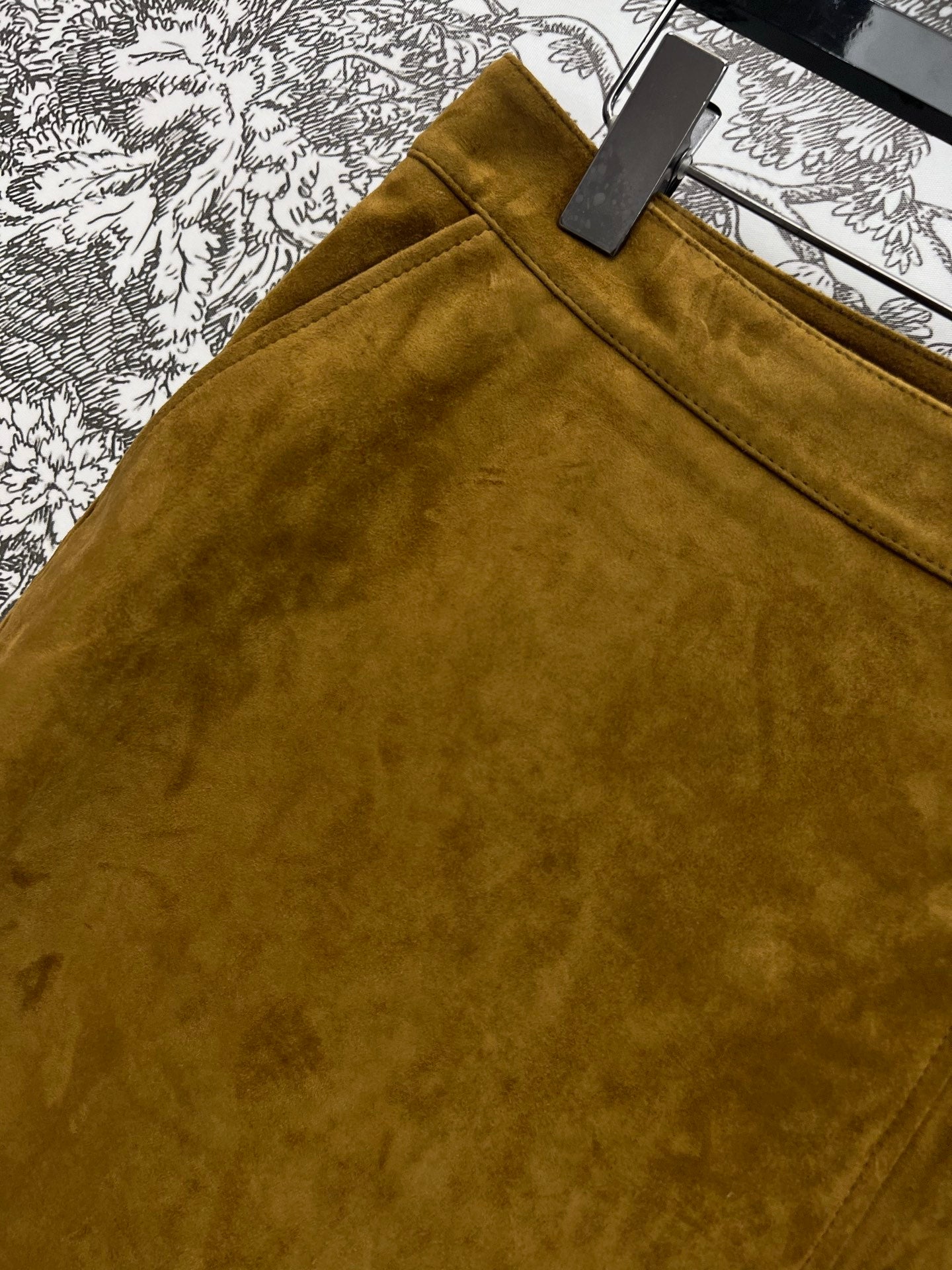 MIU MAHOGANY DOWN GOATSKIN SUEDE SKIRT 274613