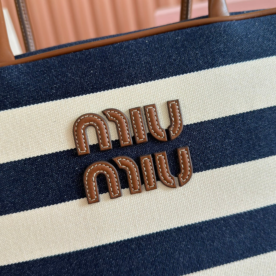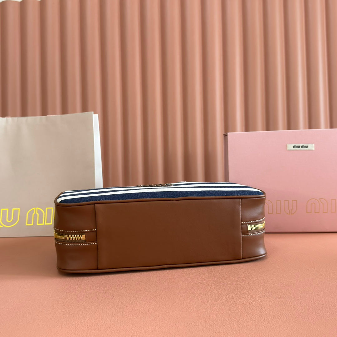 MIUMIU 25S BEAU BAG 34 DARK BLUE AND IVORY IN CANVAS AND CALFSKIN