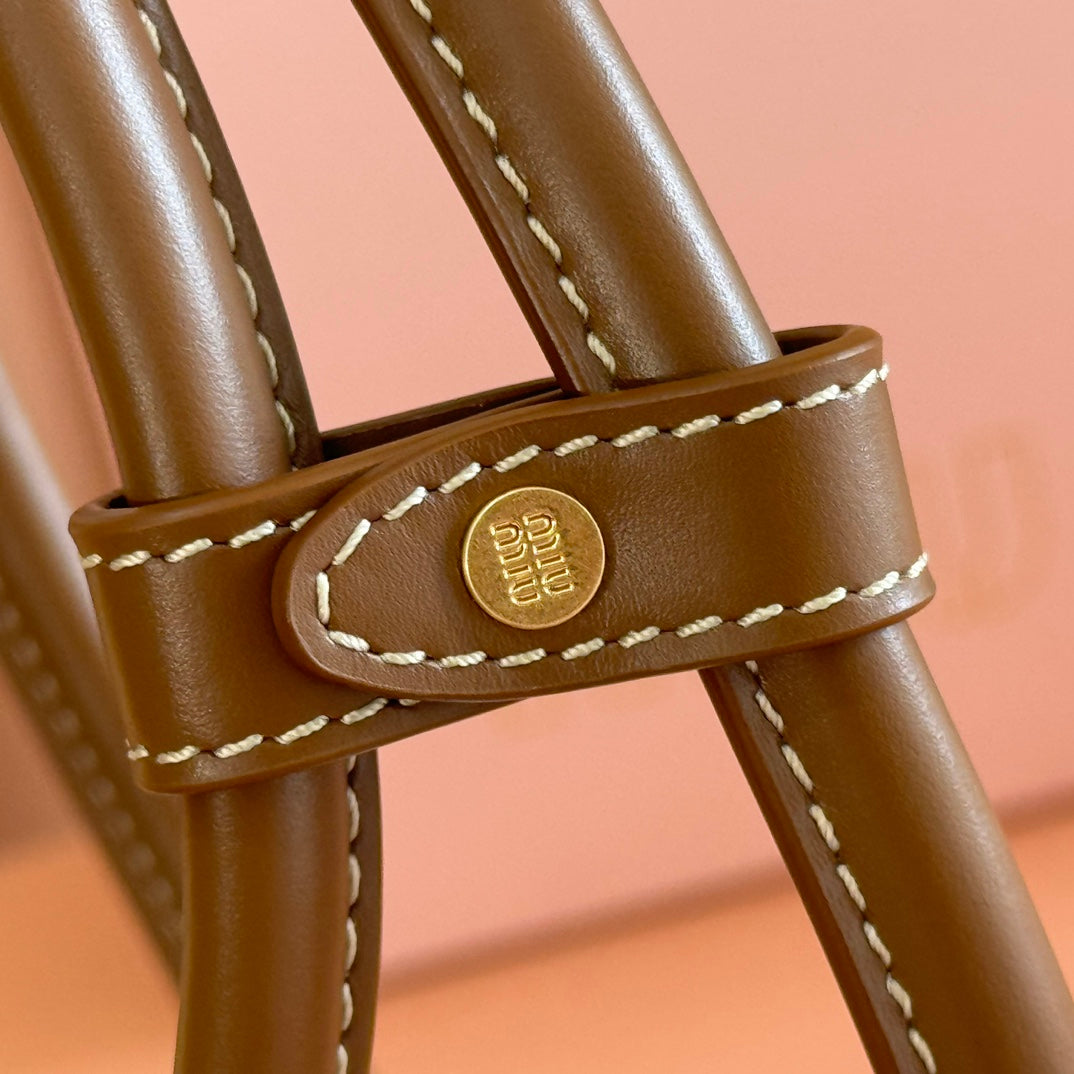 MIUMIU 25S BEAU CANVAS BAG 28 IN BEIGE CANVAS AND BROWN CALFSKIN