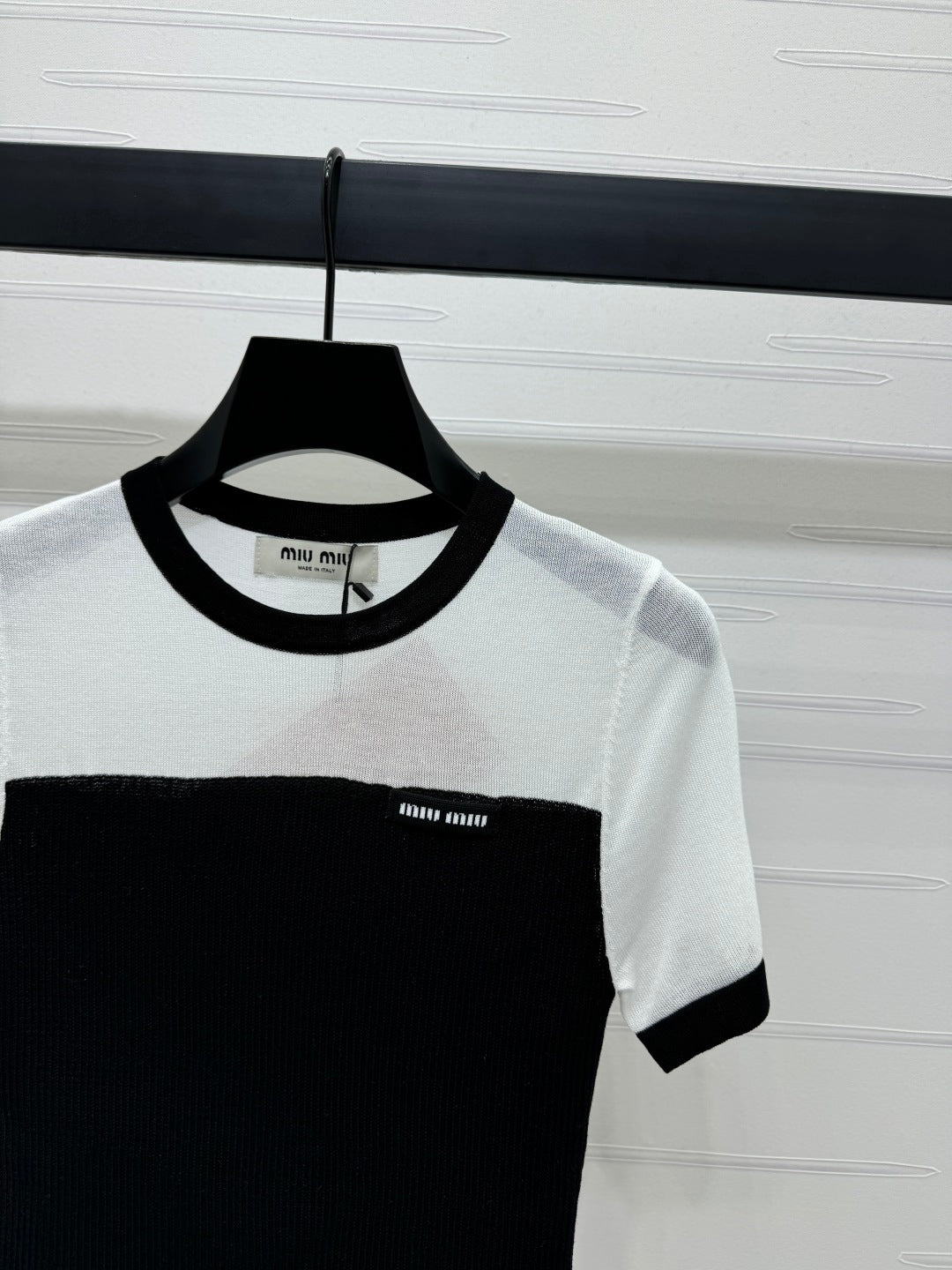 MIUMIU CREW NECK SHORT-SLEEVE SHEER KNIT TOP 274813