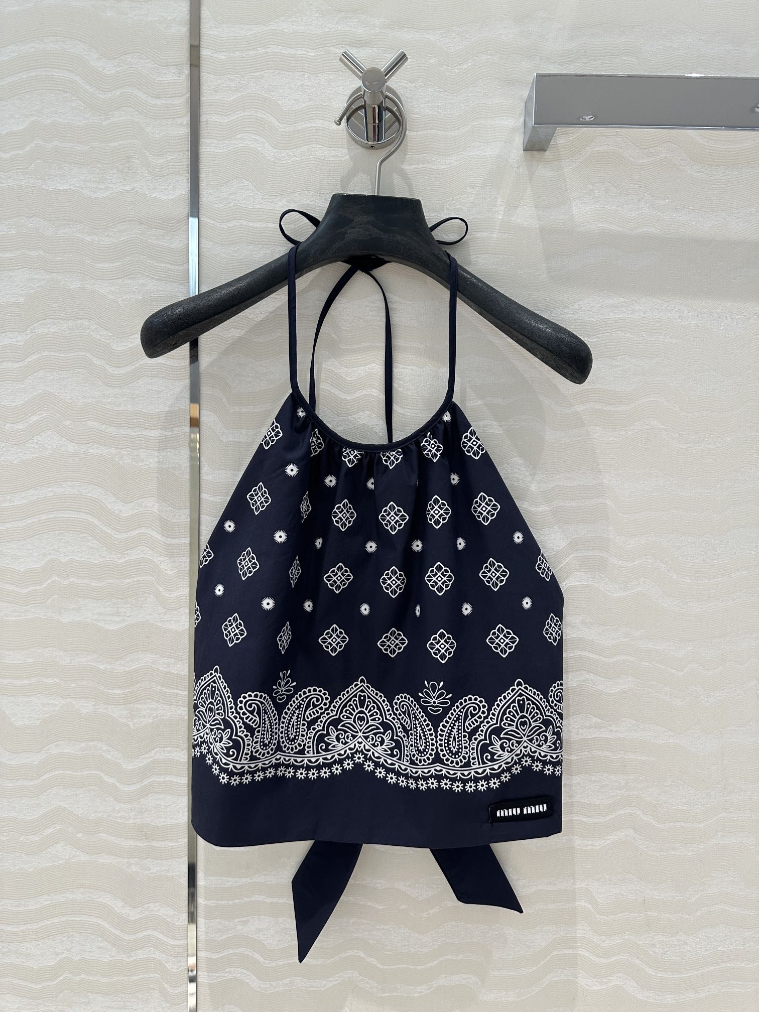 MIUMIU MIDNIGHT BLUE STRAPPY BACK TOP