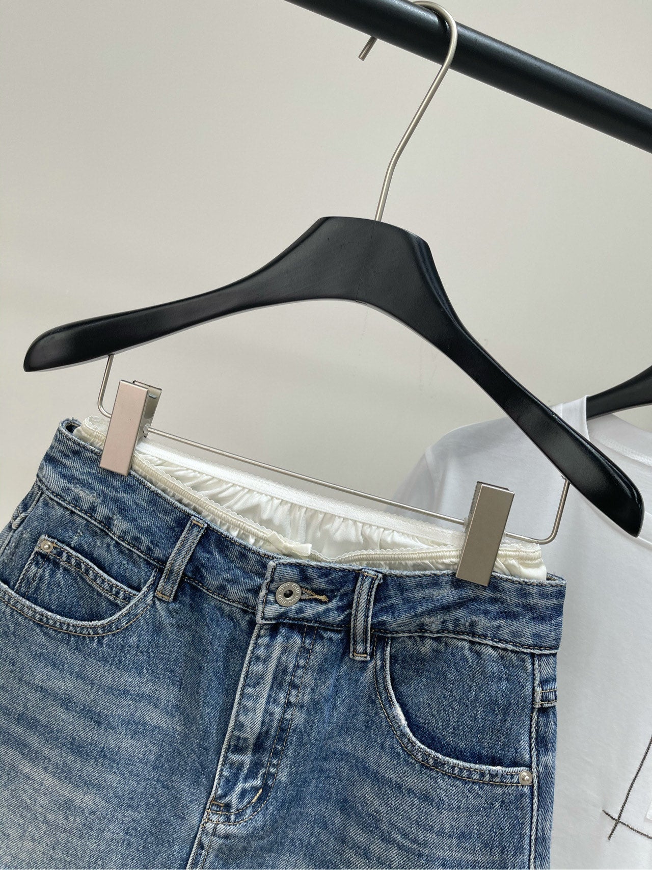 MIUMIU PATCHED DENIM SKIRT WITH LACE 275946