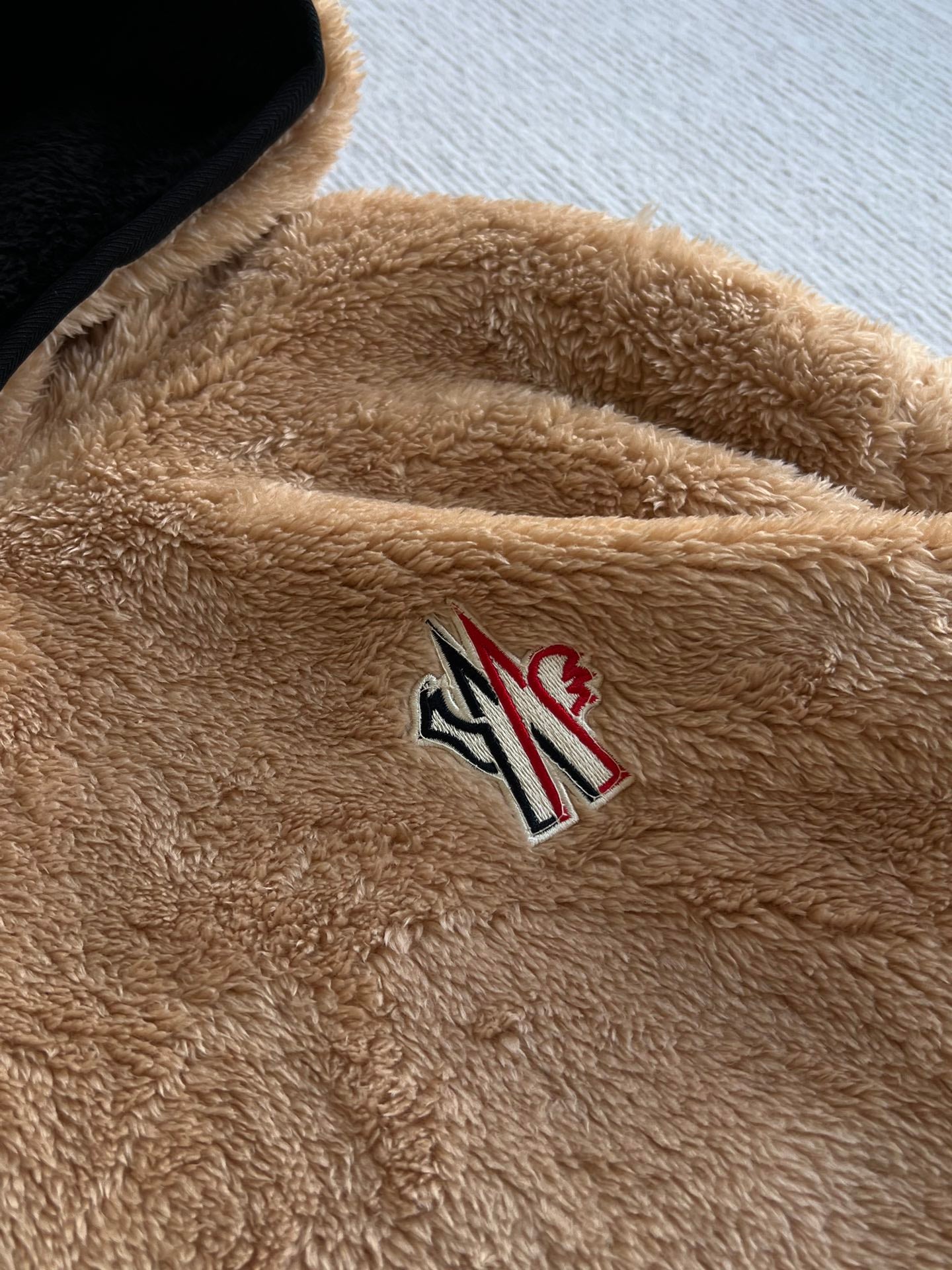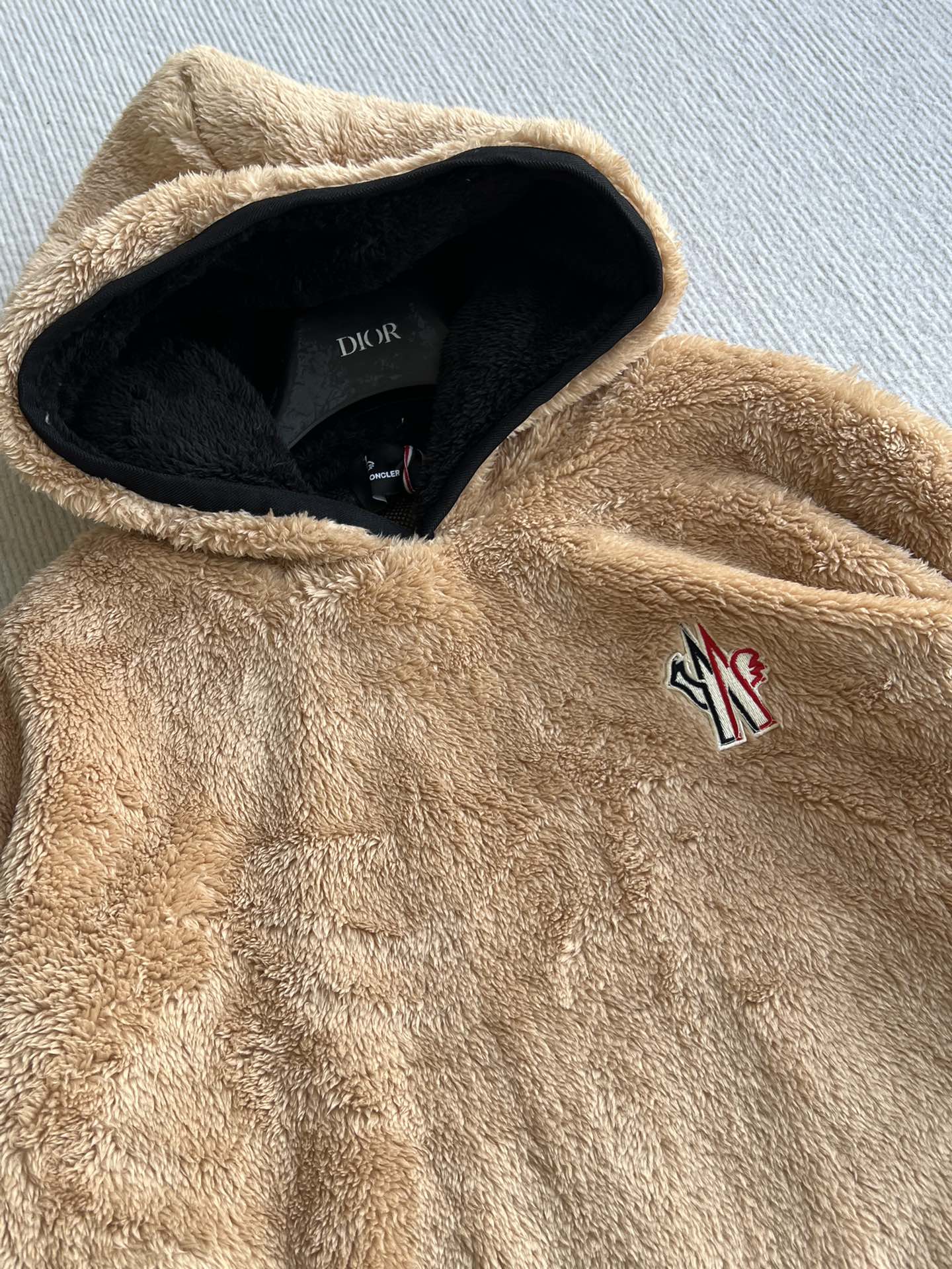MONCLER 25S FUZZY TEDDY FLEECE HOODIE IN BROWN 042