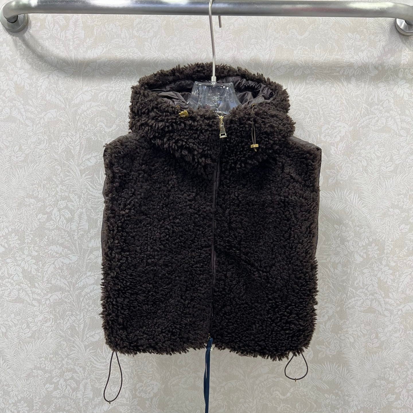 MONCLER 25S SHAGGY VEST IN BROWN 103