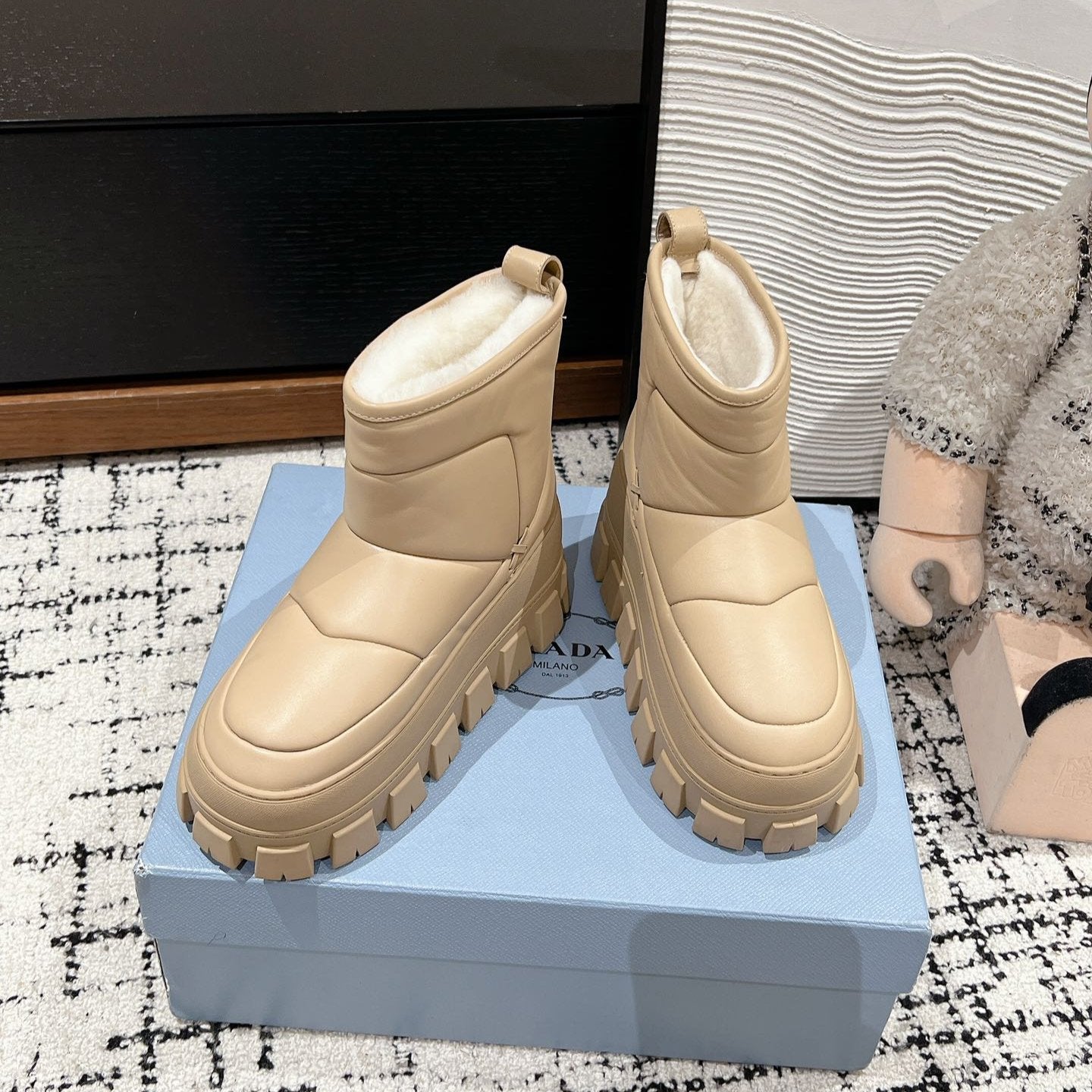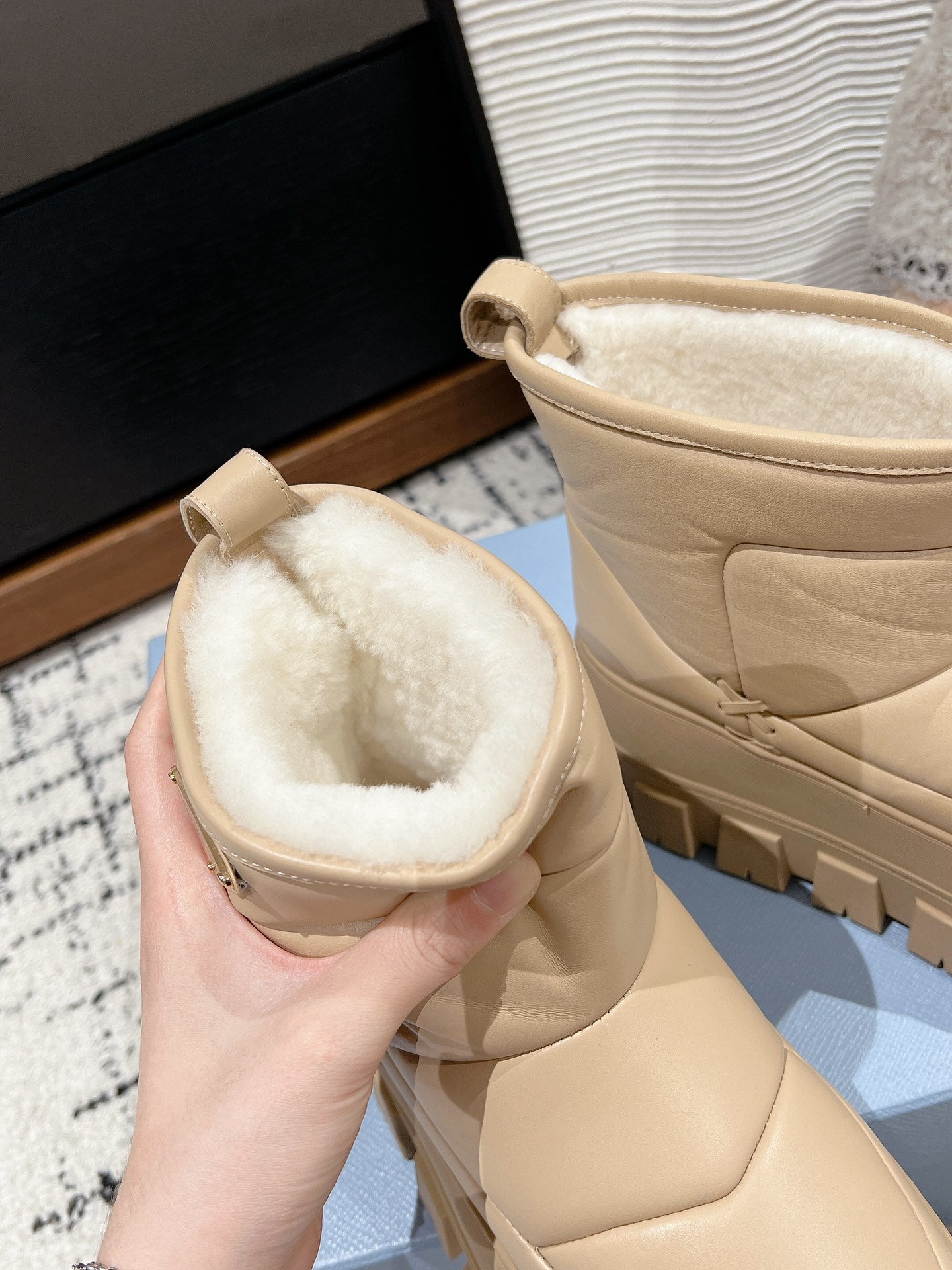 MONOLITH ANKLE BOOTS IN BUFF BEIGE CALFSKIN AND LAMB FUR LINING