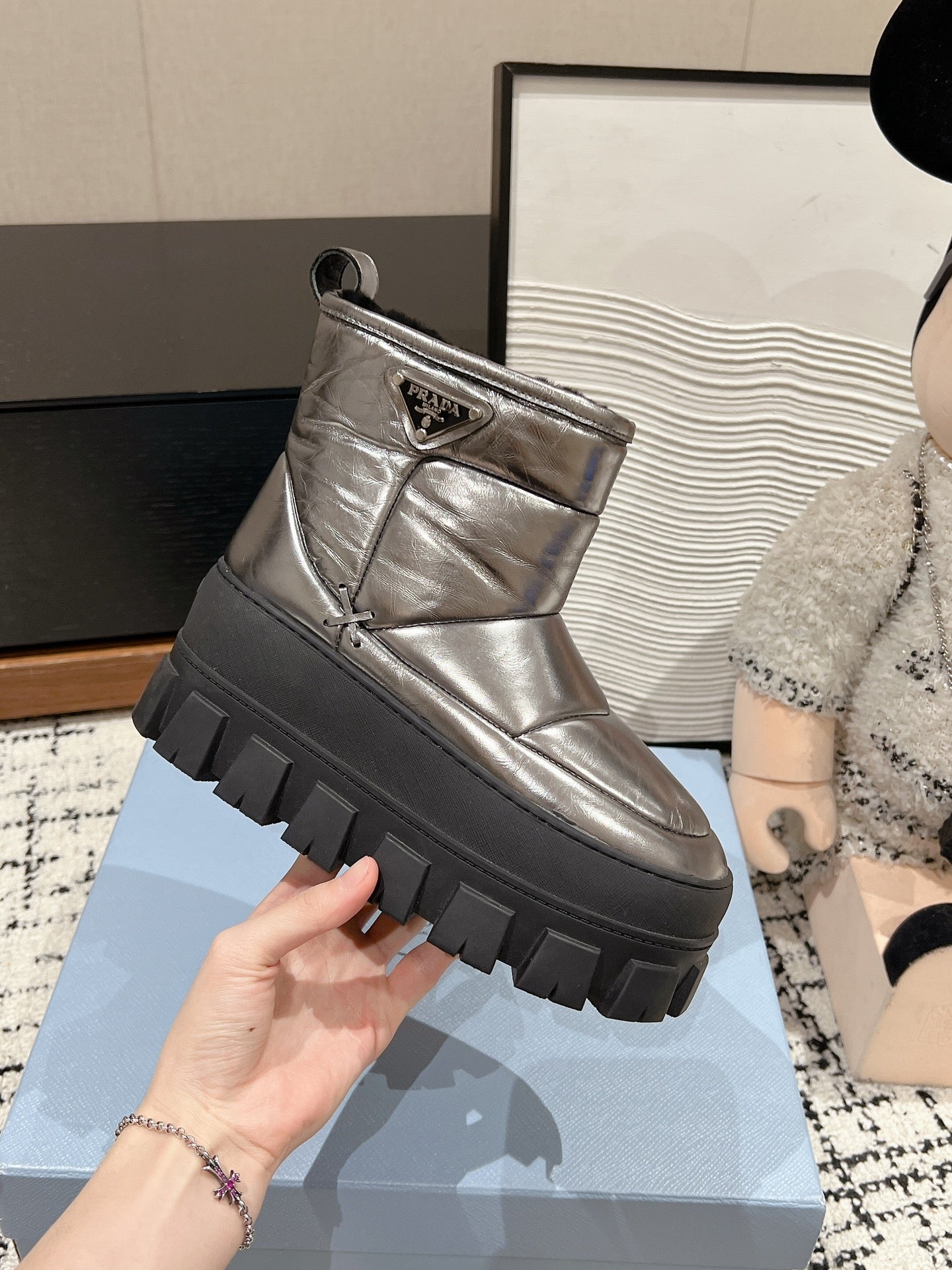 MONOLITH ANKLE BOOTS IN METALLIC GRAY CALFSKIN AND LAMB FUR LINING