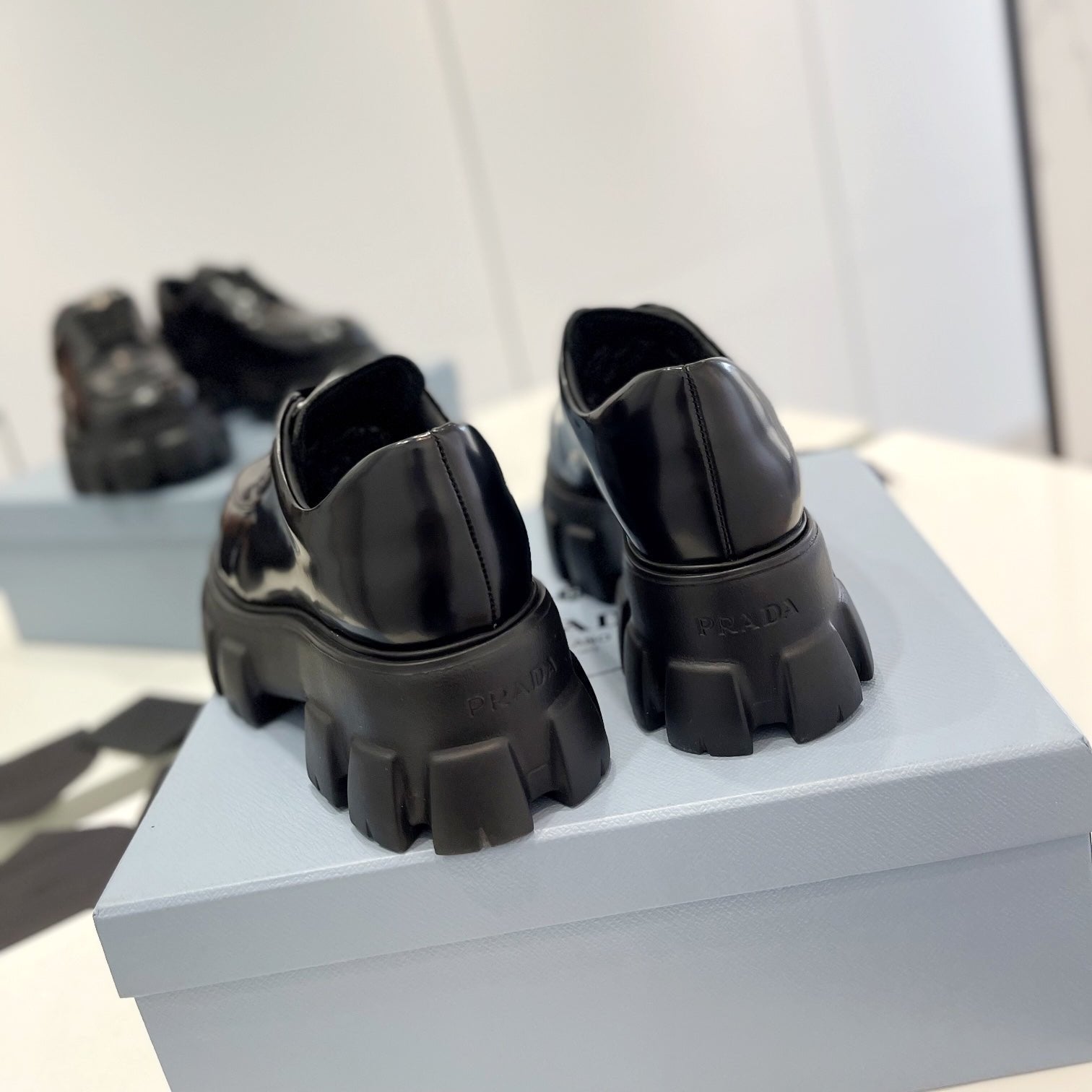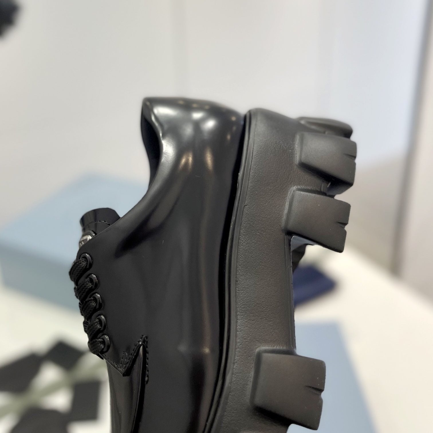 MONOLITH LACE-UP LOAFER IN BLACK CALFSKIN ATTACHED TRIANGLE LOGO