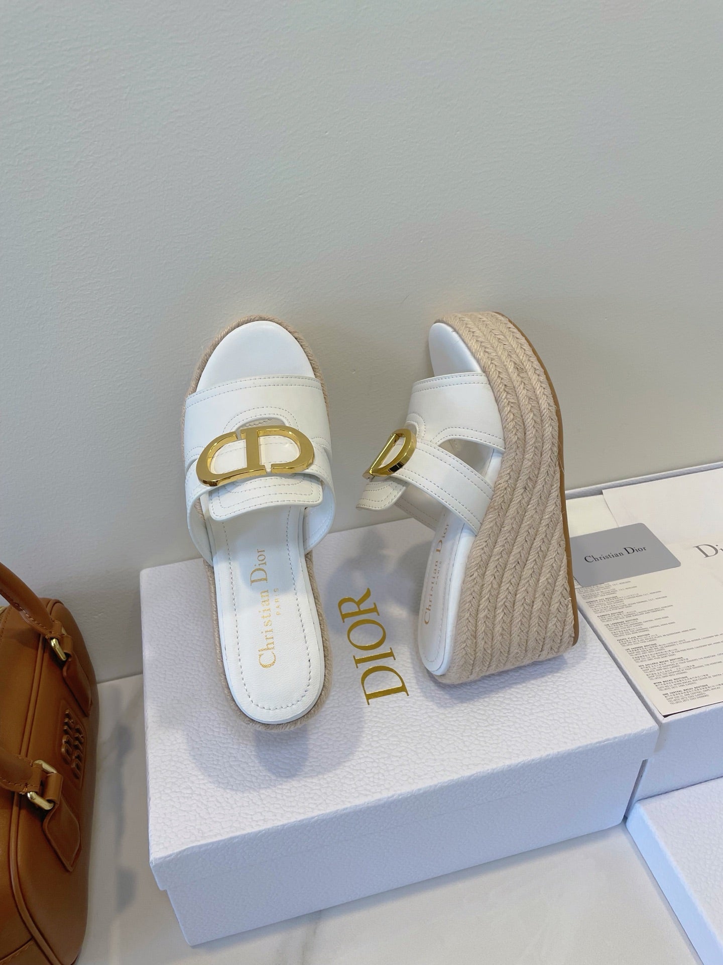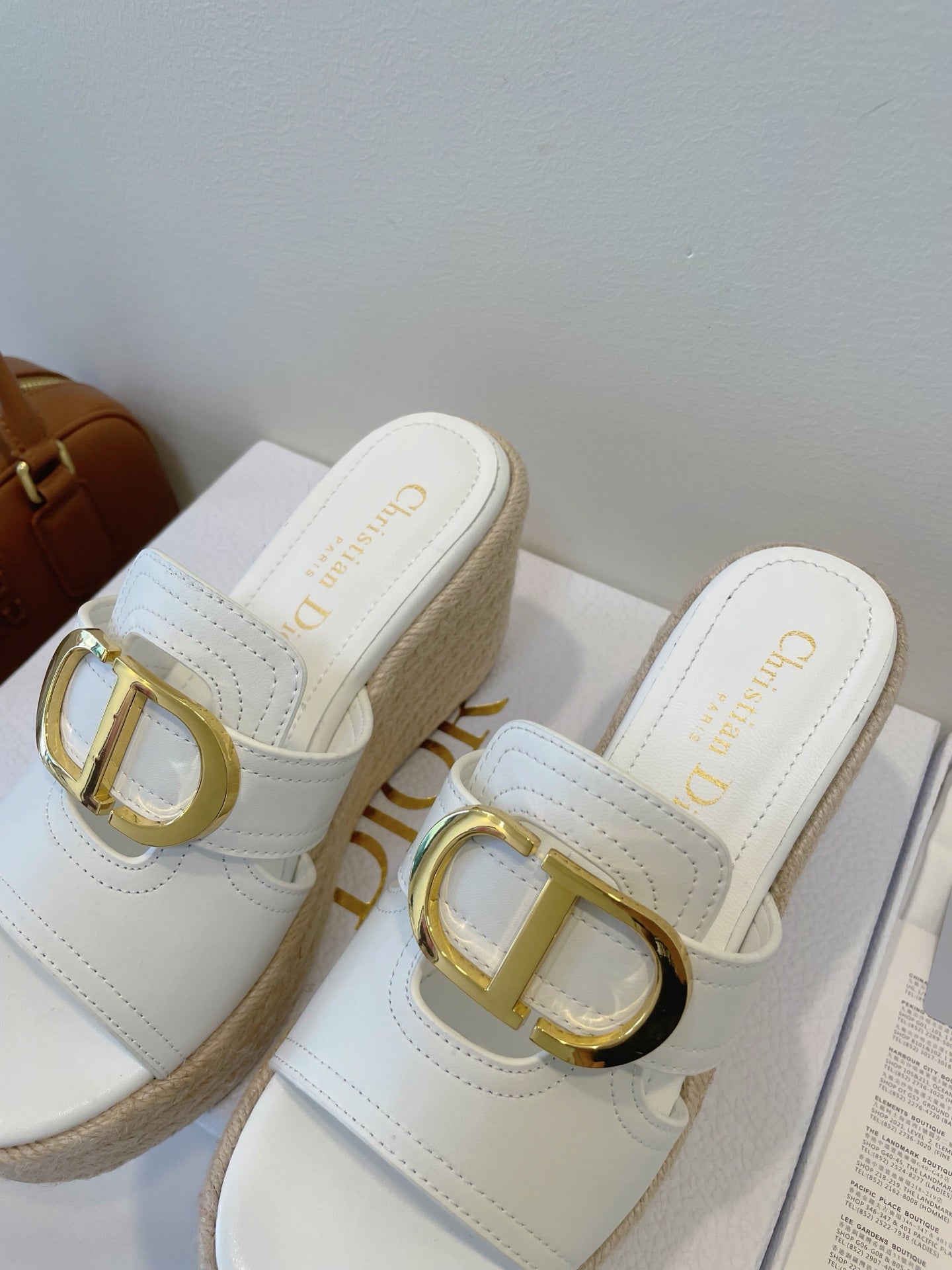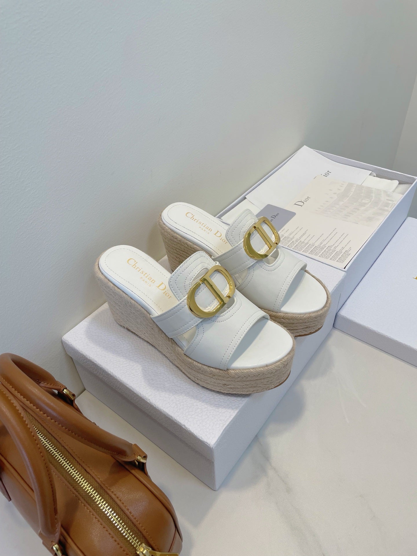 MONTAIGNE WEDGE SLIDE 95MM IN WHITE CALFSKIN