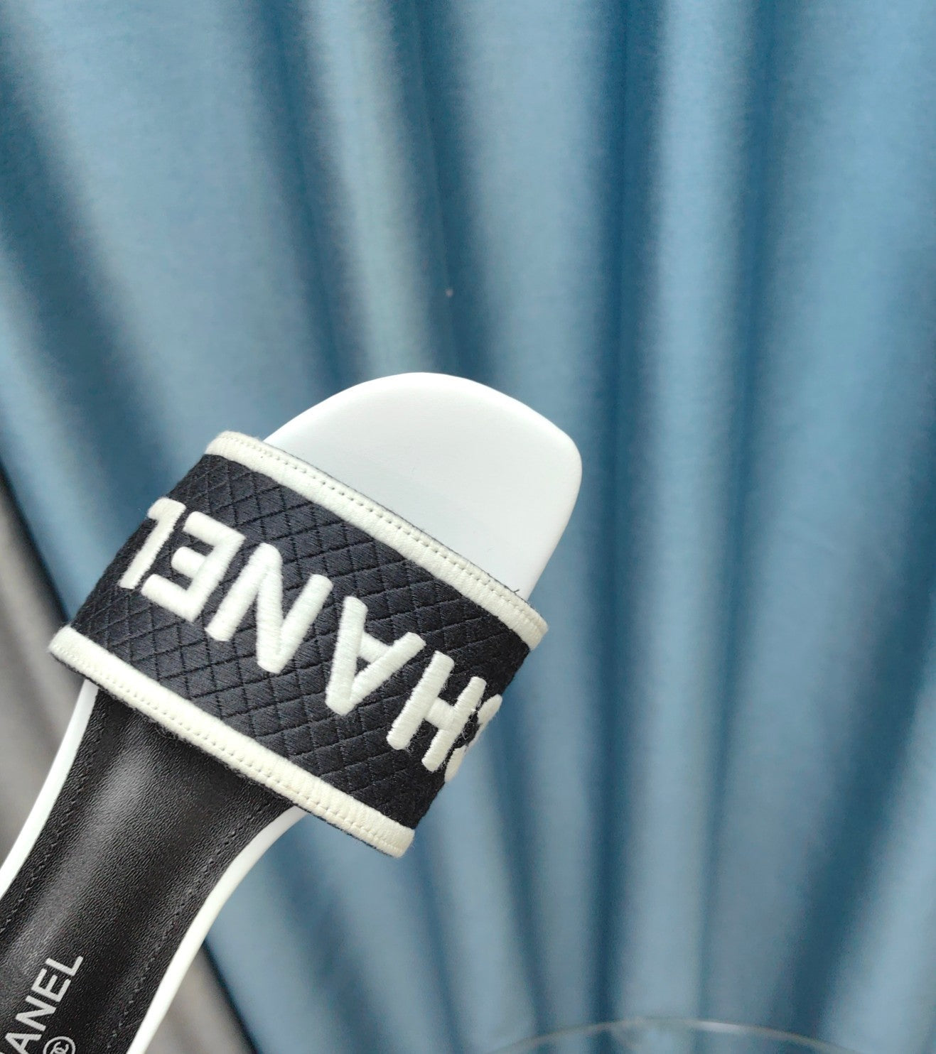 MULE SANDAL 45 WHITE BLACK FABRIC EMBROIDERY