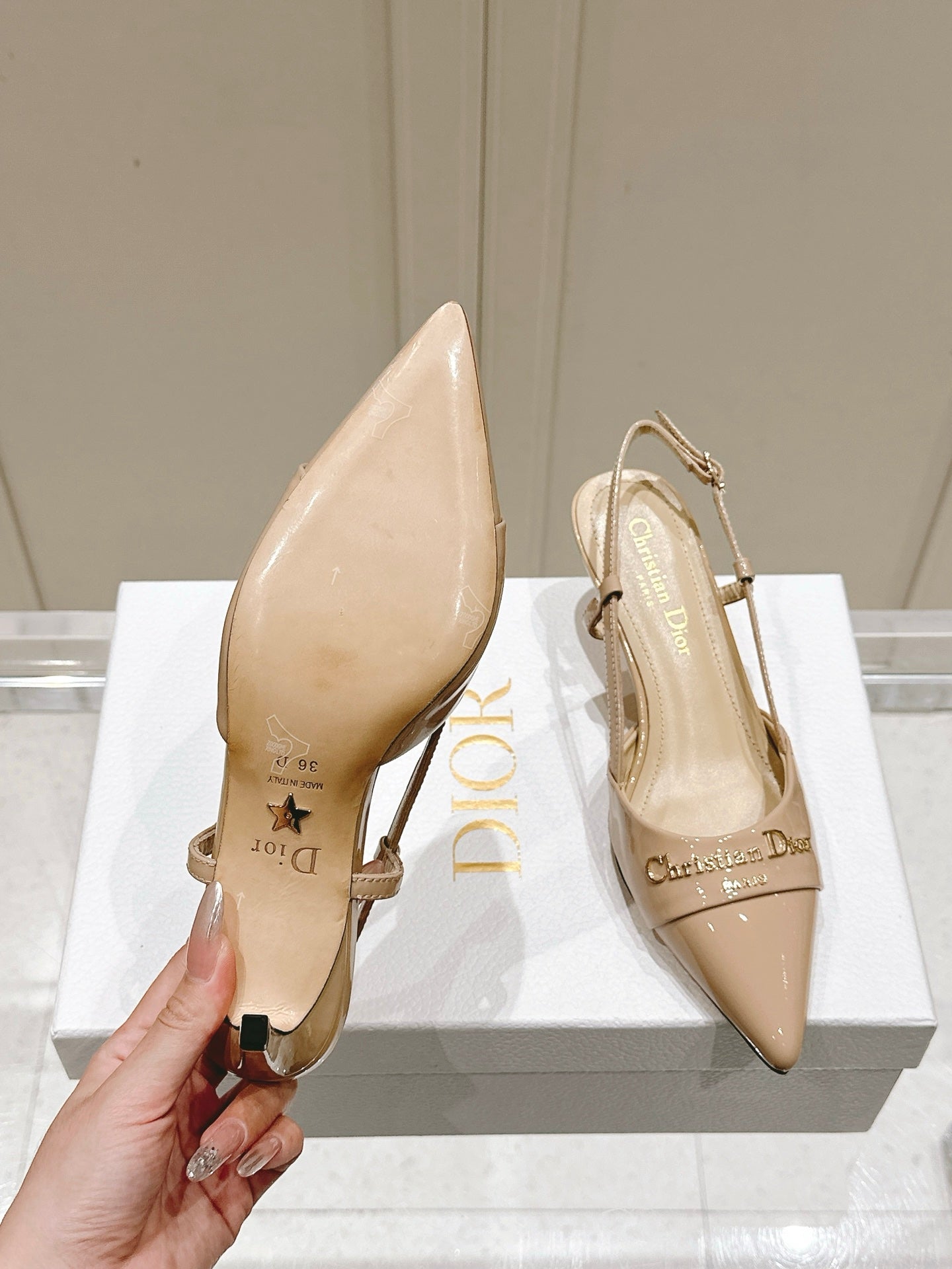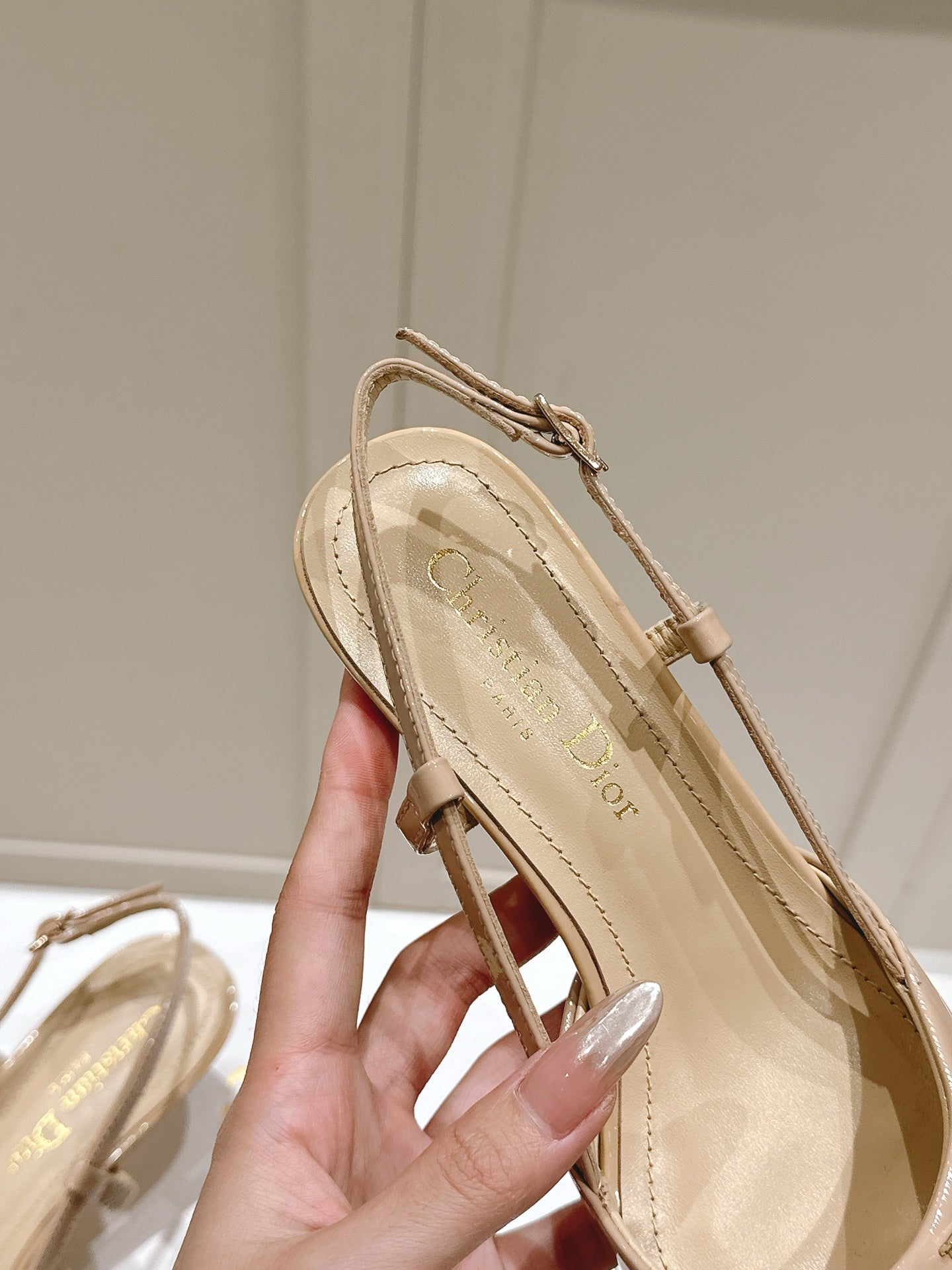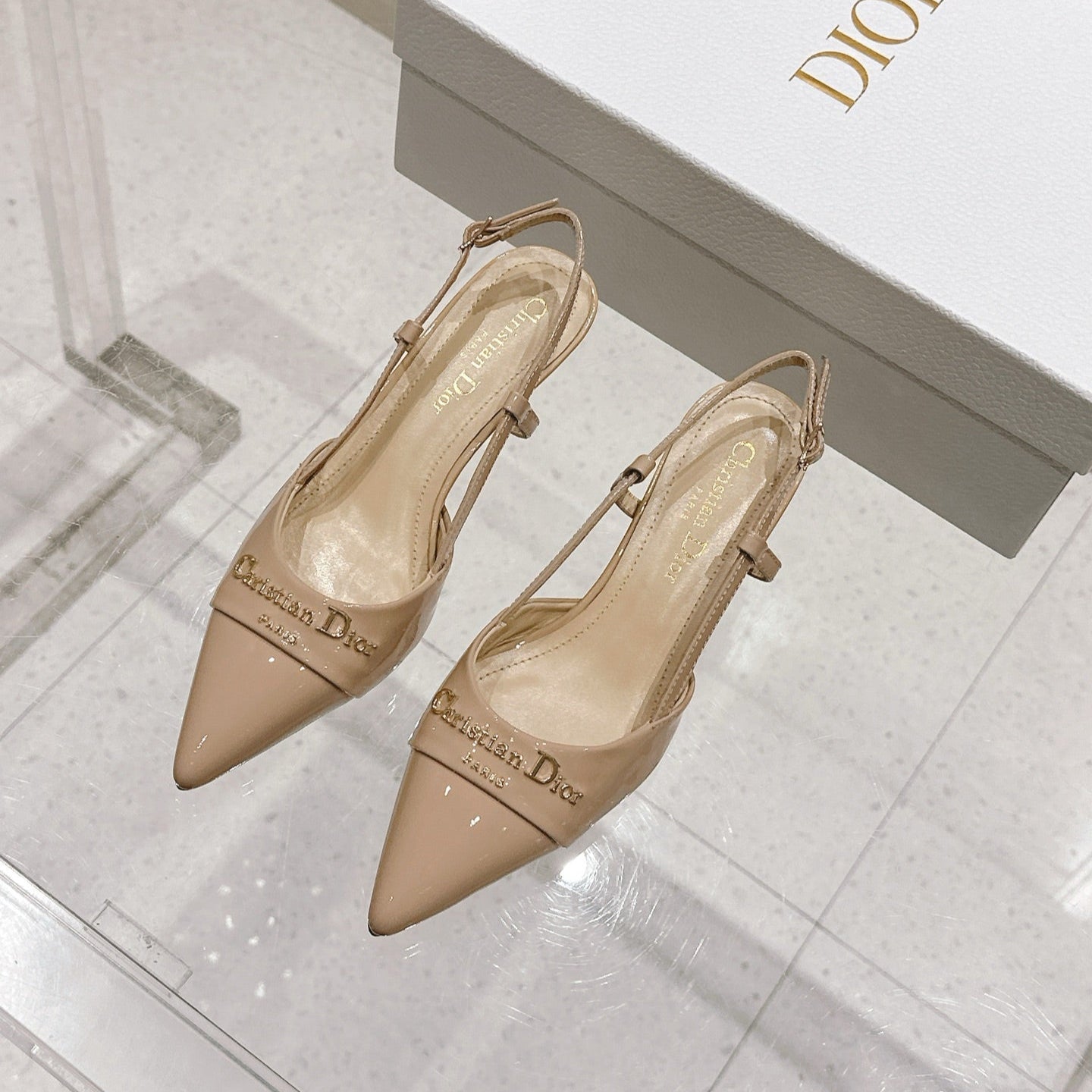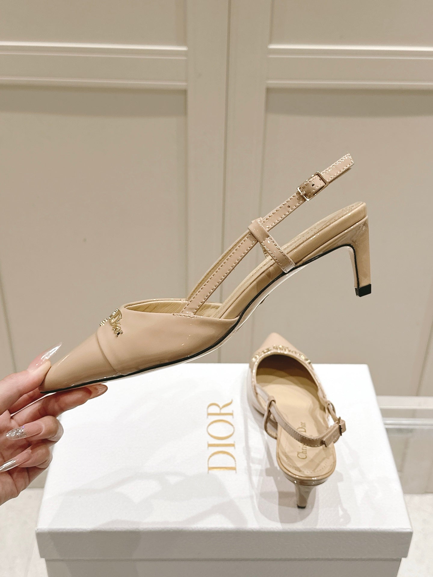 MY DD 25S SLINGBACK PUMP 50MM IN BEIGE GLOSSY CALFSKIN