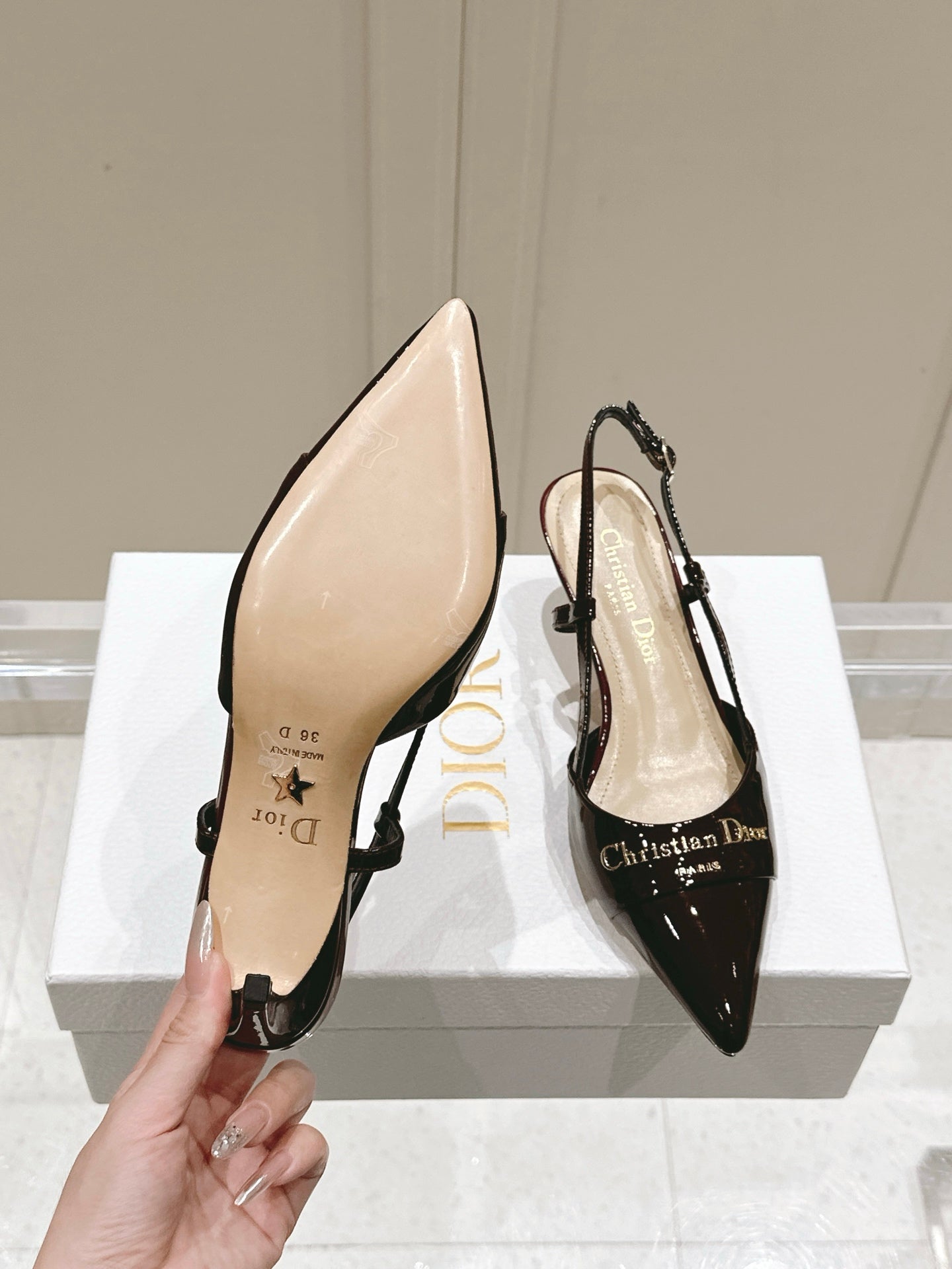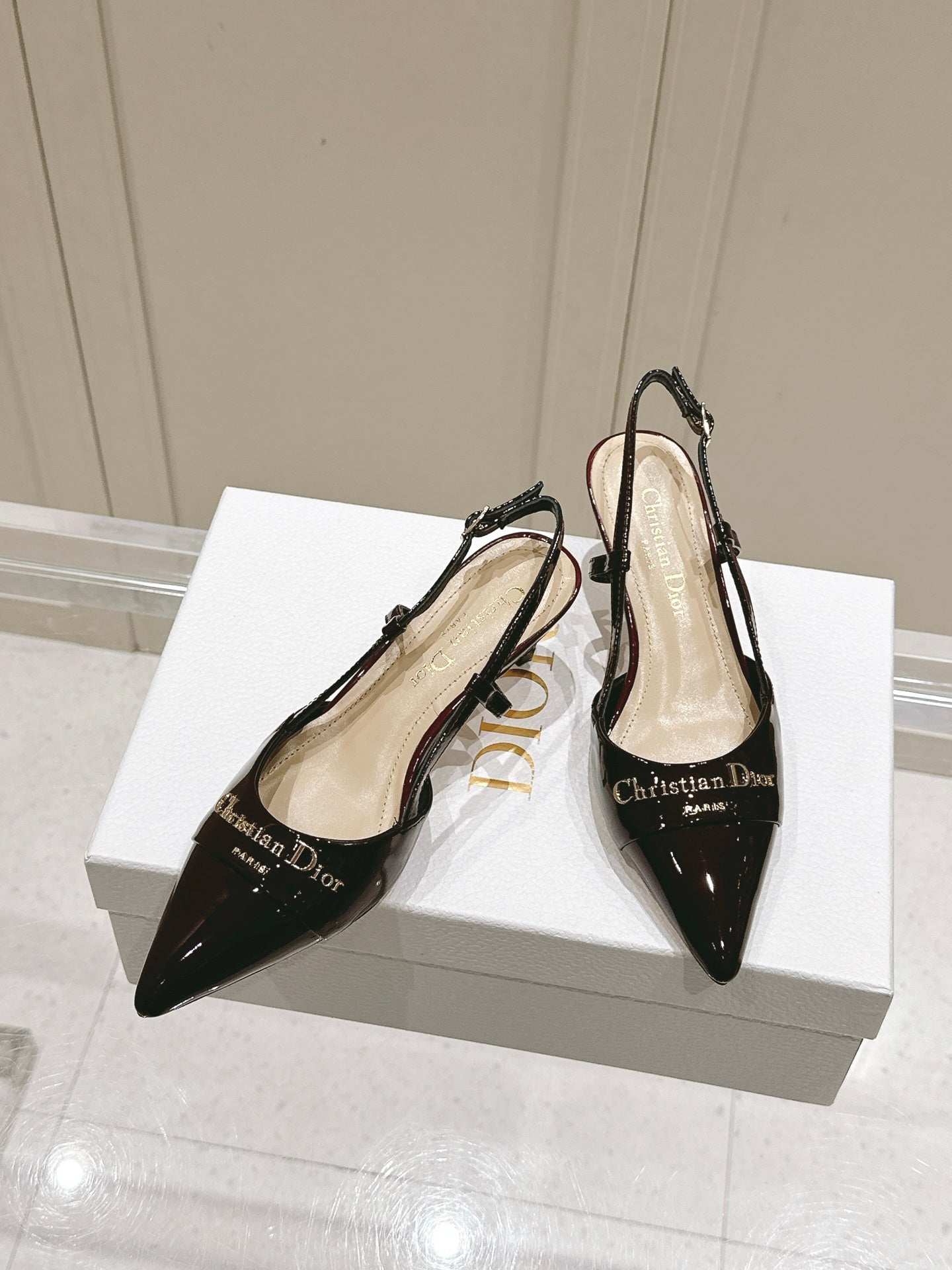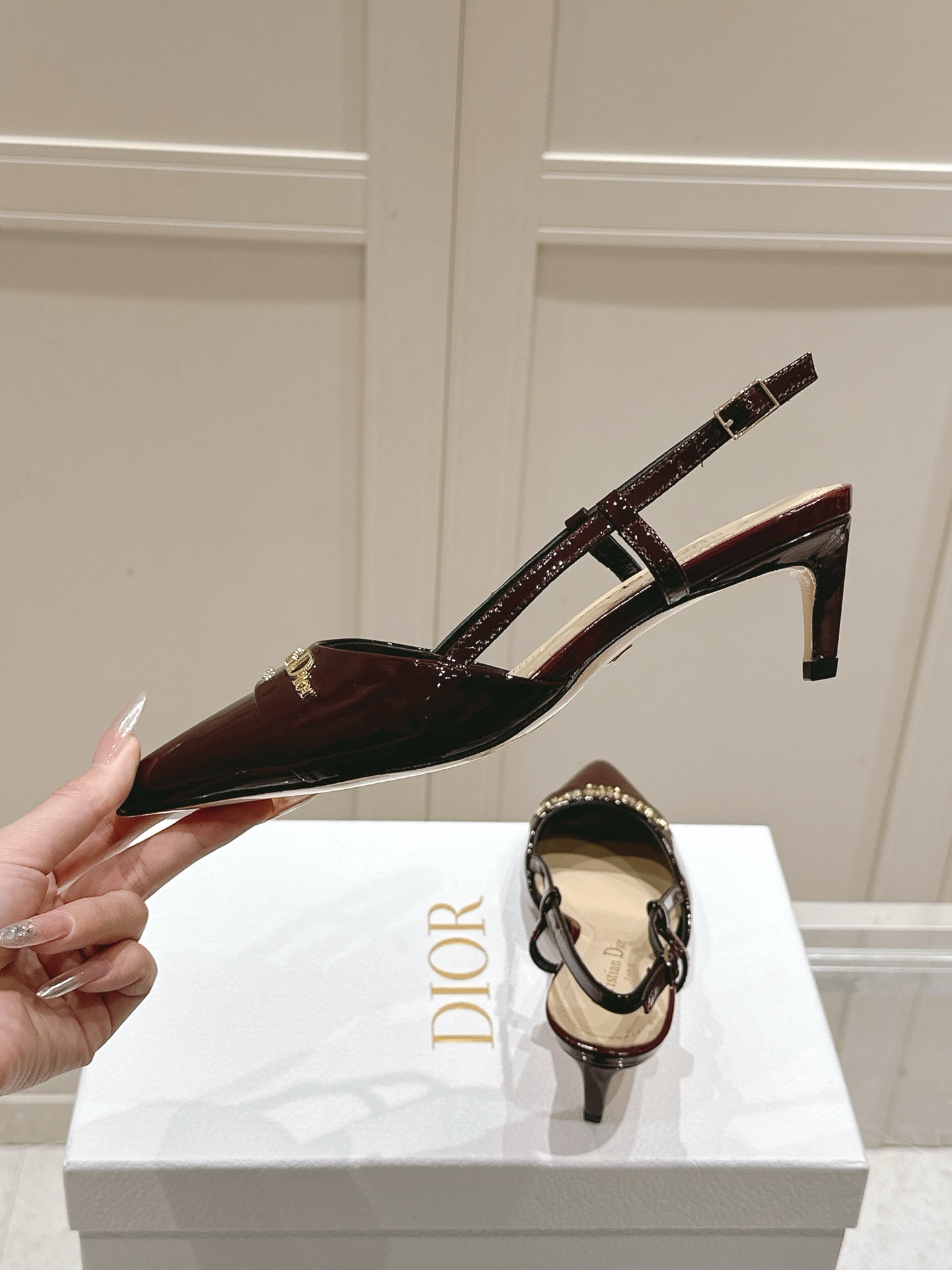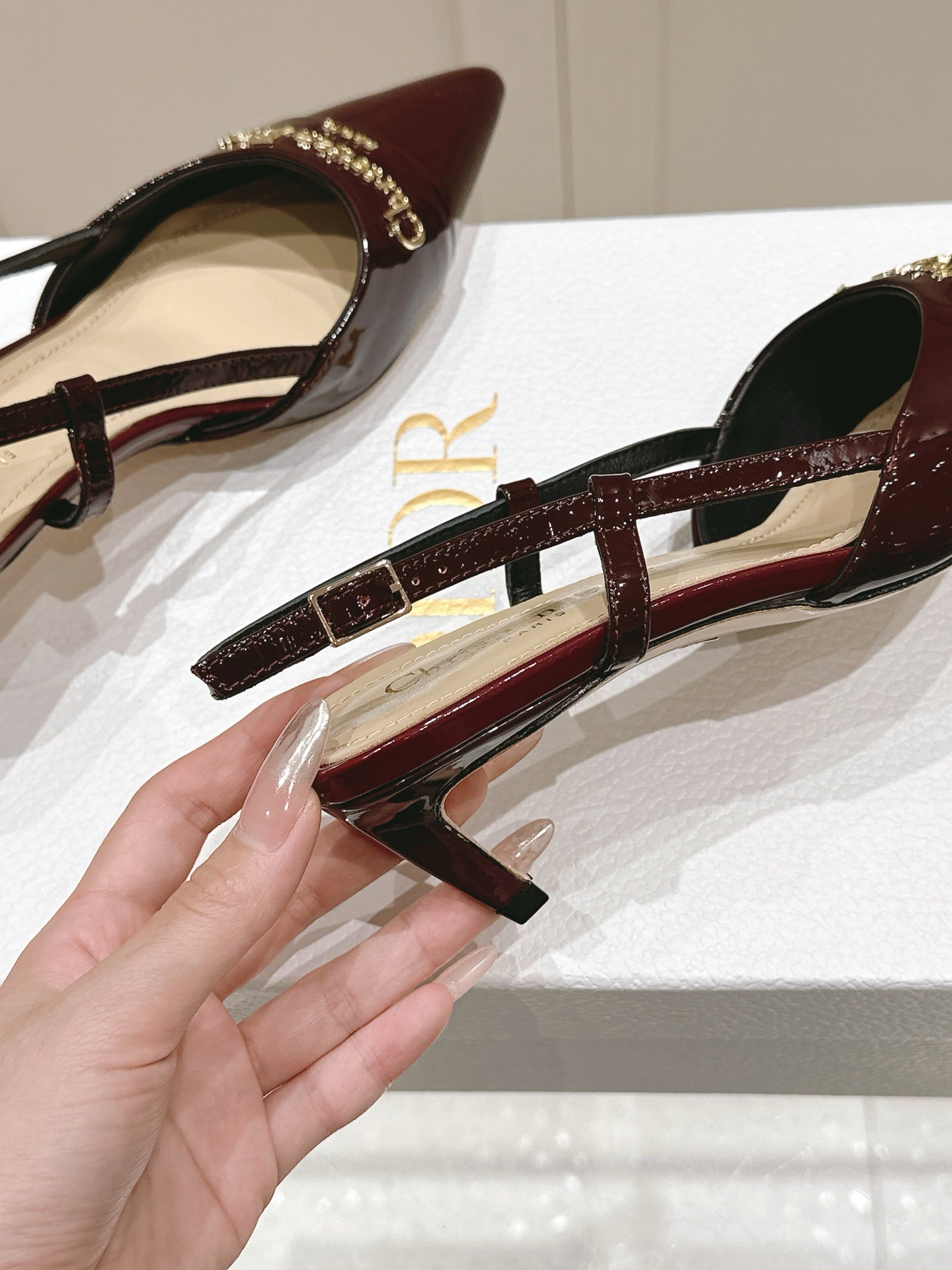 MY DD 25S SLINGBACK PUMP 50MM IN BURGUNDY RED GLOSSY CALFSKIN