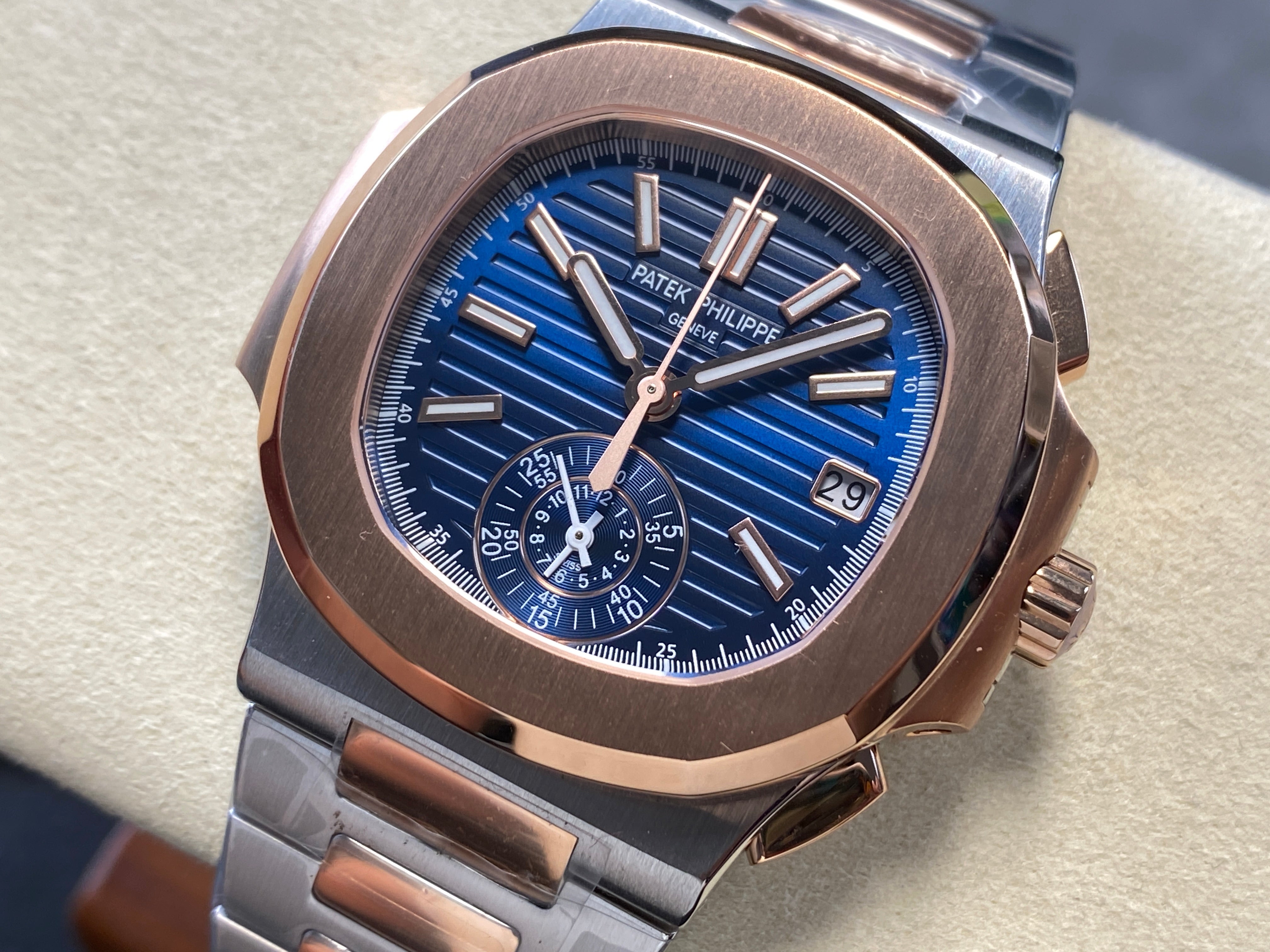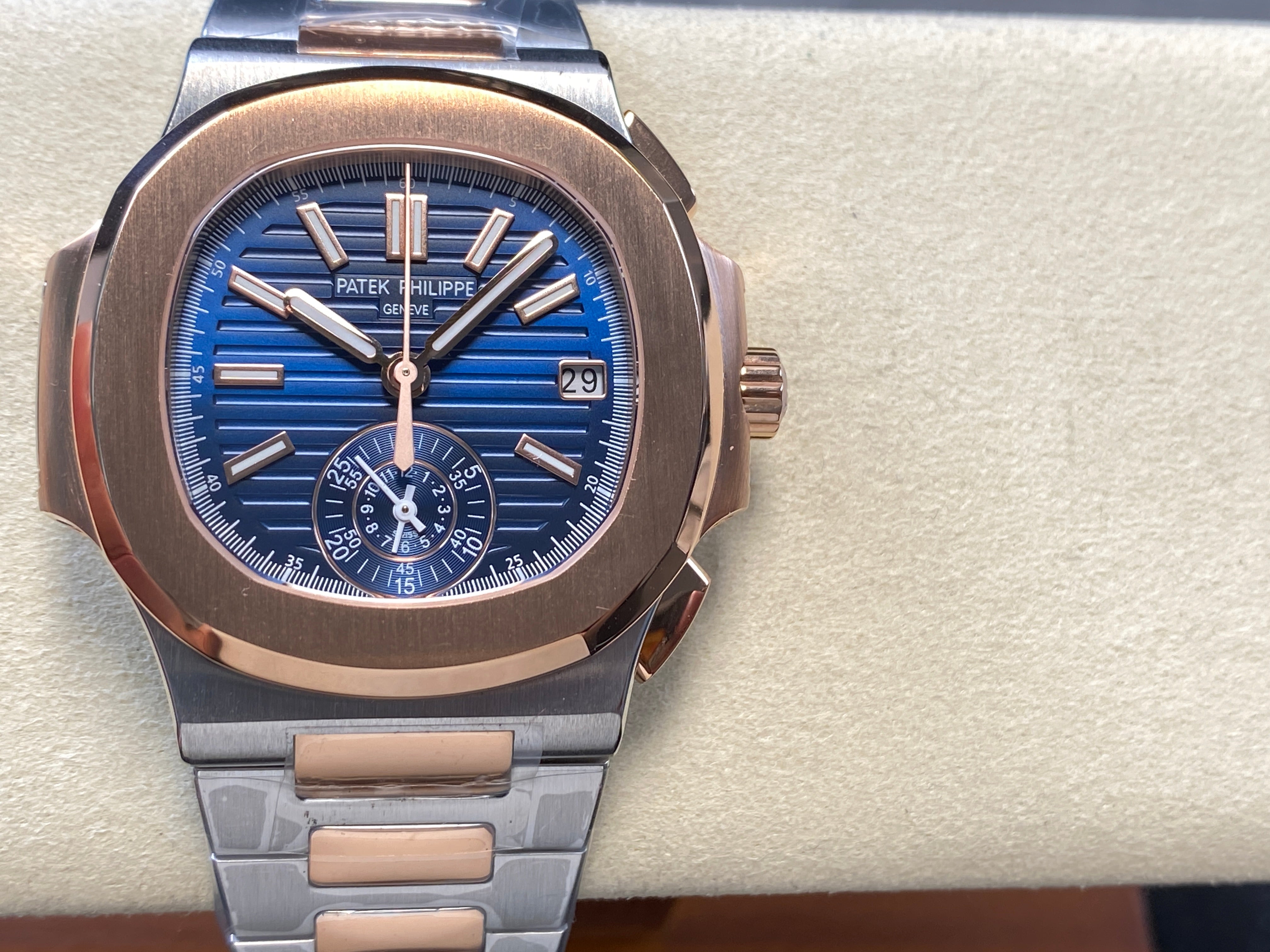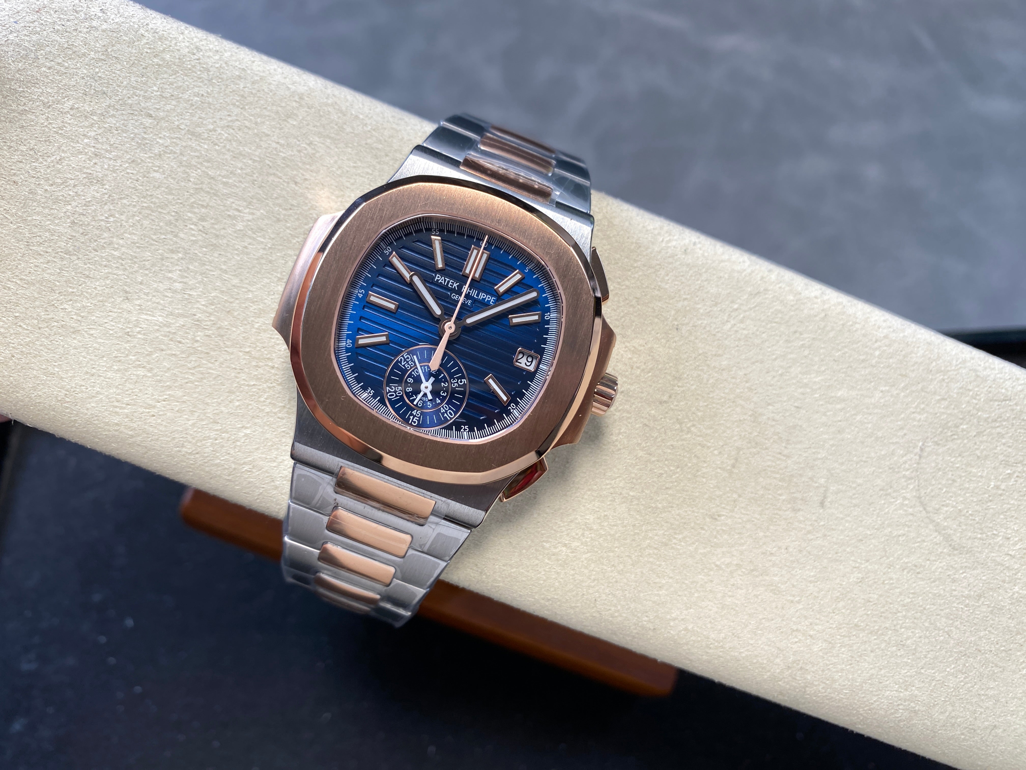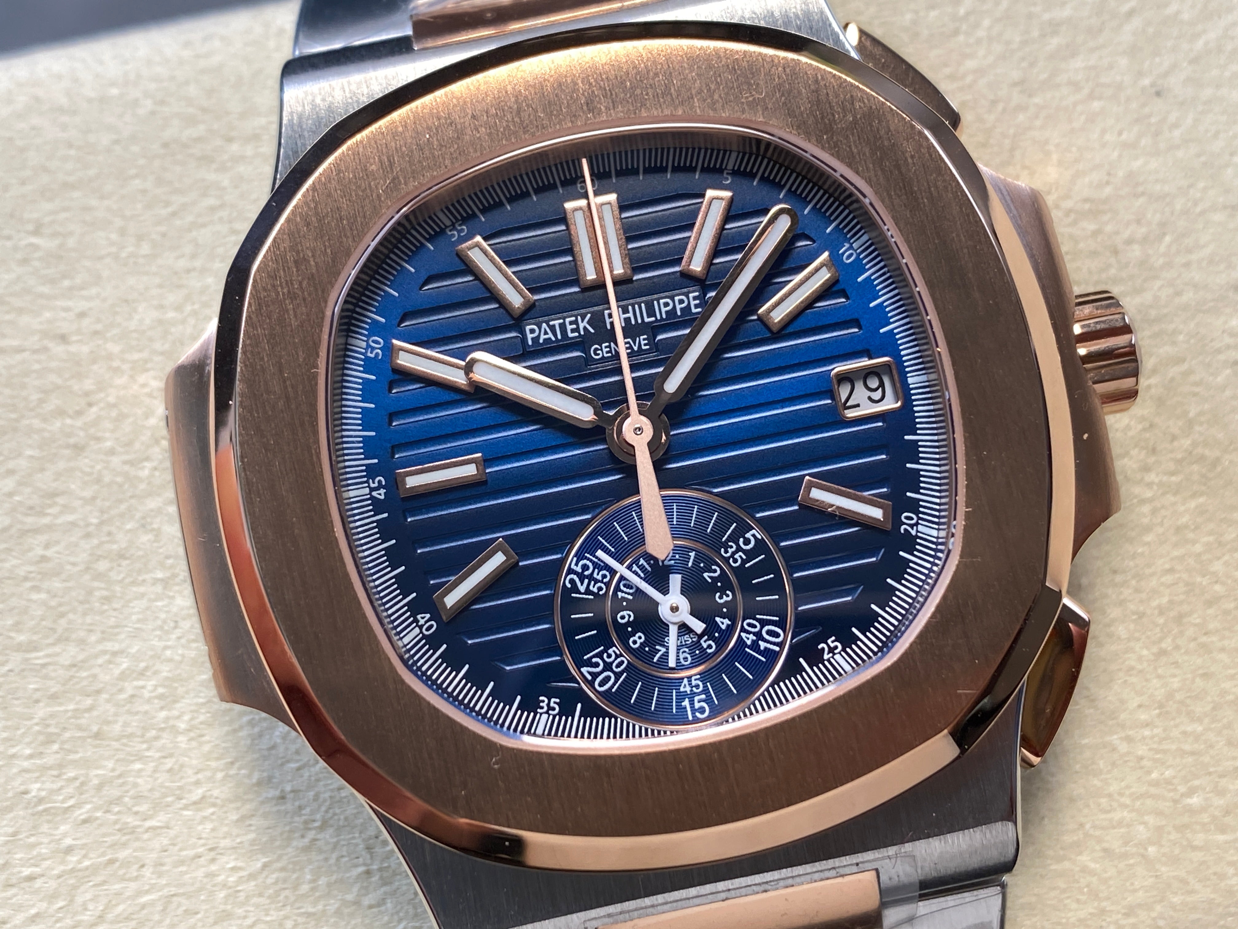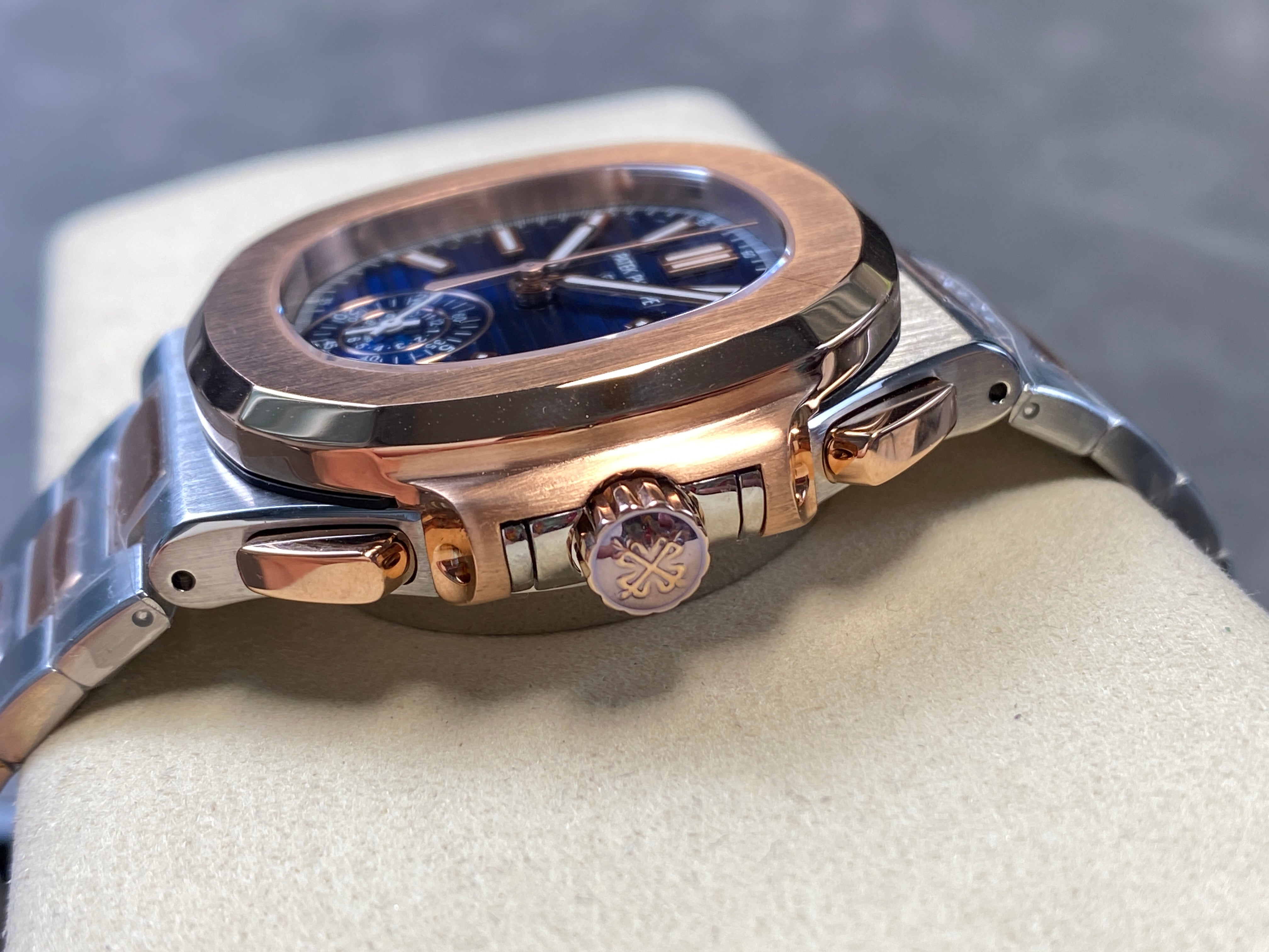 NAUTILUS STEEL AND ROSE GOLD BRACELET BLUE DIAL