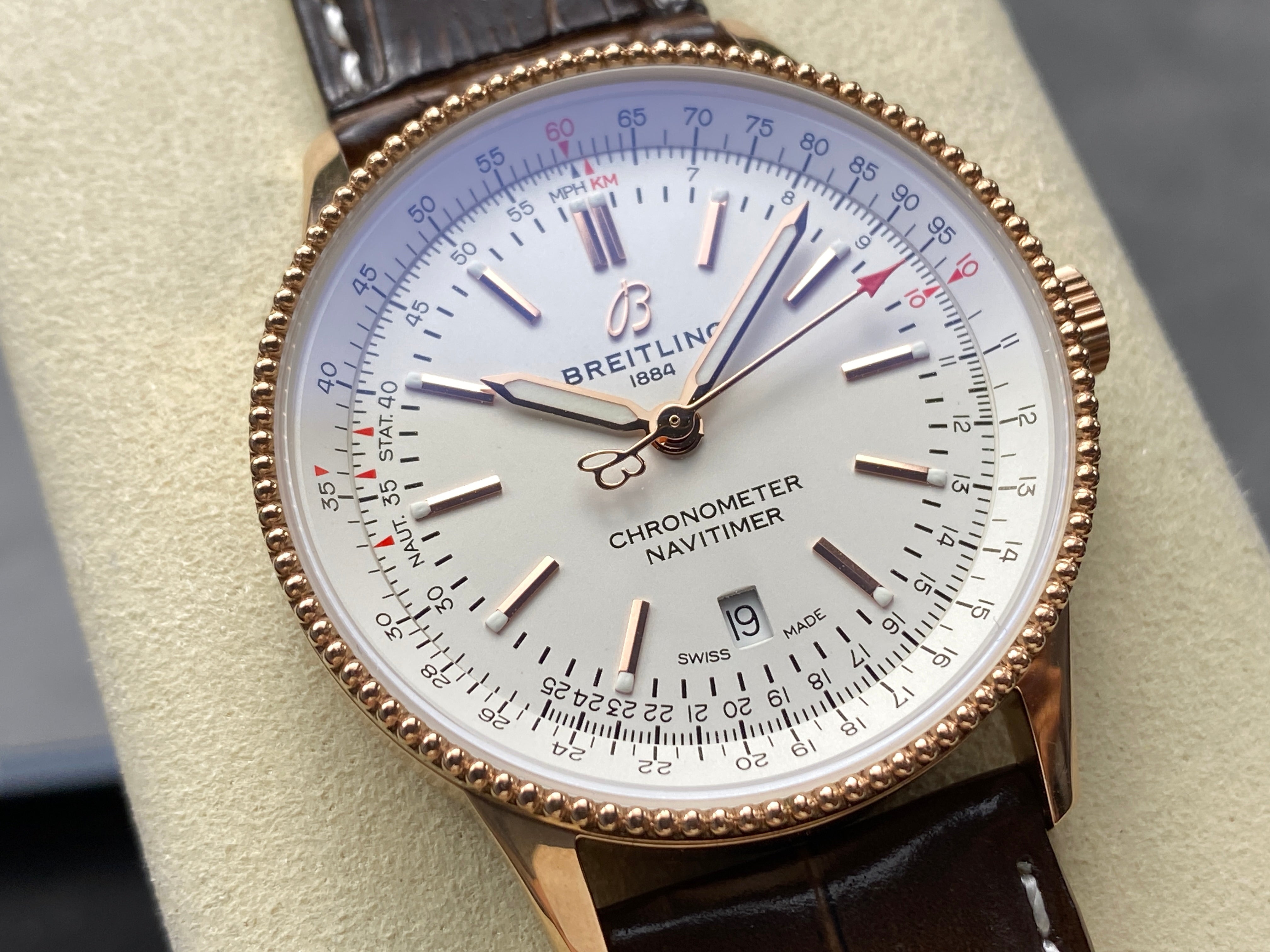 NAVITIMER AUTOMATIC 41 RED GOLD CASE BROWN ALLIGATOR LEATHER STRAP