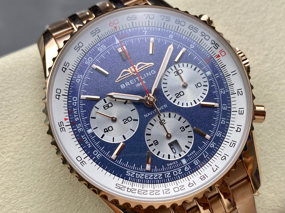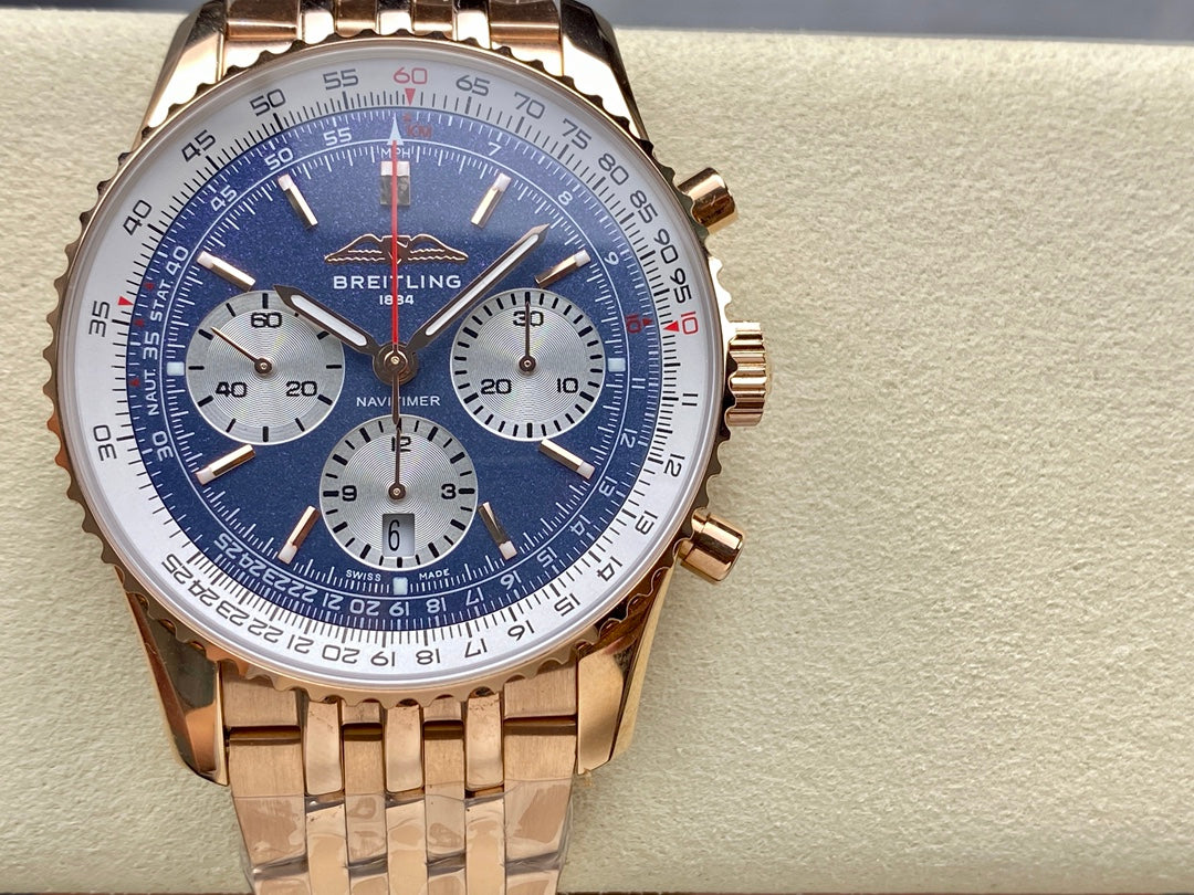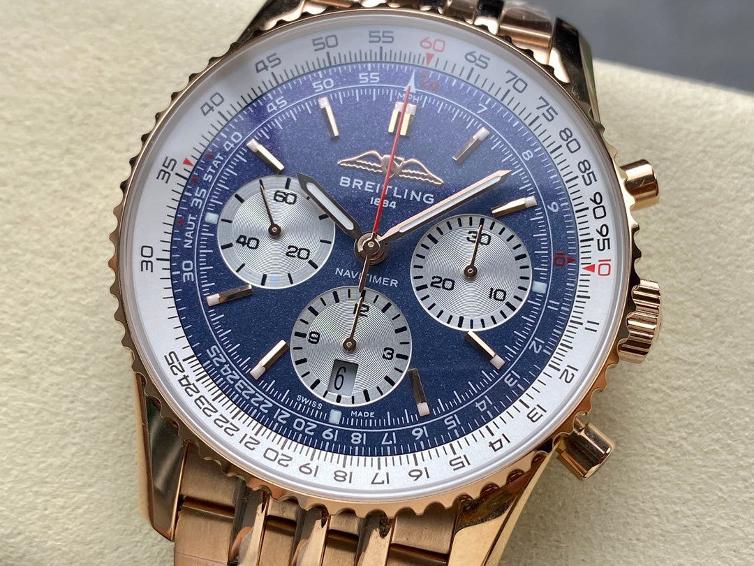 NAVITIMER B01 CHRONOGRAPH 43 ALL RED GOLD BLUE MIX WHITE DIAL