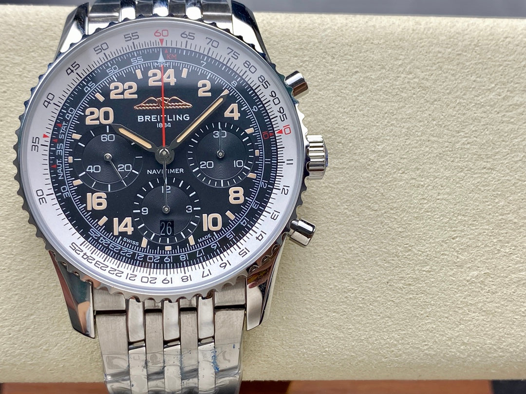 NAVITIMER B01 CHRONOGRAPH 43 ALL STEEL BLACK MIX WHITE DIAL