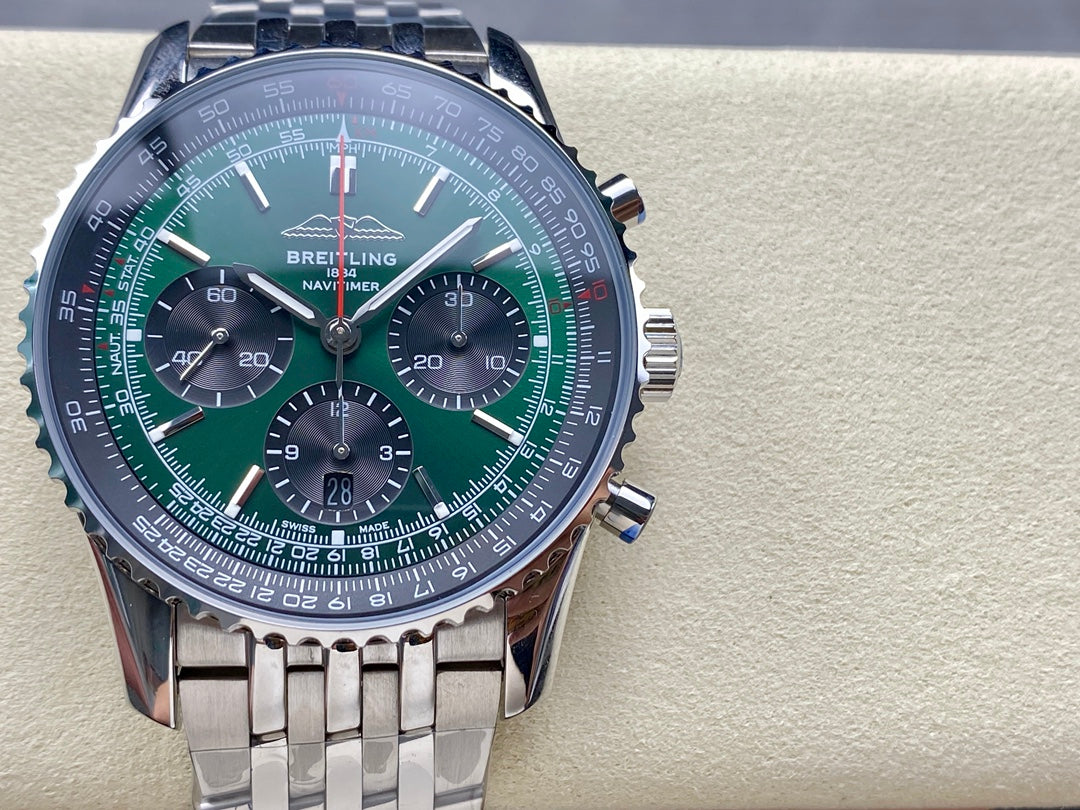NAVITIMER B01 CHRONOGRAPH 43 ALL STEEL GREEN MIX BLACK DIAL