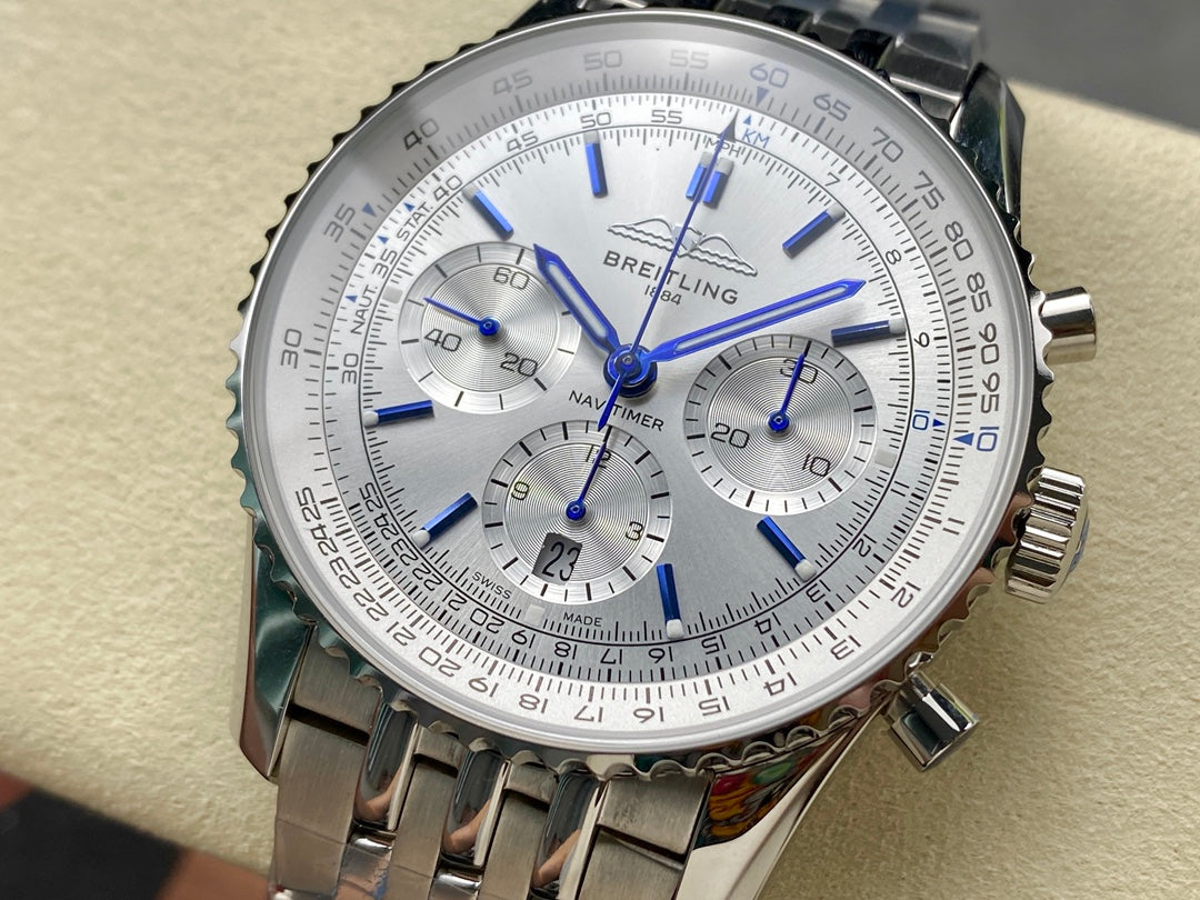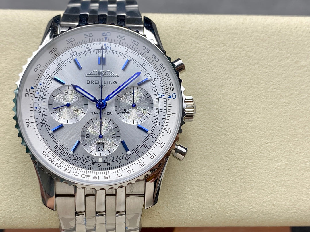NAVITIMER B01 CHRONOGRAPH 43 ALL STEEL SILVER MIX WHITE DIAL