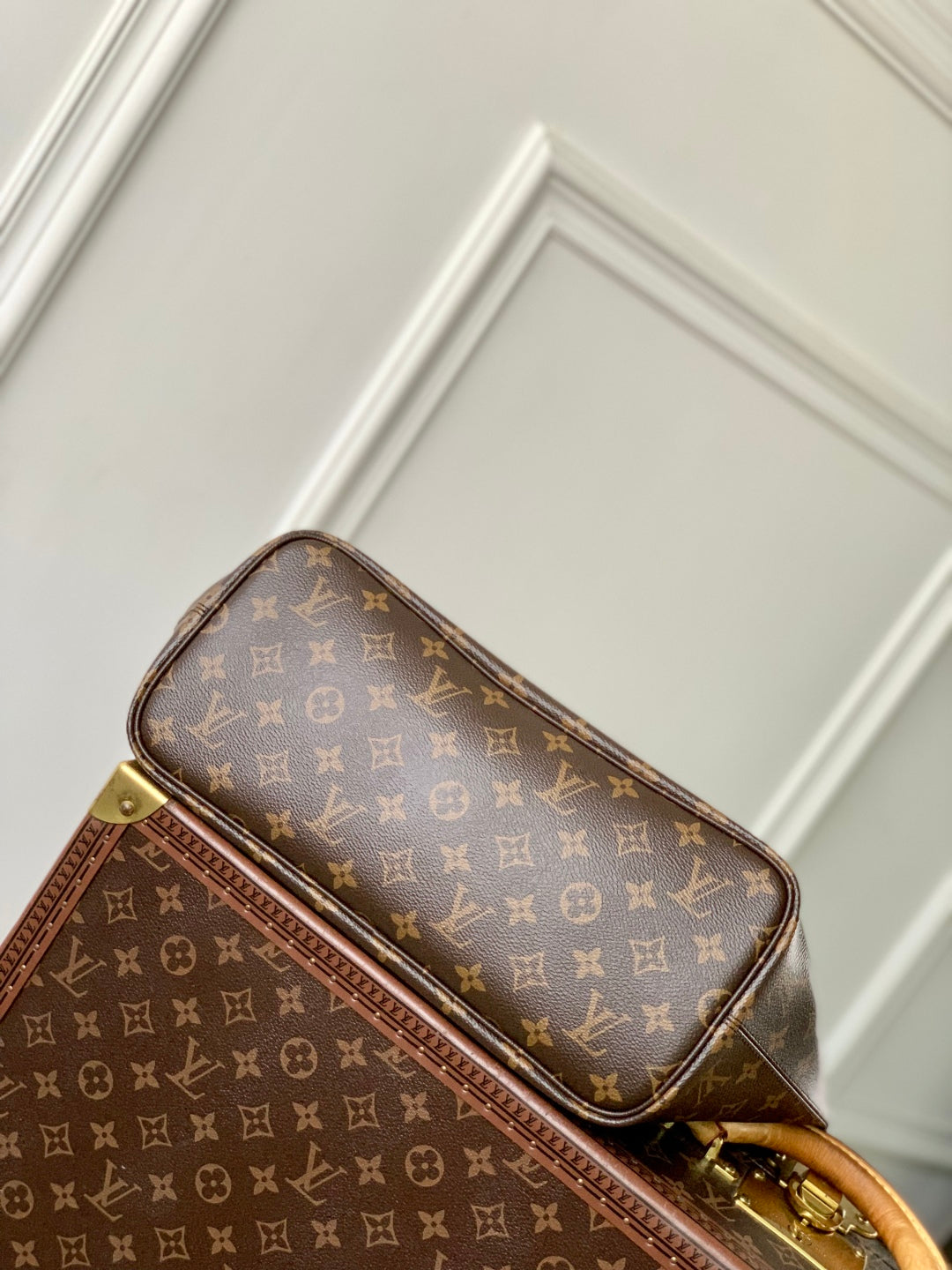 NEVERFULL BANDOULIÈRE INSIDE OUT BB 31 IN BROWN MONOGRAM CANVAS AND BLACK CALFSKIN