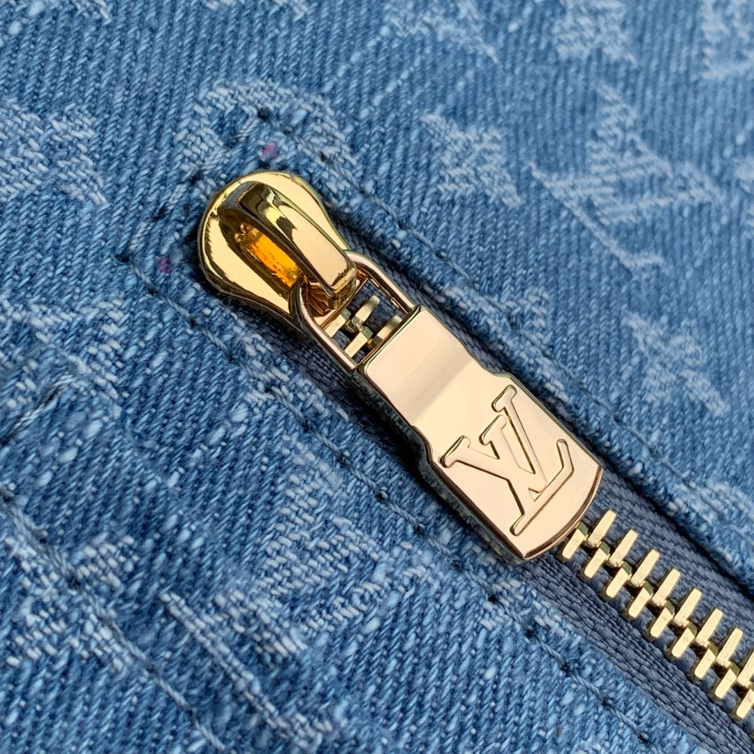 NEVERFULL MM 31 IN DENIM BLUE MONOGRAM COWHIDE LEATHER TRIM