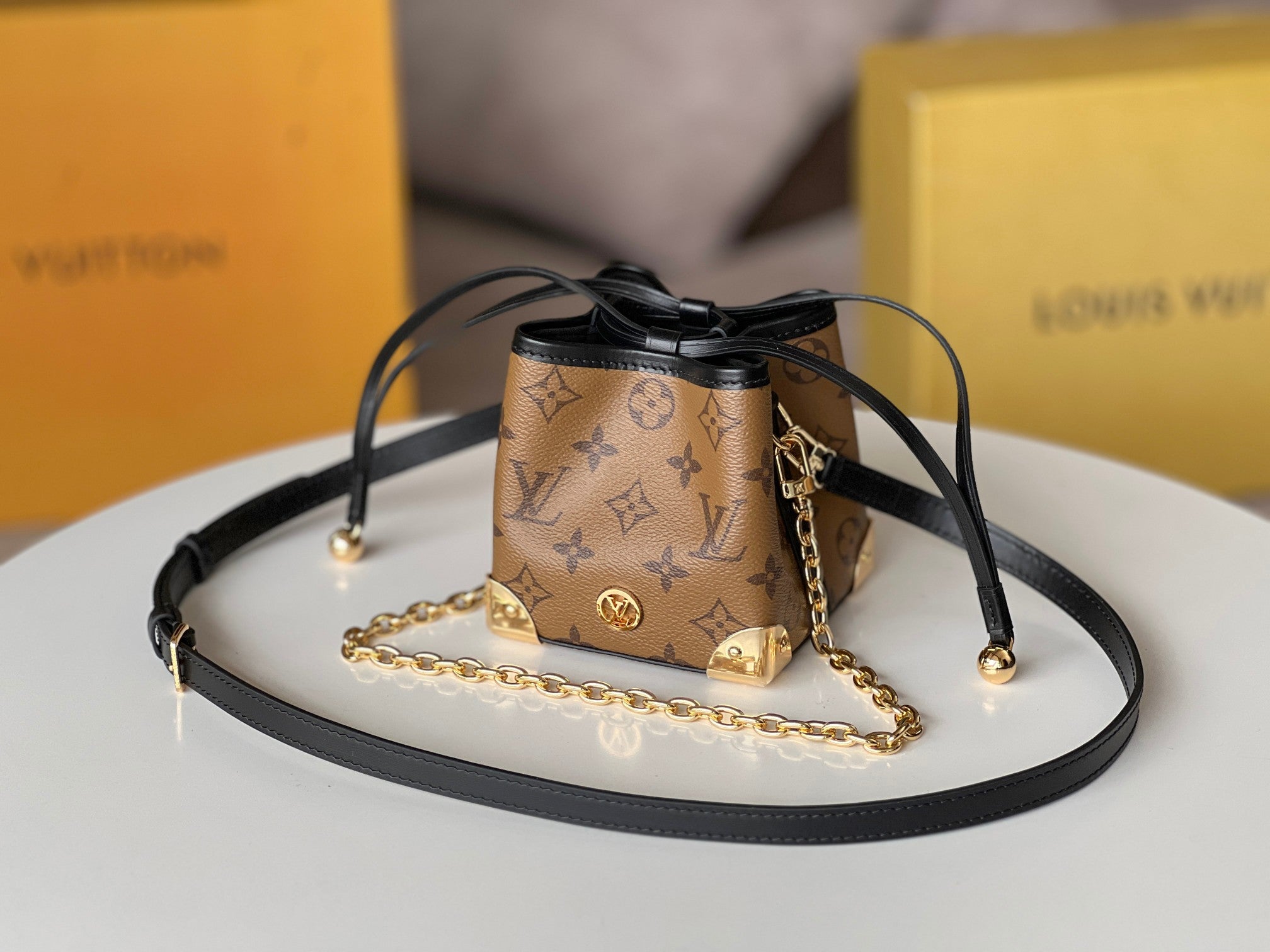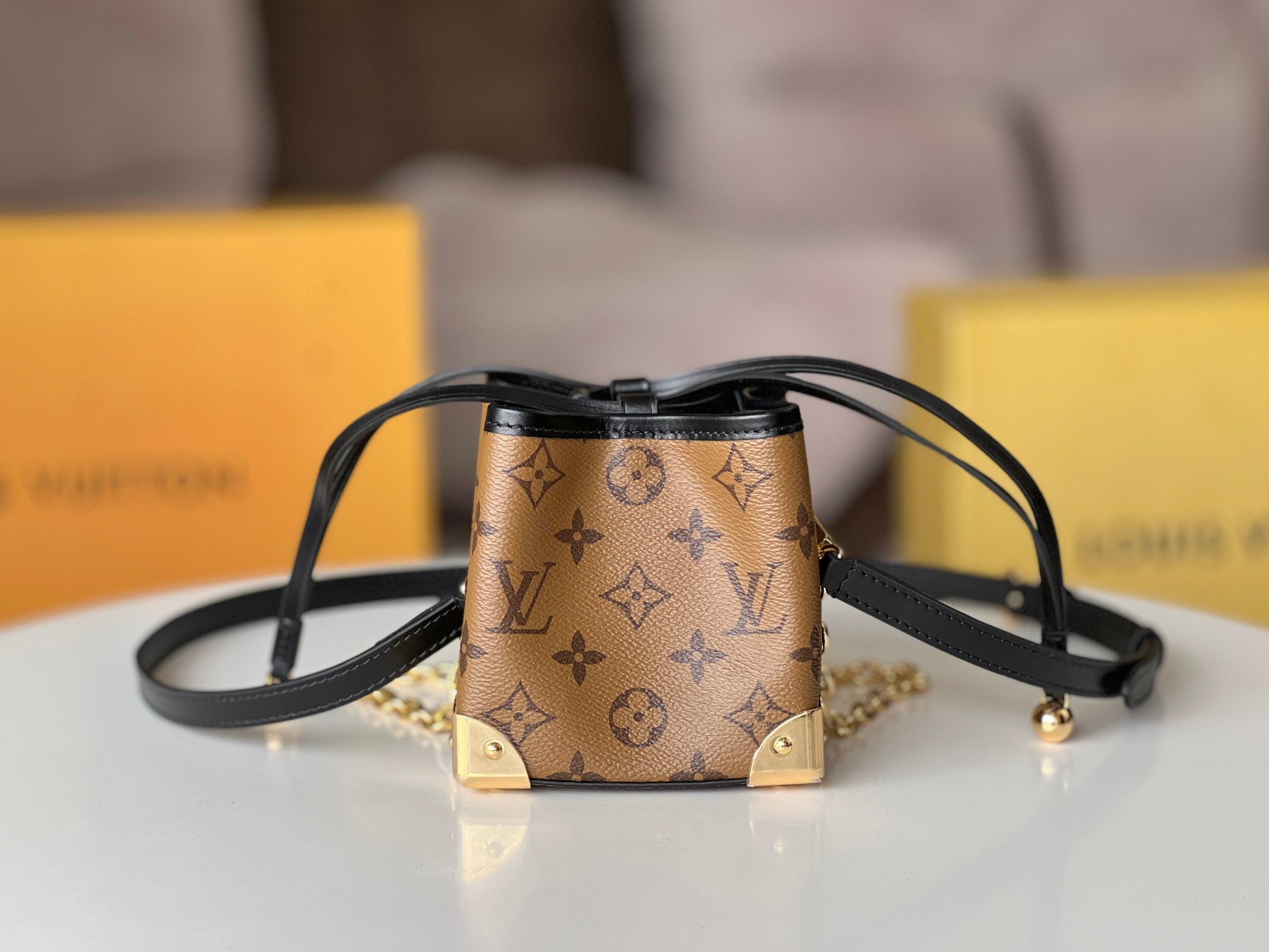 NOE PURSE 11.5 NANO CHARM BROWN MONOGRAM REVERSE CANVAS