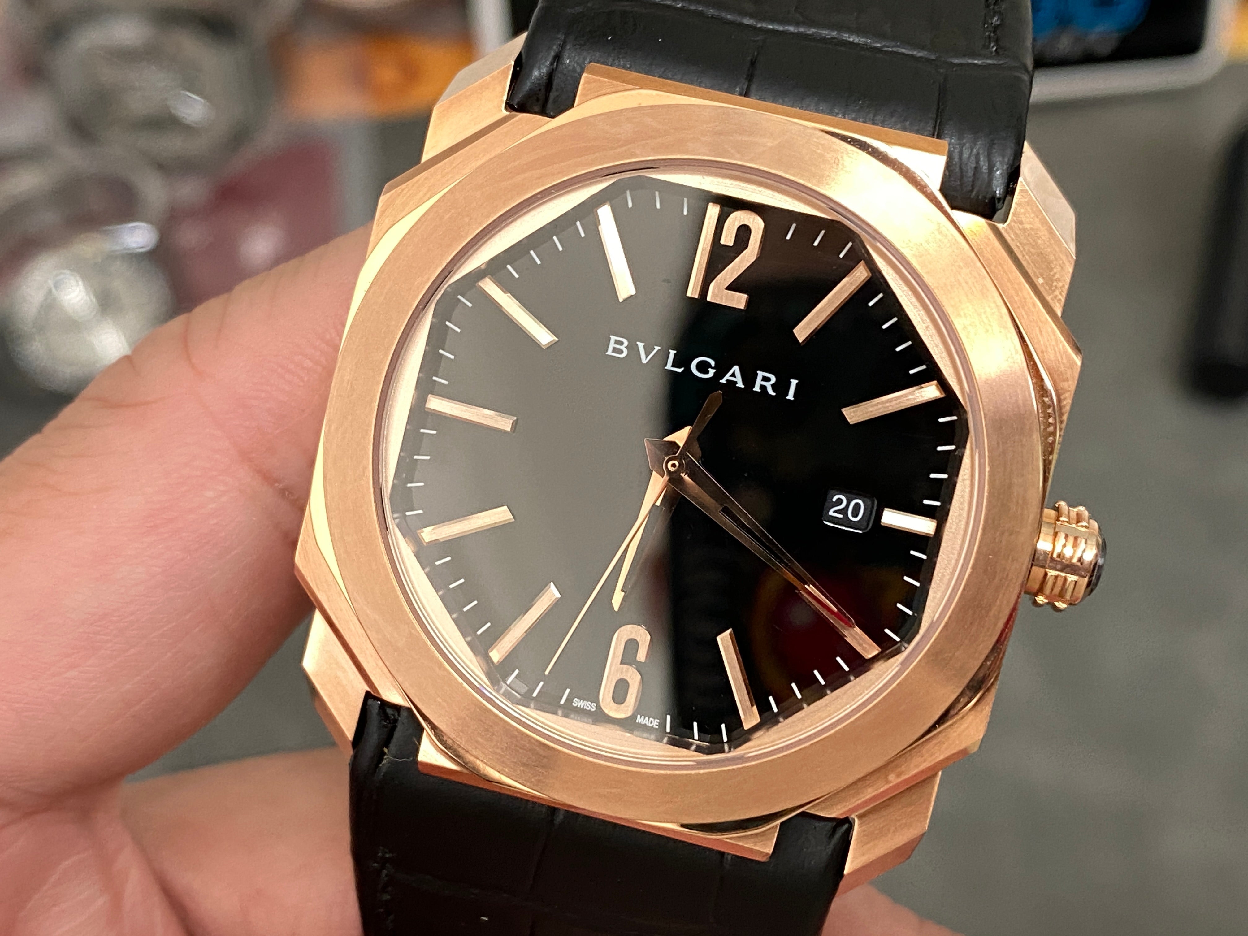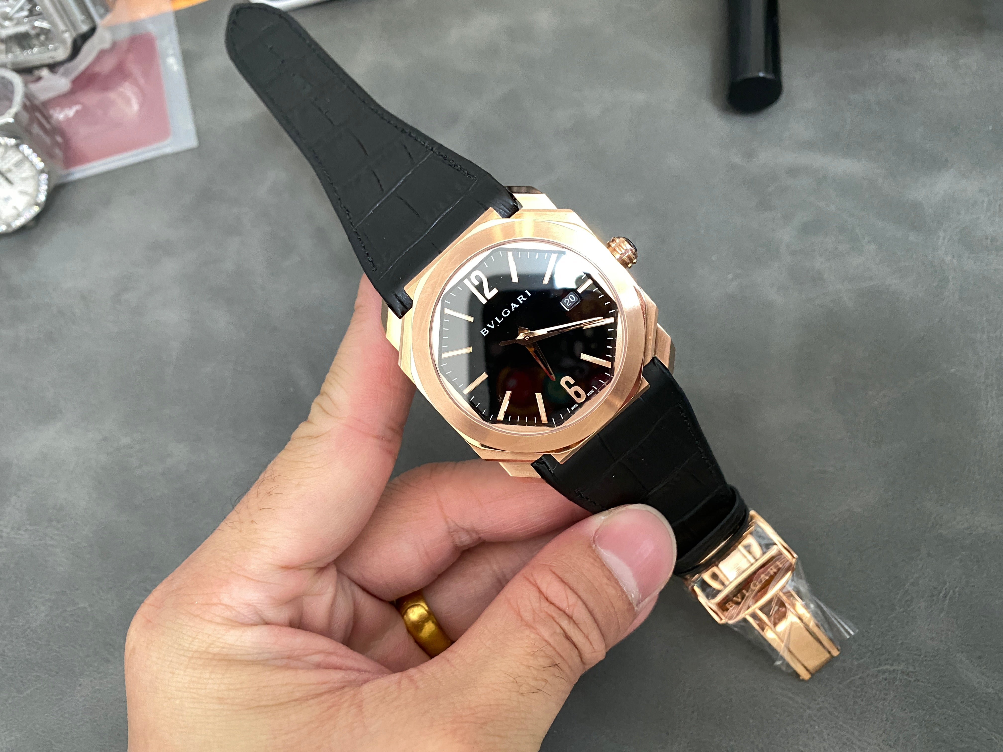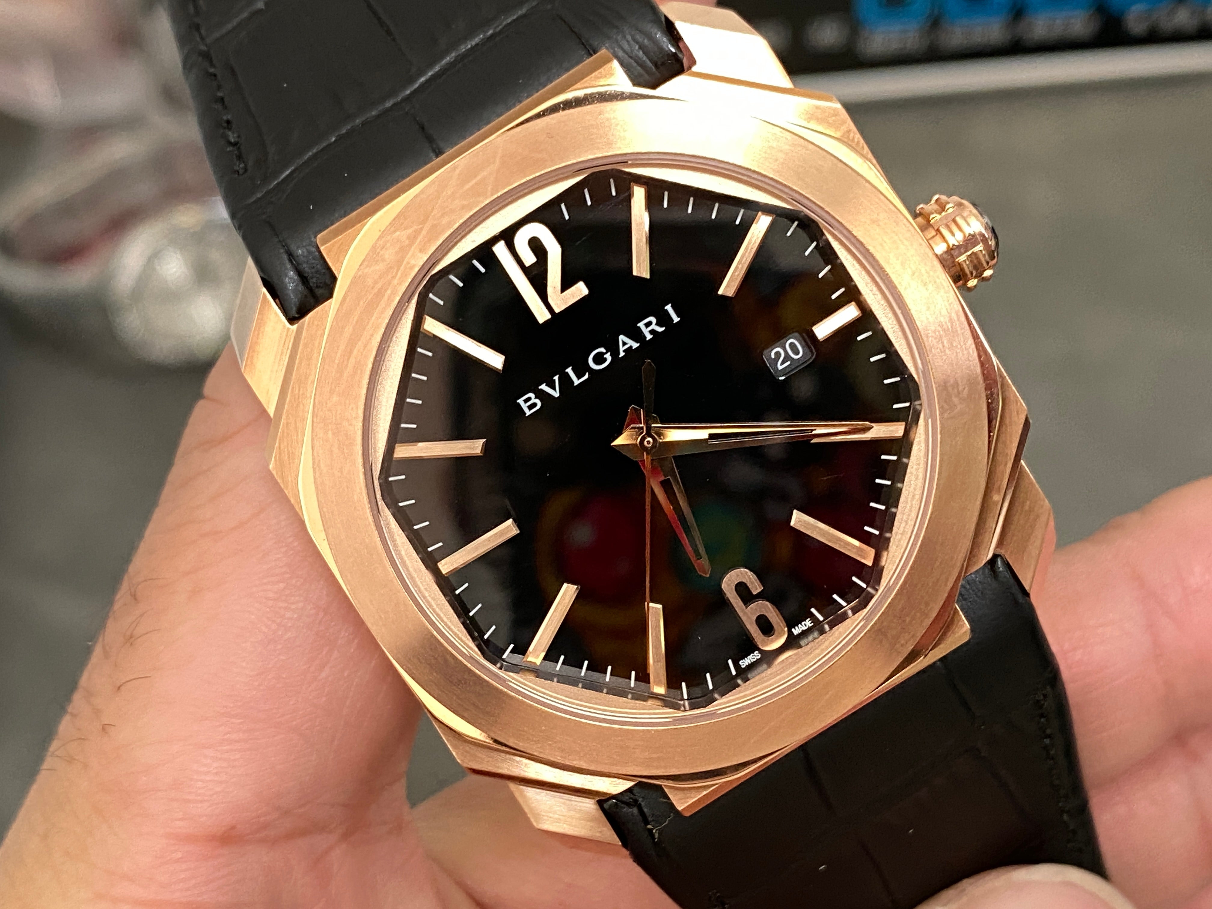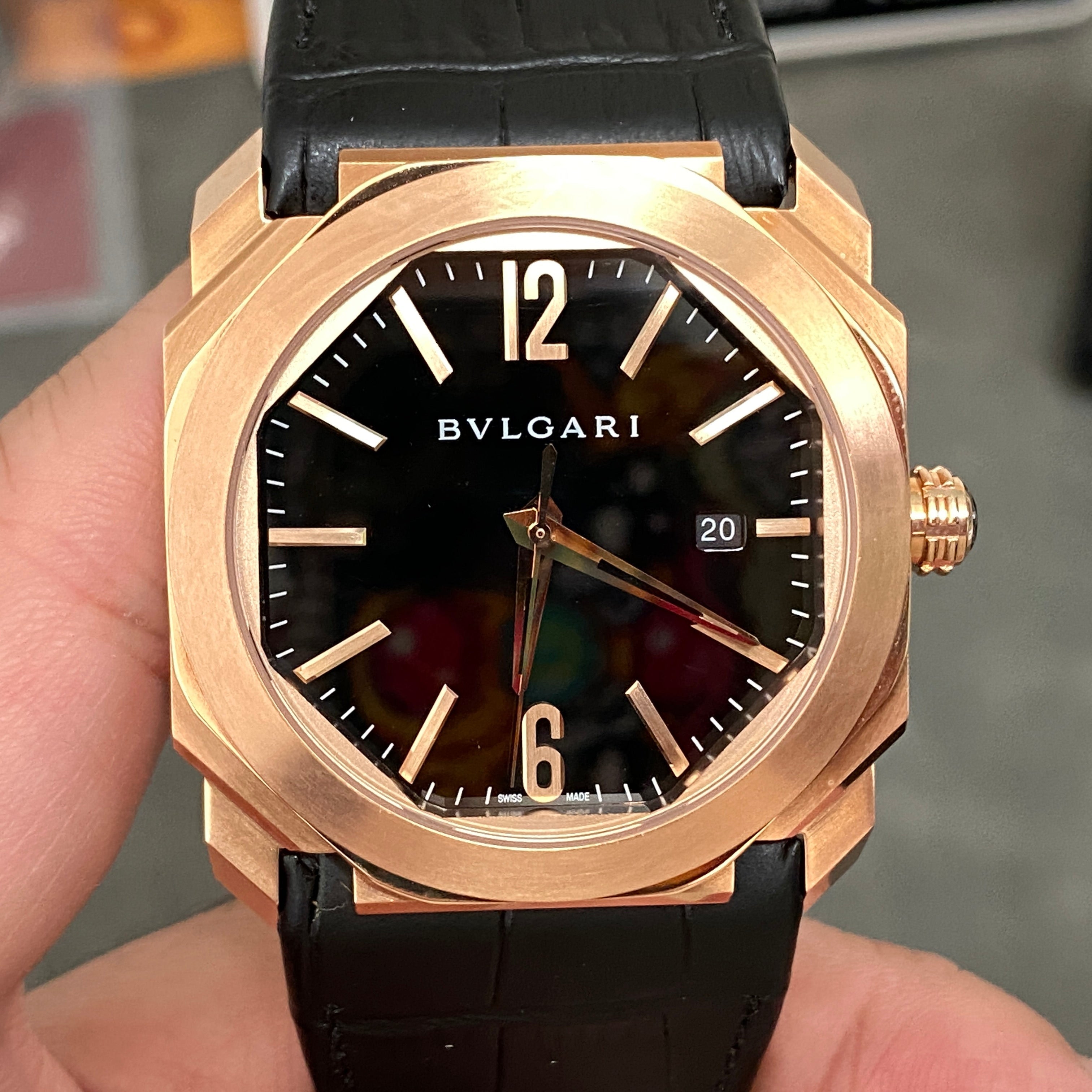 OCTO 41 ROSE GOLD CASE BLACK CROCODILE LEATHER STRAP