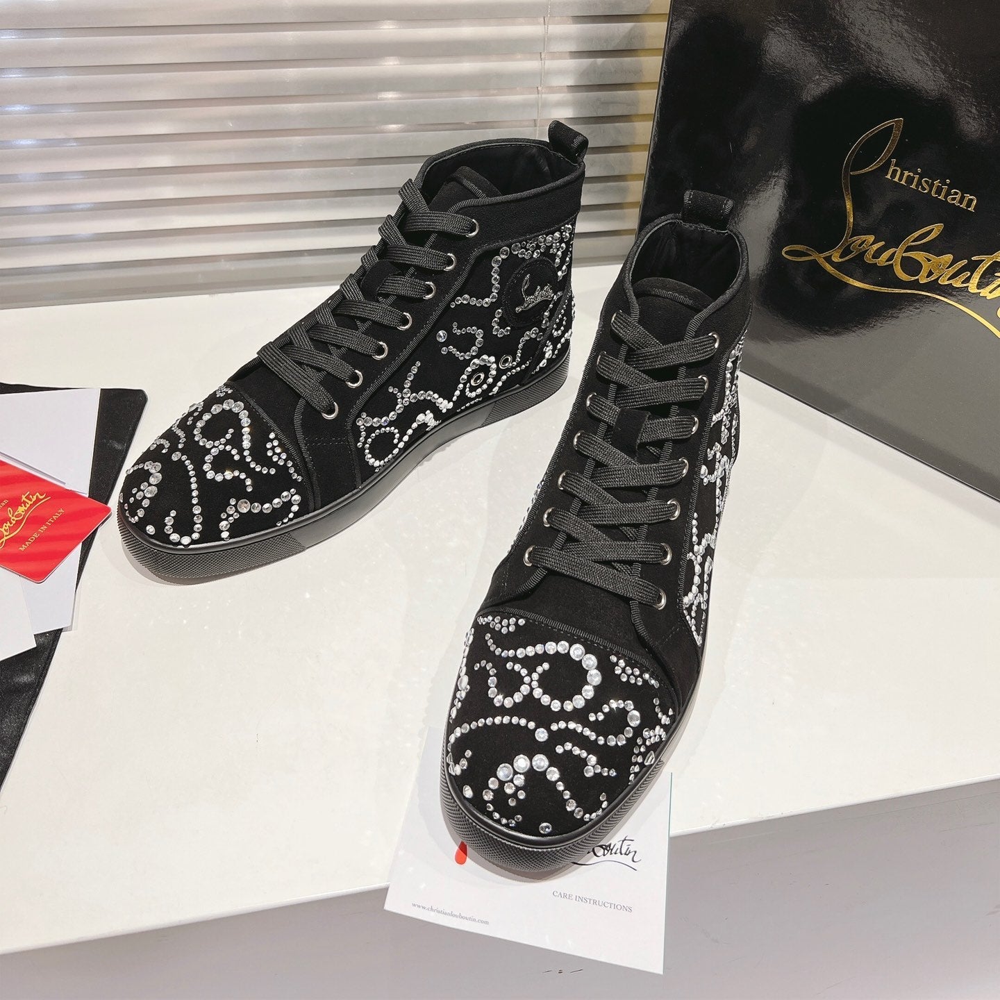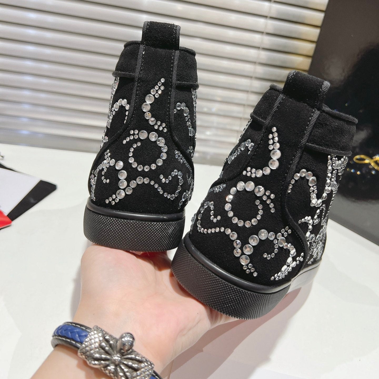 OCTOLOUIS STRASS STUDDED HIGH-TOP SNEAKERS IN BLACK VELVET