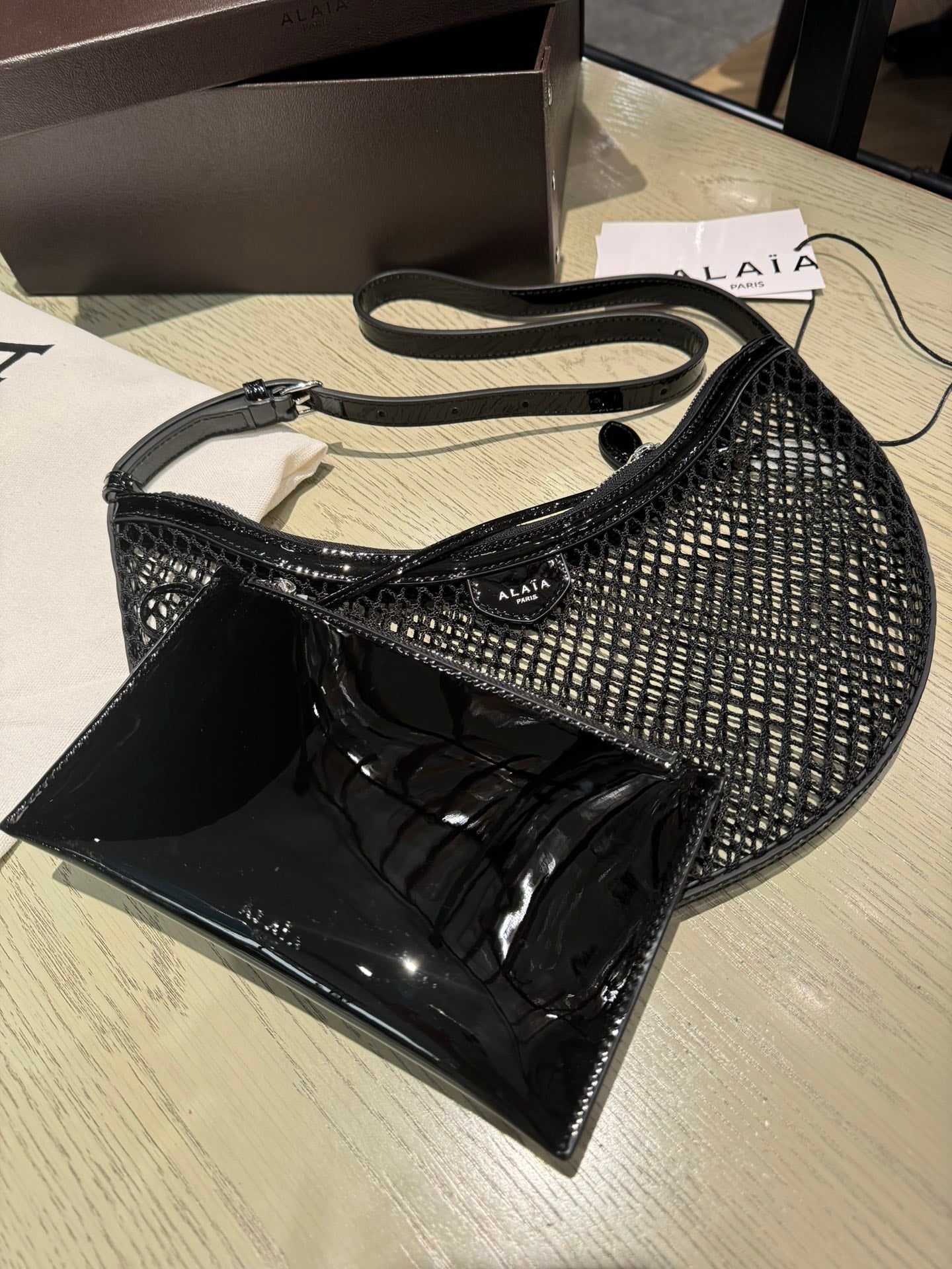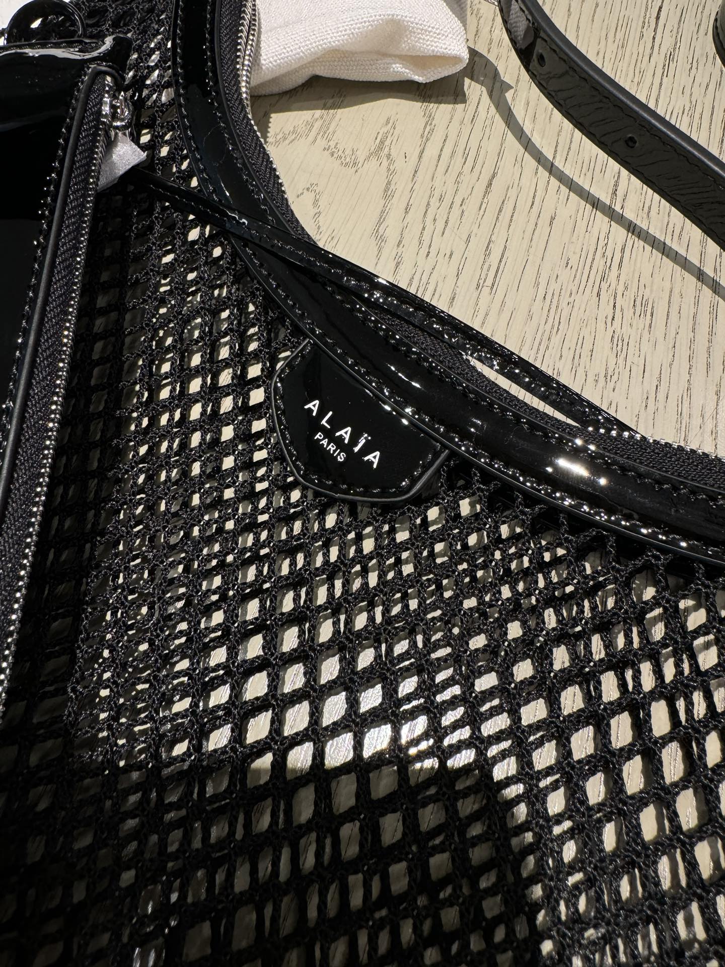 ONE PIECE DEMI LUNE BAG 31 IN BLACK FISHNET