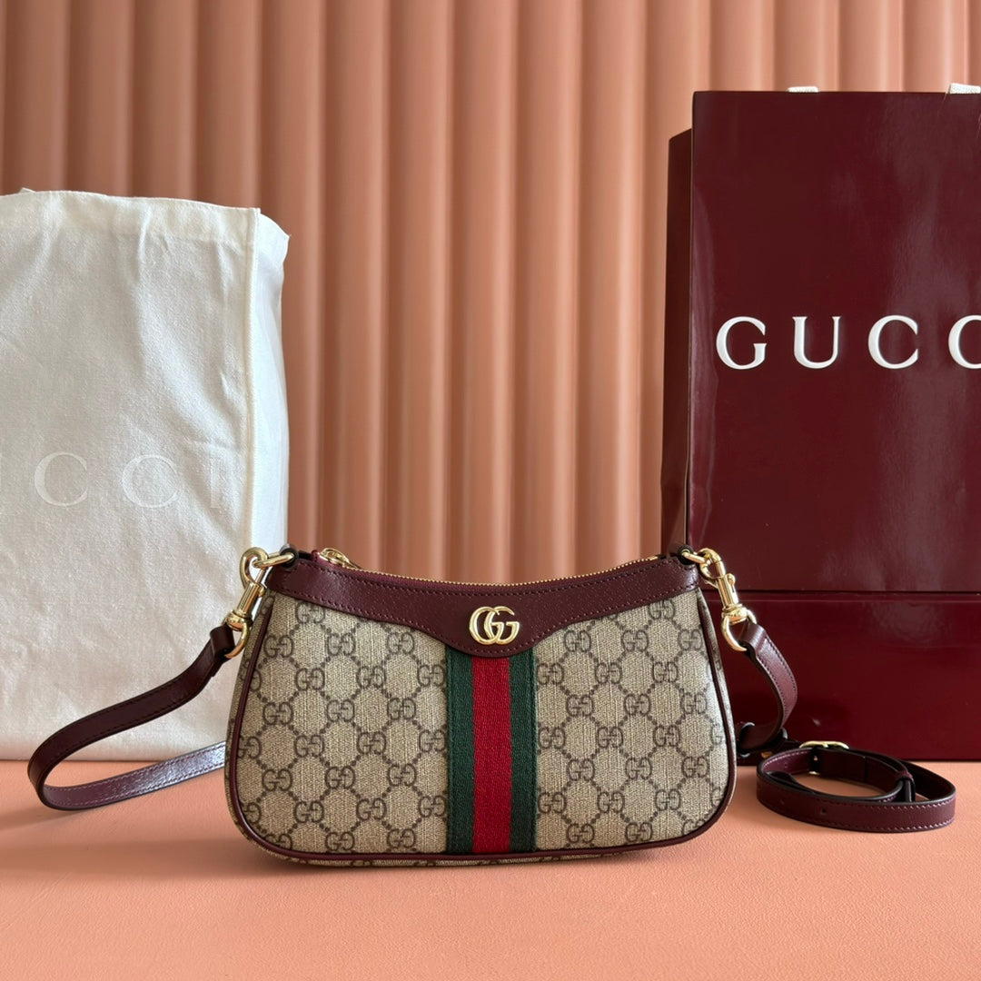OPHIDIA SMALL SHOULDER BAG 26 IN BROWN CANVAS REDDISH BROWN LEATHER TRIM