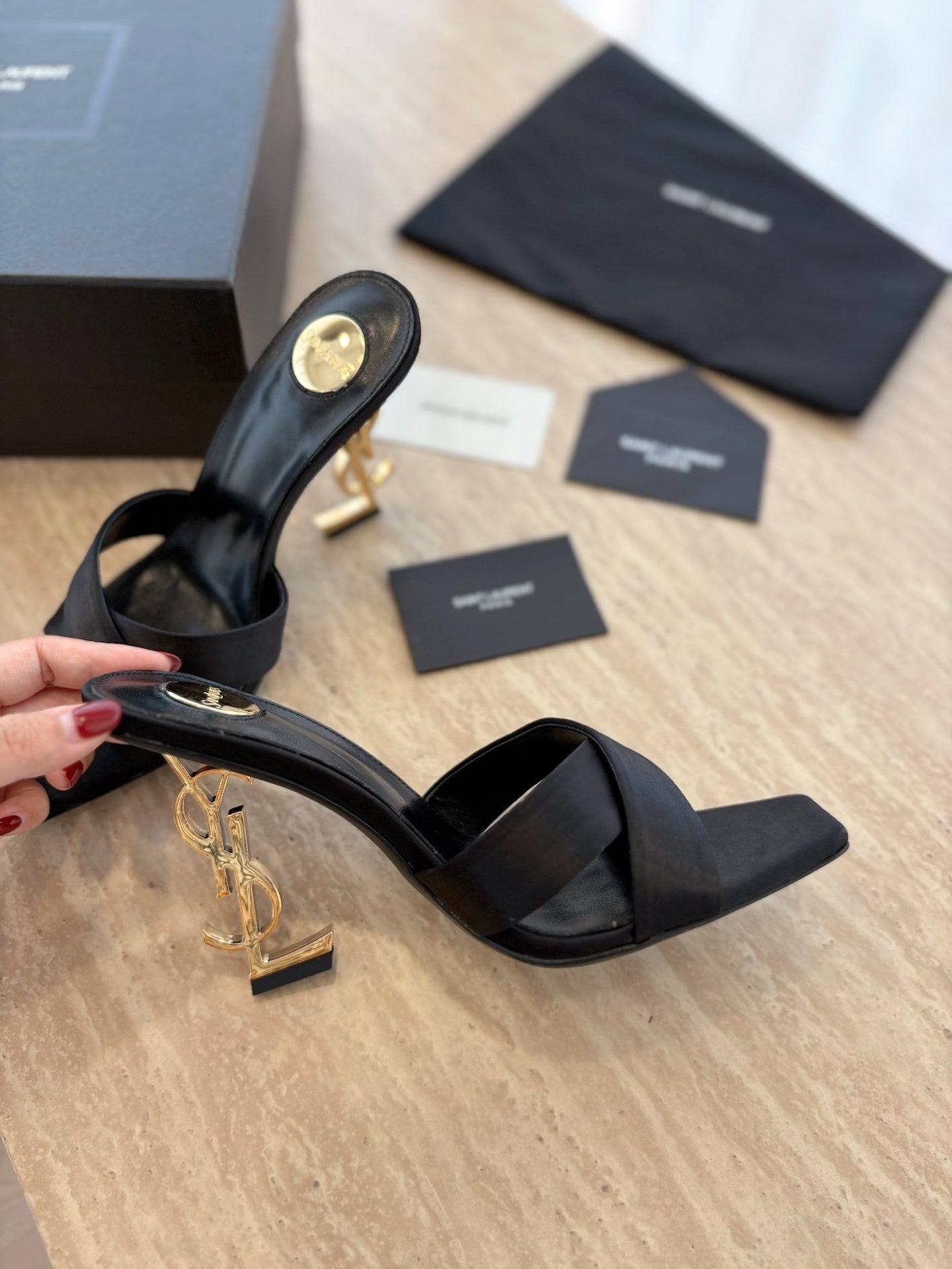 OPYUM OPEN TOE HIGH 10 CM MULES IN BLACK CALFSKIN