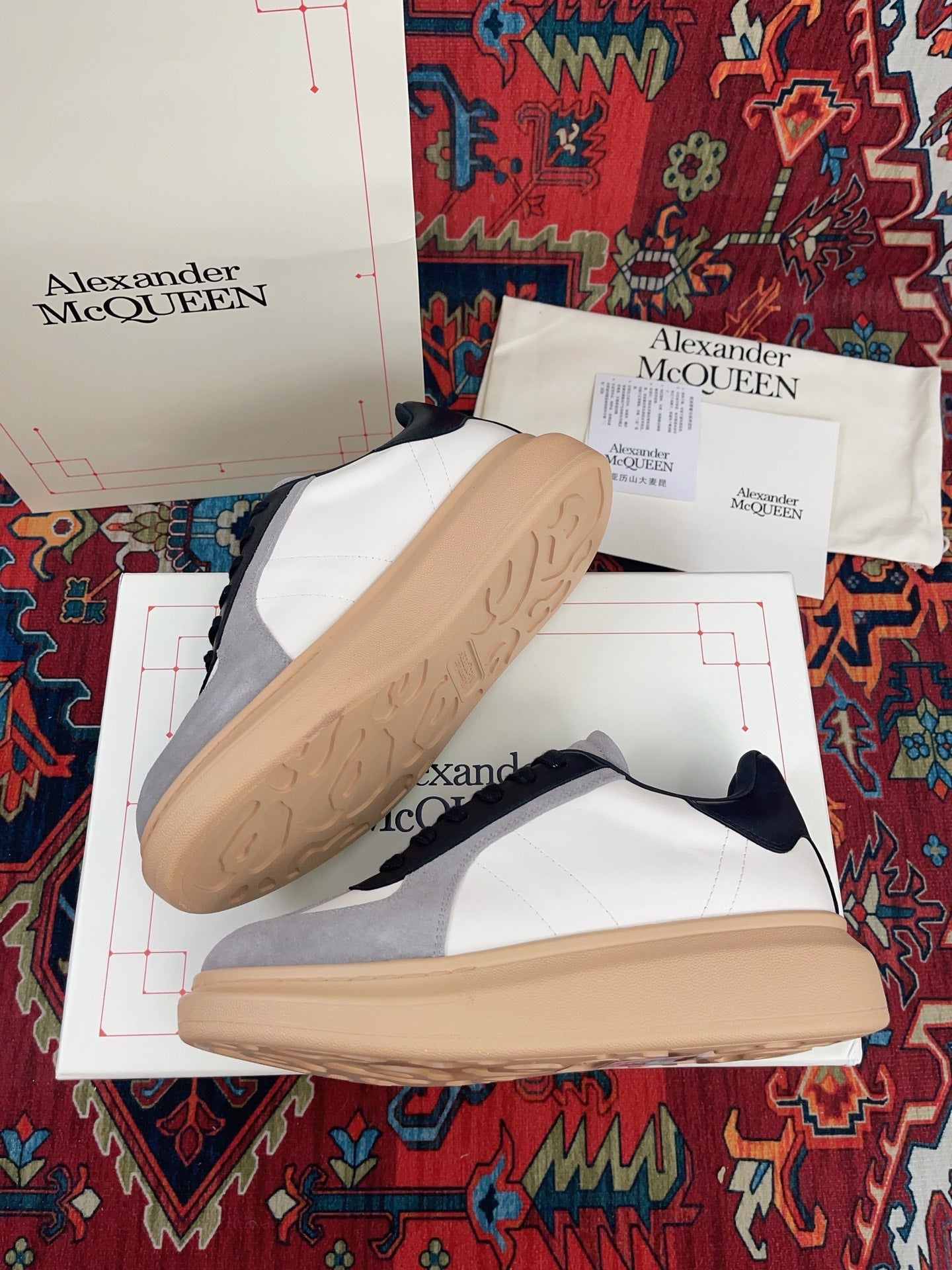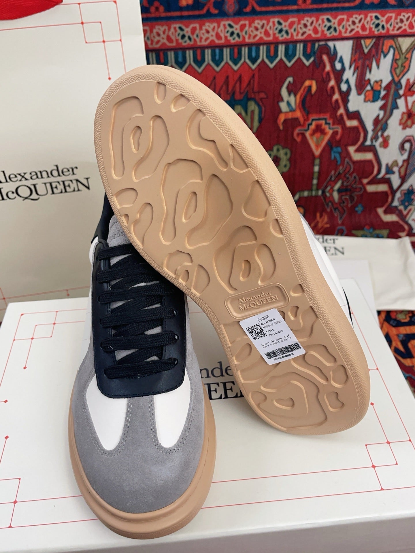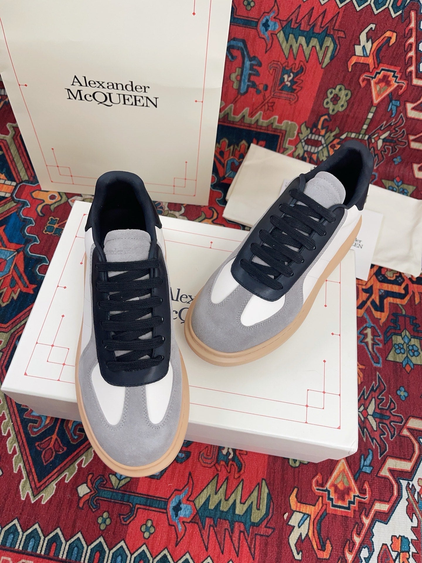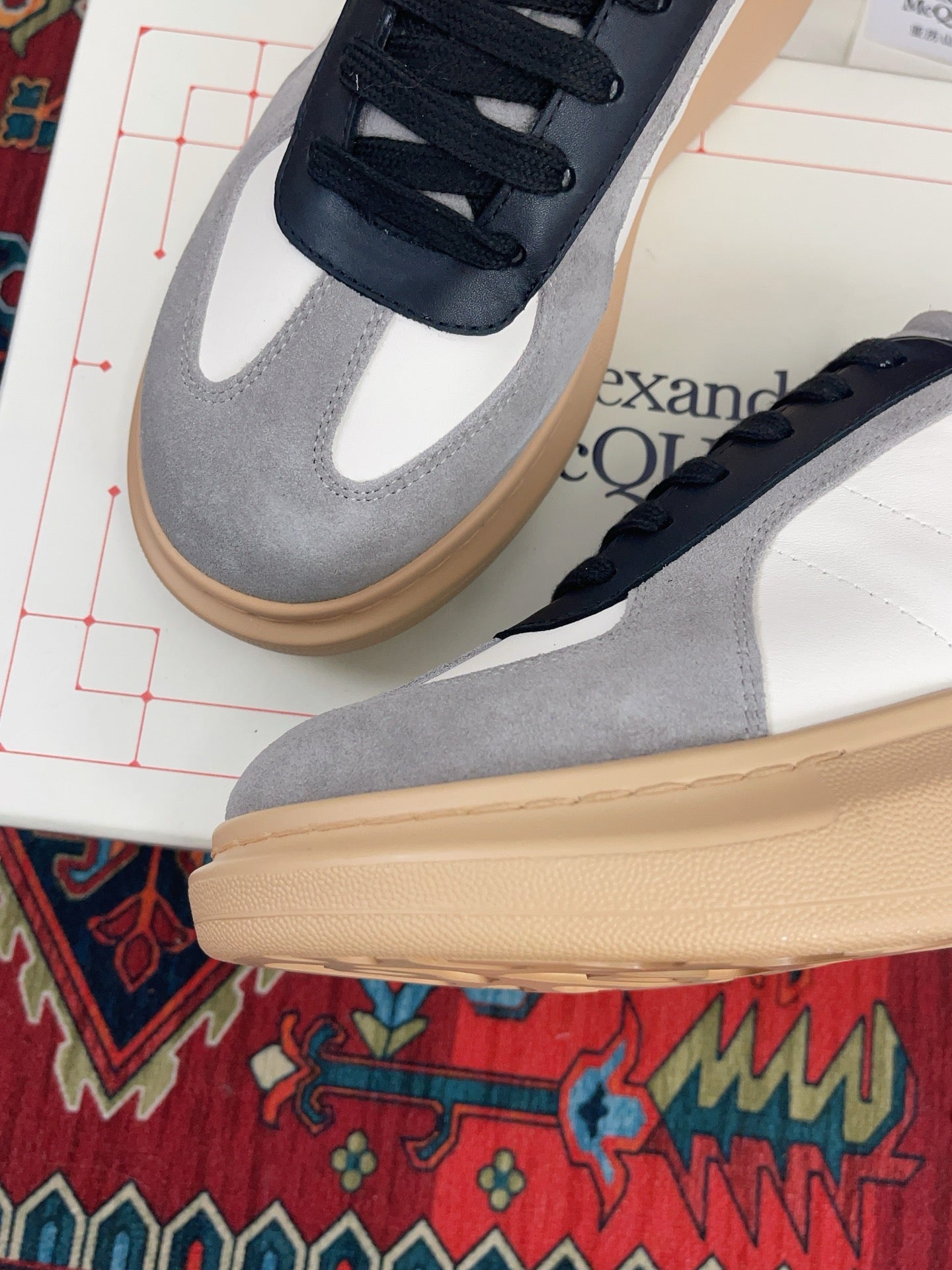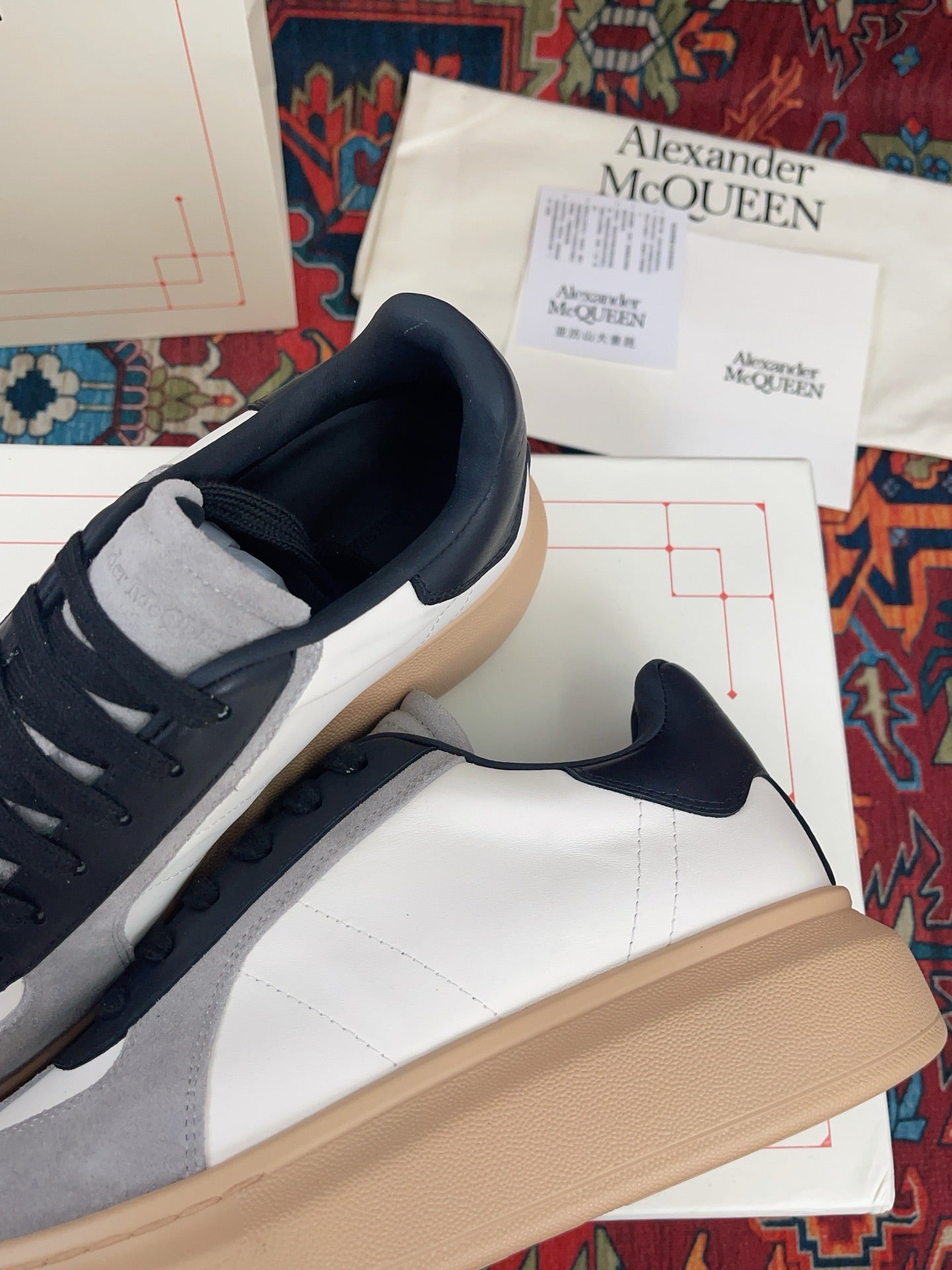 OVERSIZED RETRO SNEAKER IN WHITE BLACK GREY CALFSKIN