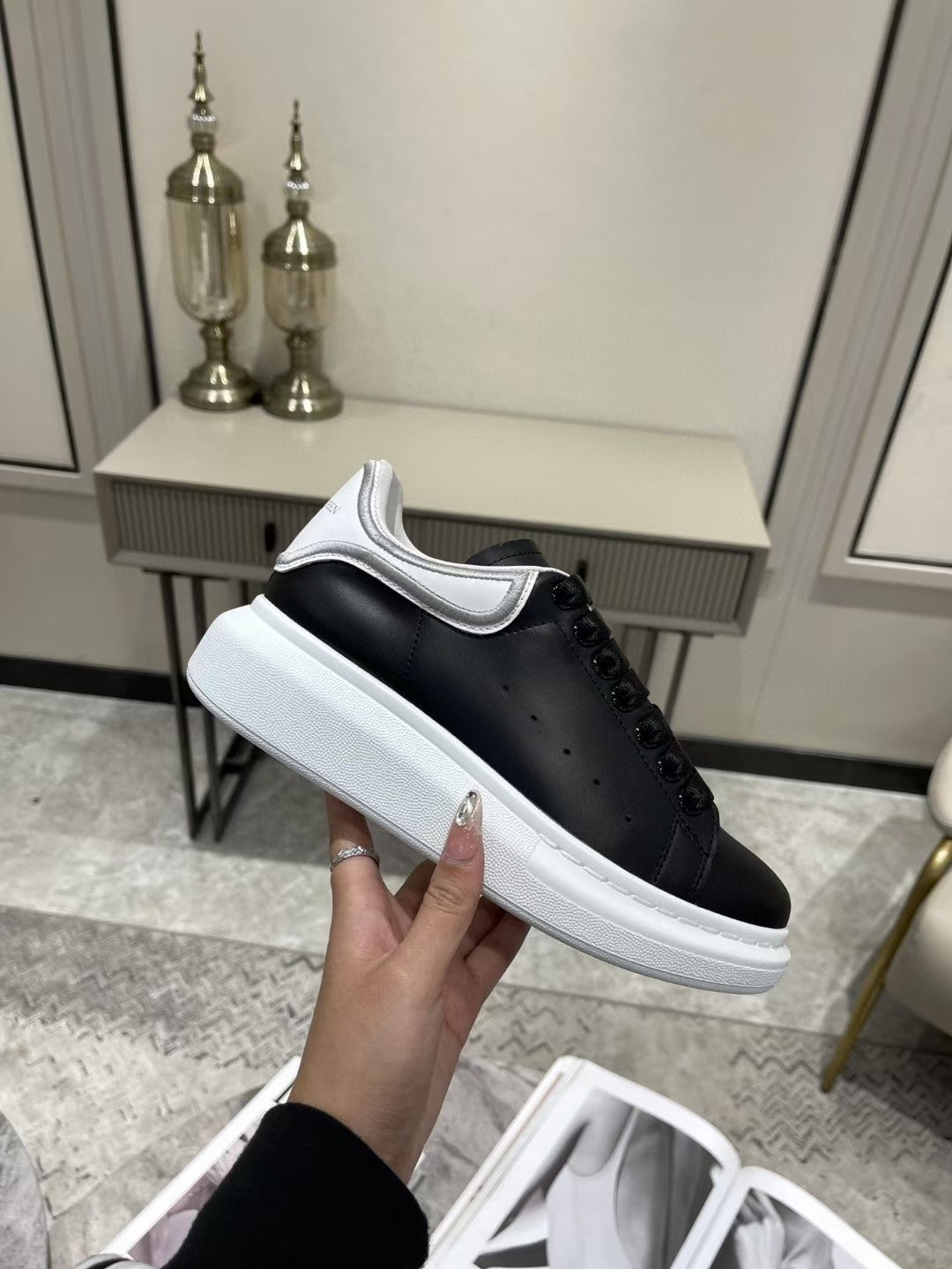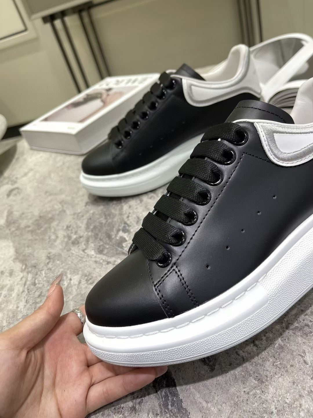 OVERSIZED SNEAKER IN BLACK CALFSKIN WITH SILVER STITCHED WHITE HEEL TAB
