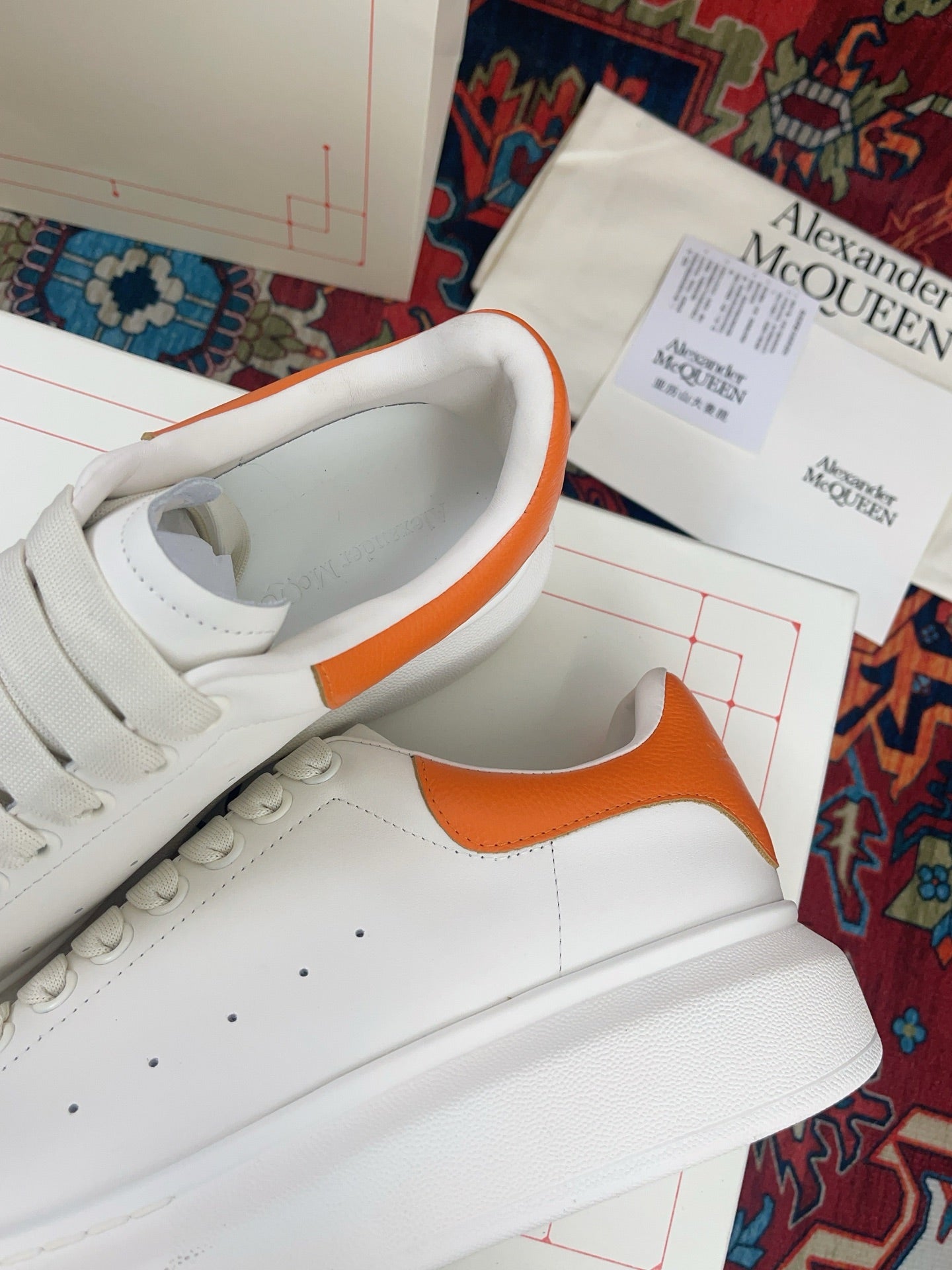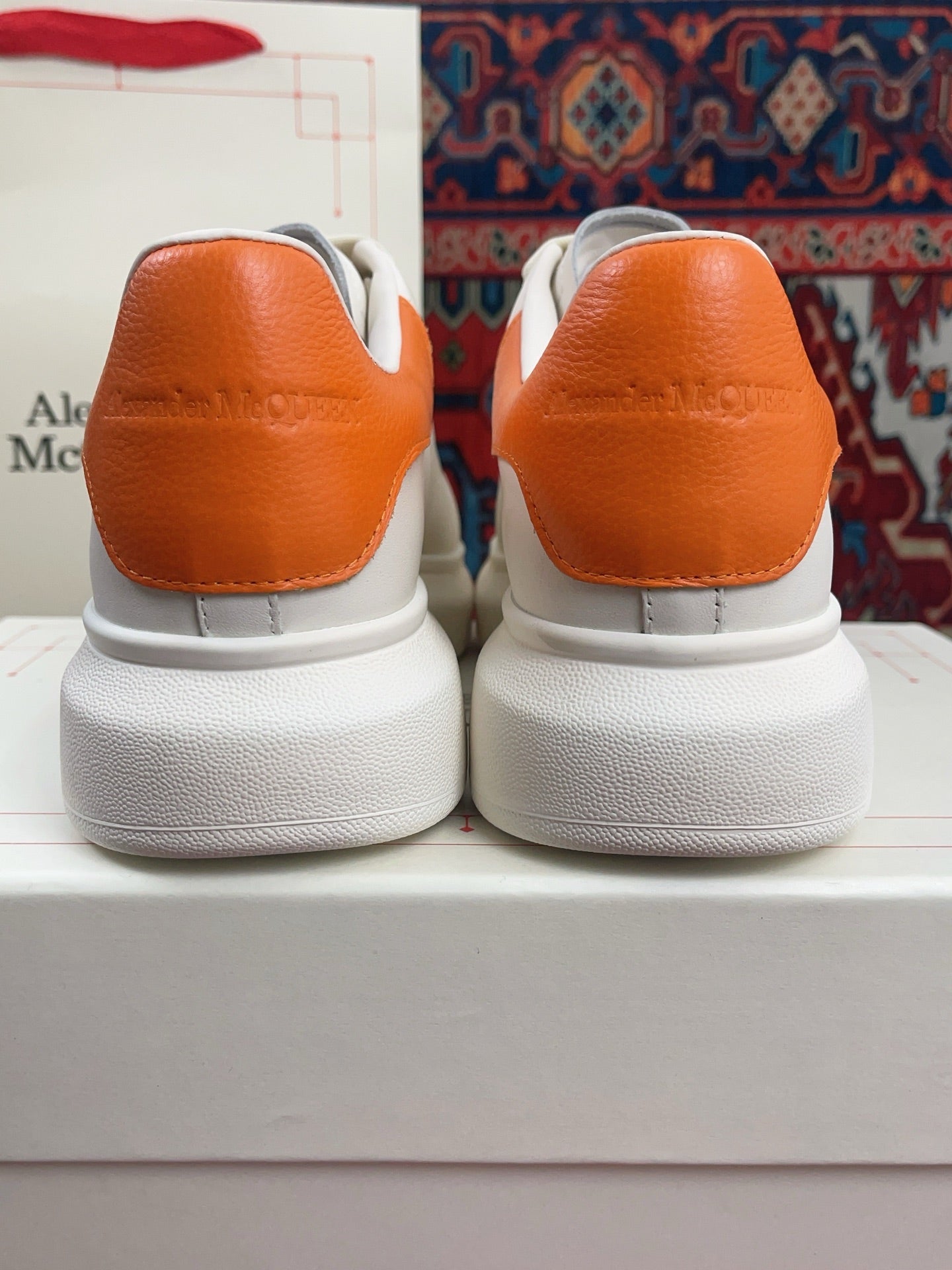 OVERSIZED SNEAKER IN WHITE CALFSKIN ORANGE HEEL TAB EMBOSSED LOGO
