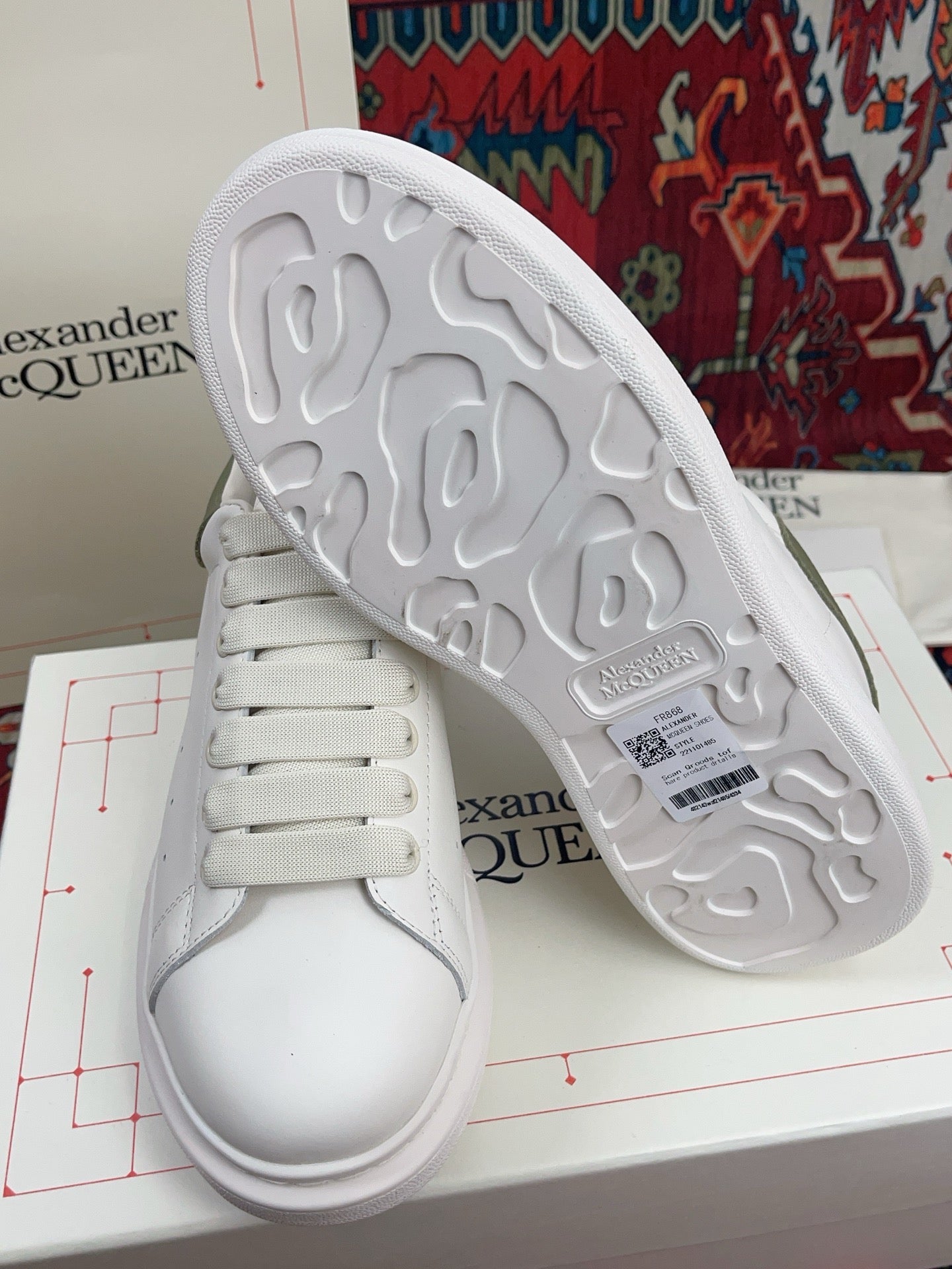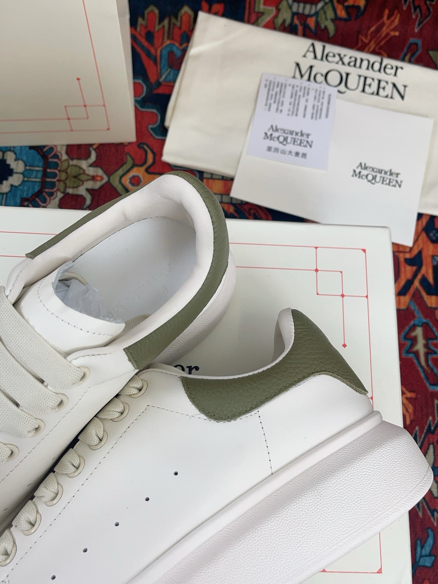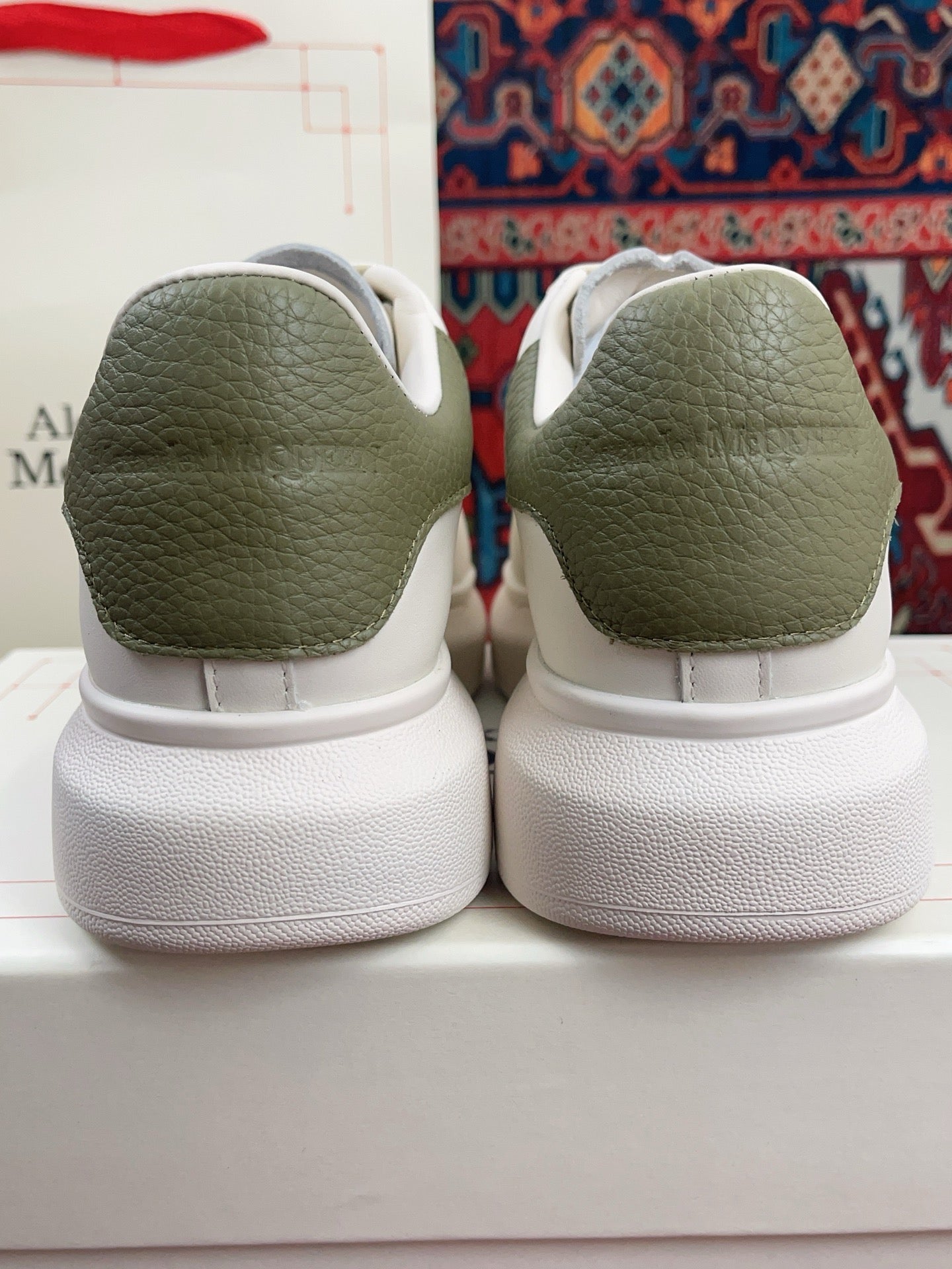 OVERSIZED SNEAKER IN WHITE CALFSKIN WITH EMBOSSED OLIVE GREEN HEEL TAB