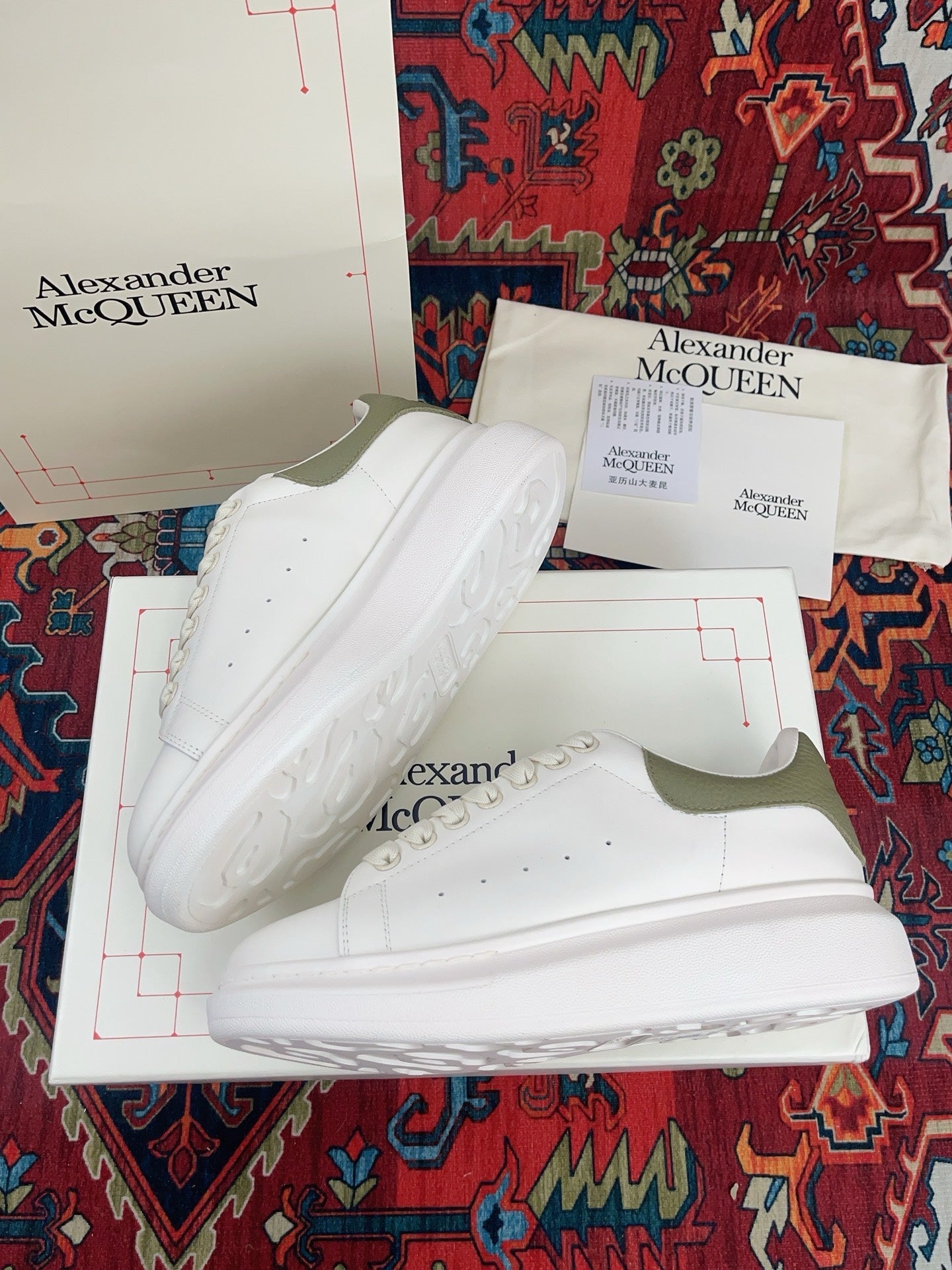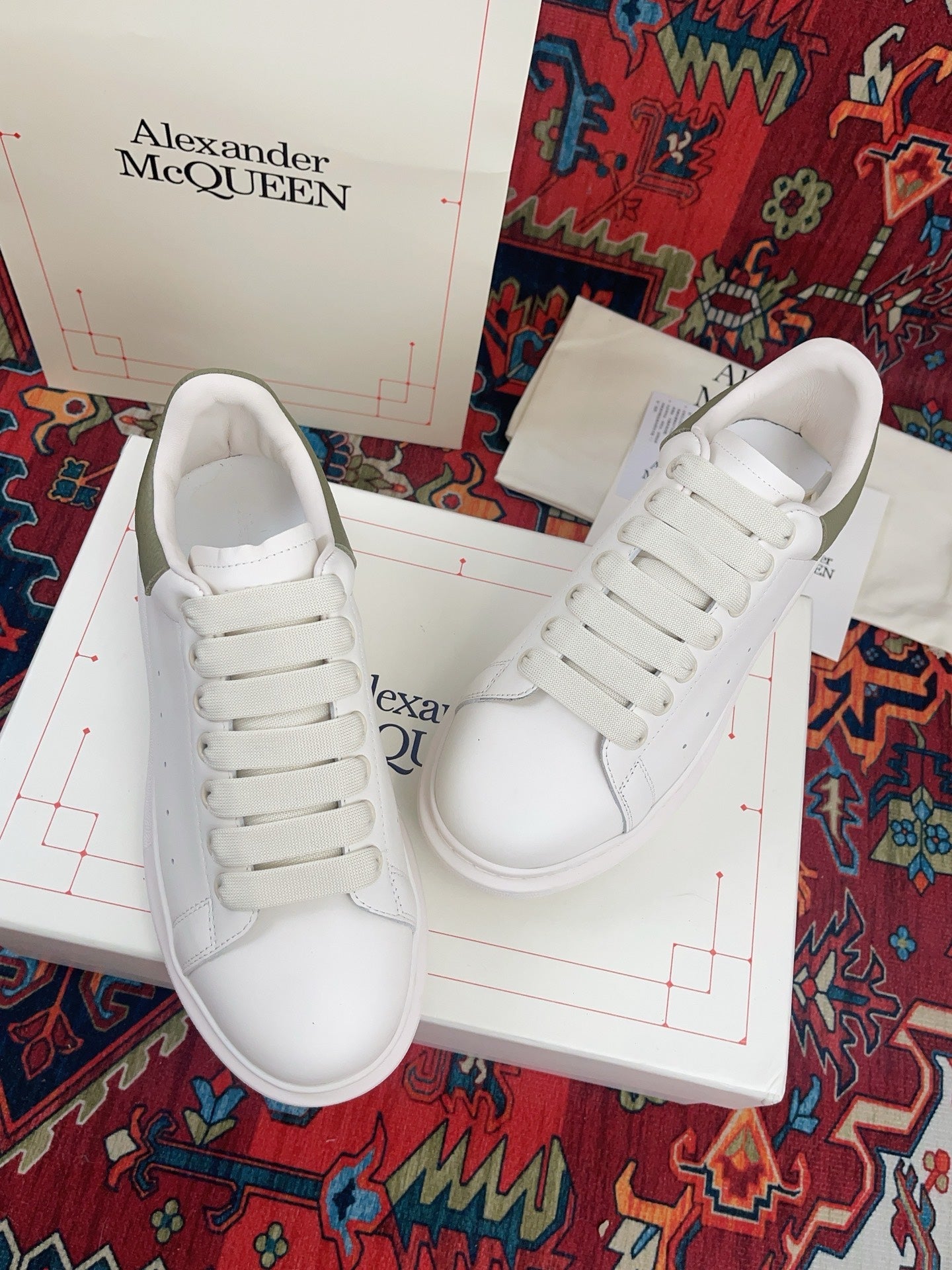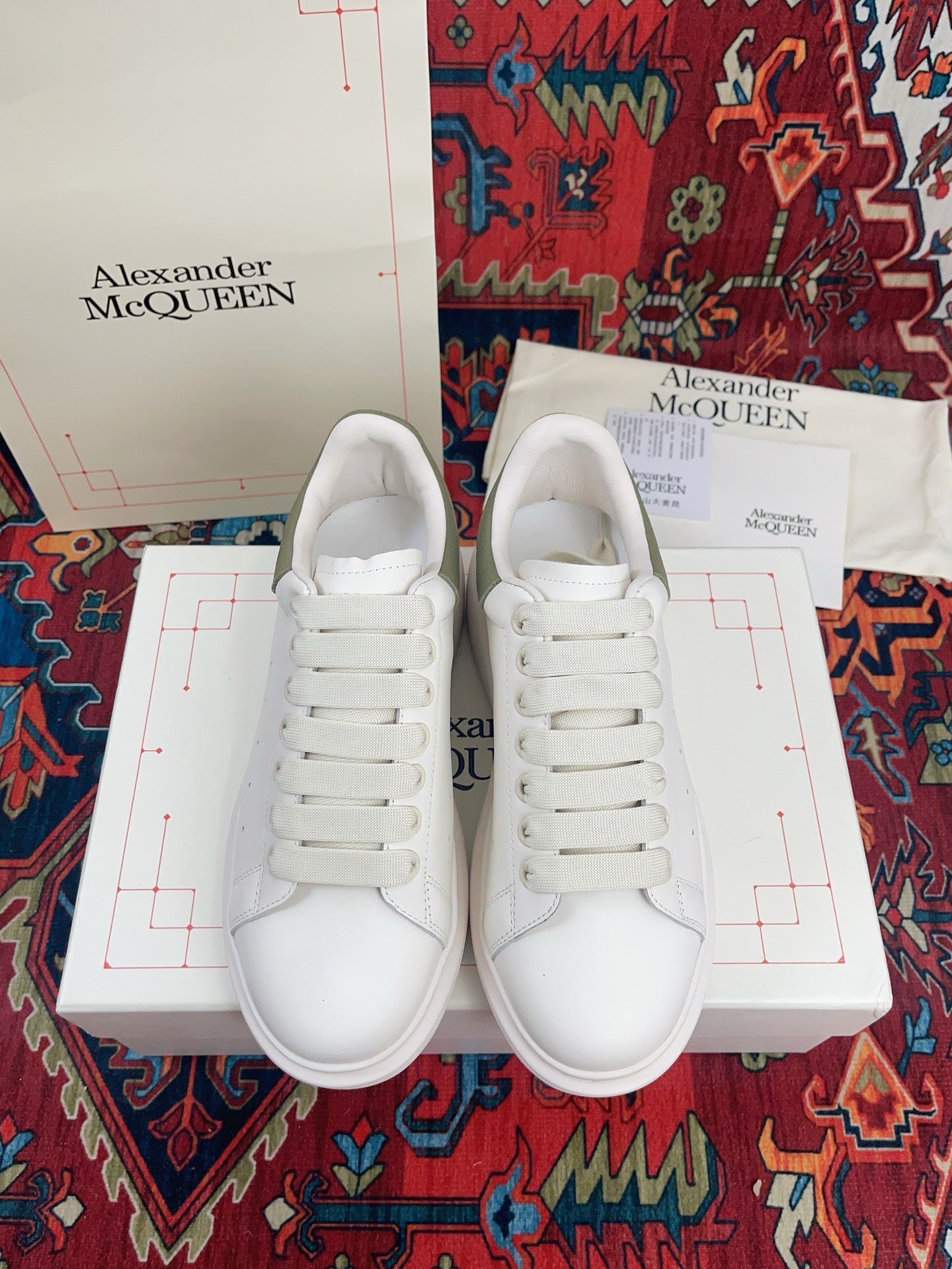 OVERSIZED SNEAKER IN WHITE CALFSKIN WITH EMBOSSED OLIVE GREEN HEEL TAB