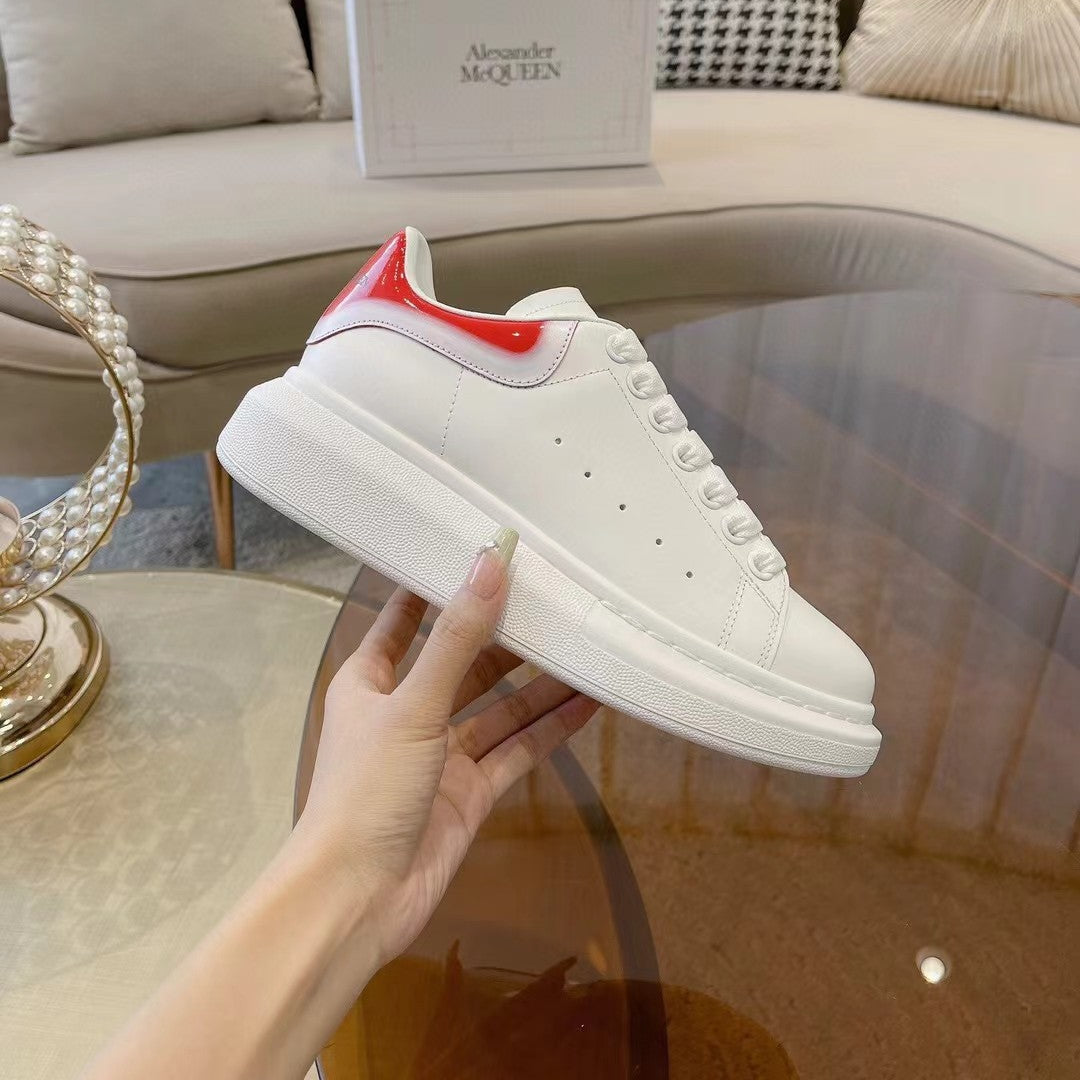 OVERSIZED SNEAKER IN WHITE CALFSKIN WITH GLOSSY RED AND WHITE HEEL TAB