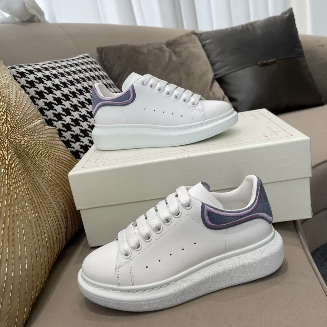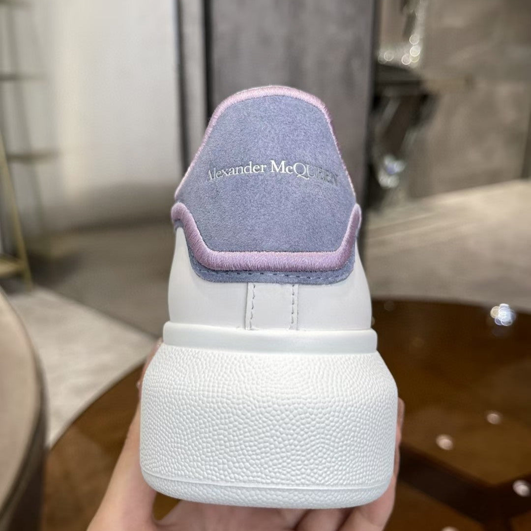 OVERSIZED SNEAKER IN WHITE CALFSKIN WITH PURPLE SUEDE HEEL TAB