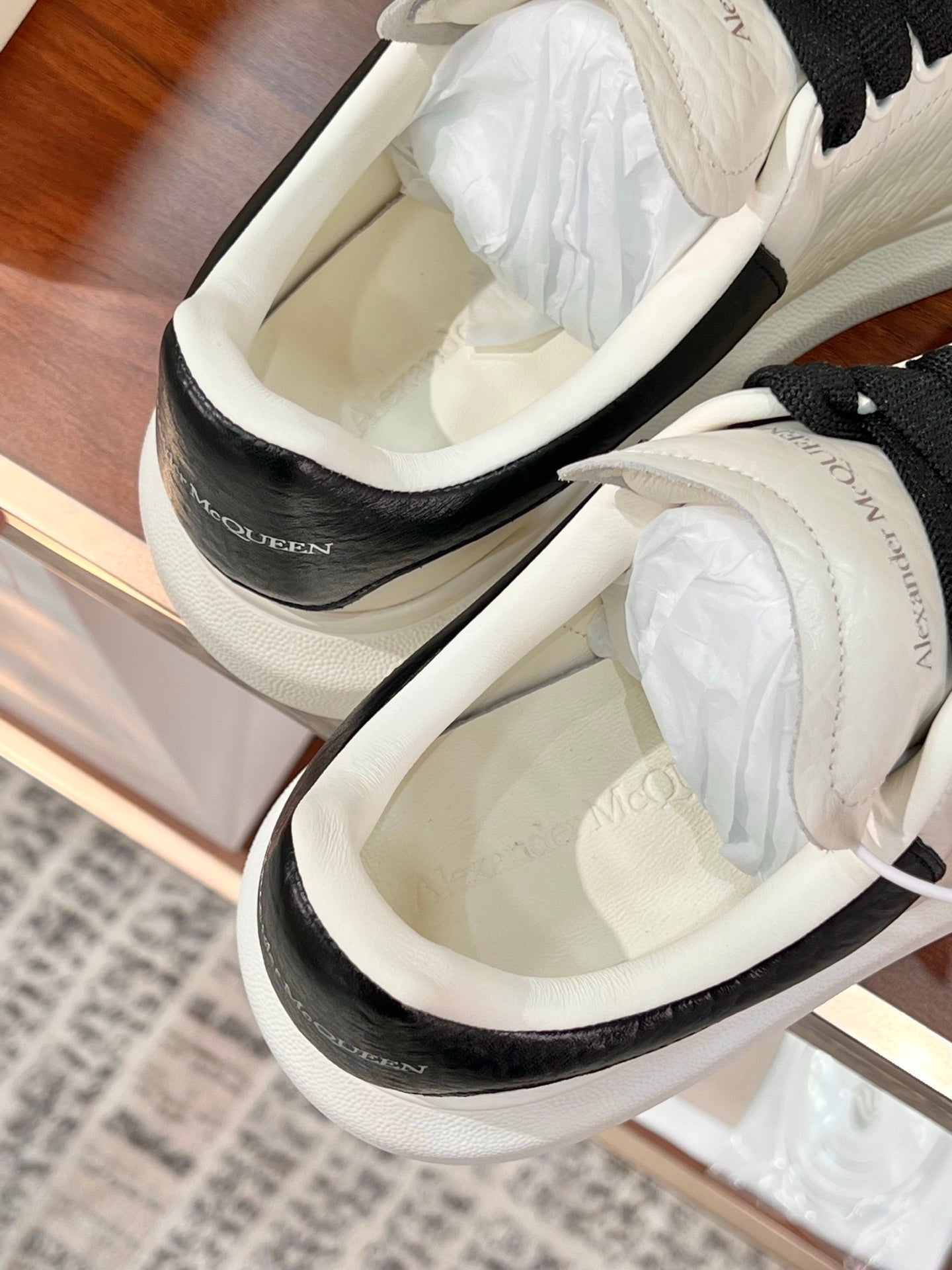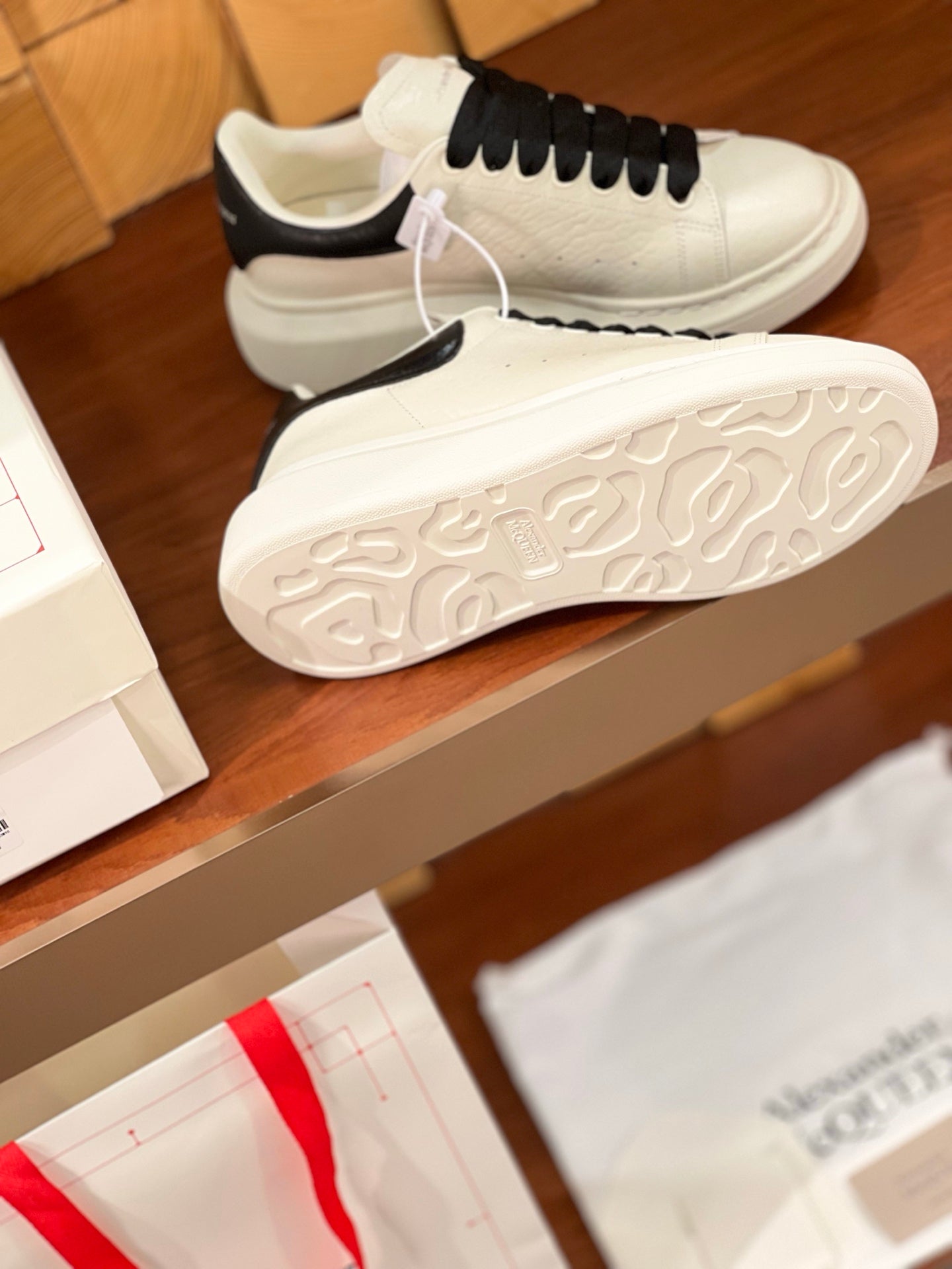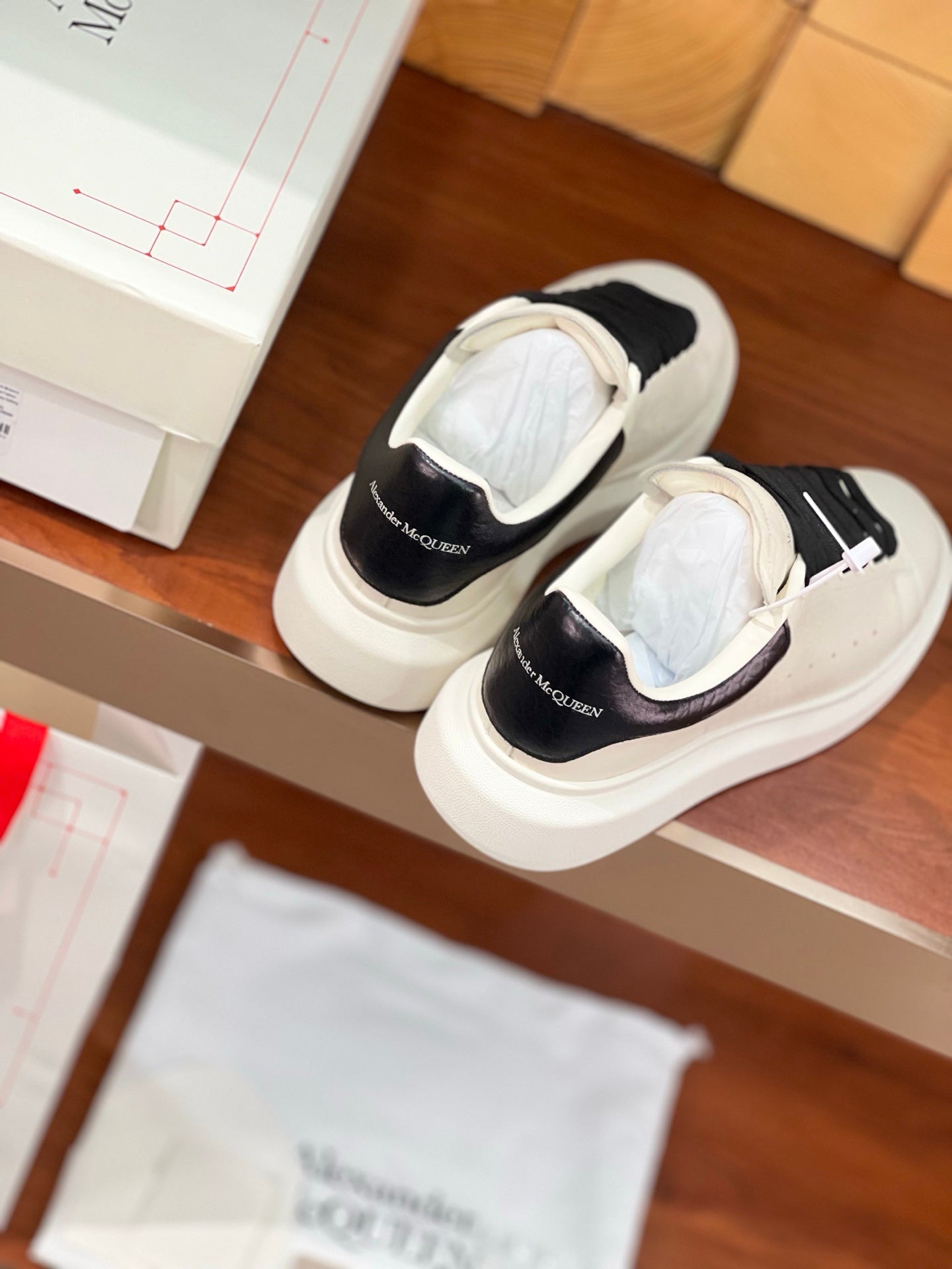 OVERSIZED SNEAKERS IN WHITE CALFSKIN BLACK HEEL BLACK LACES