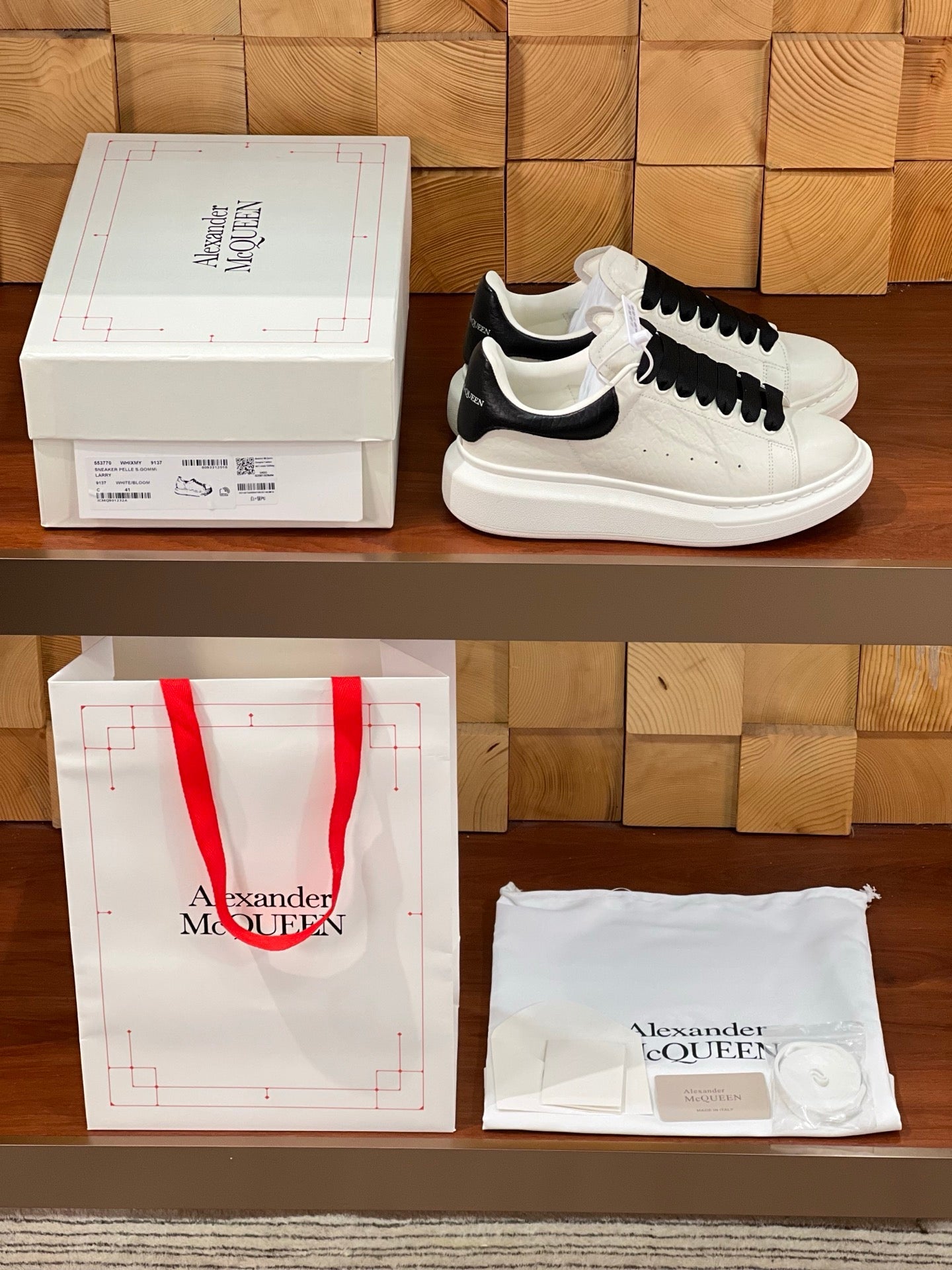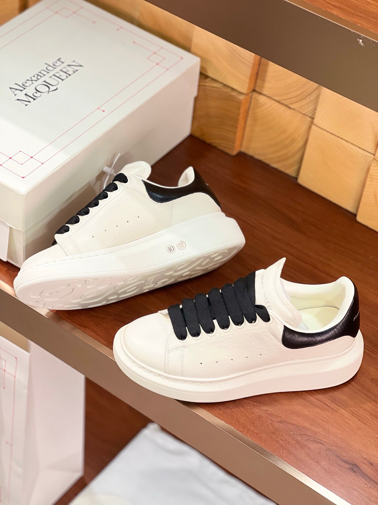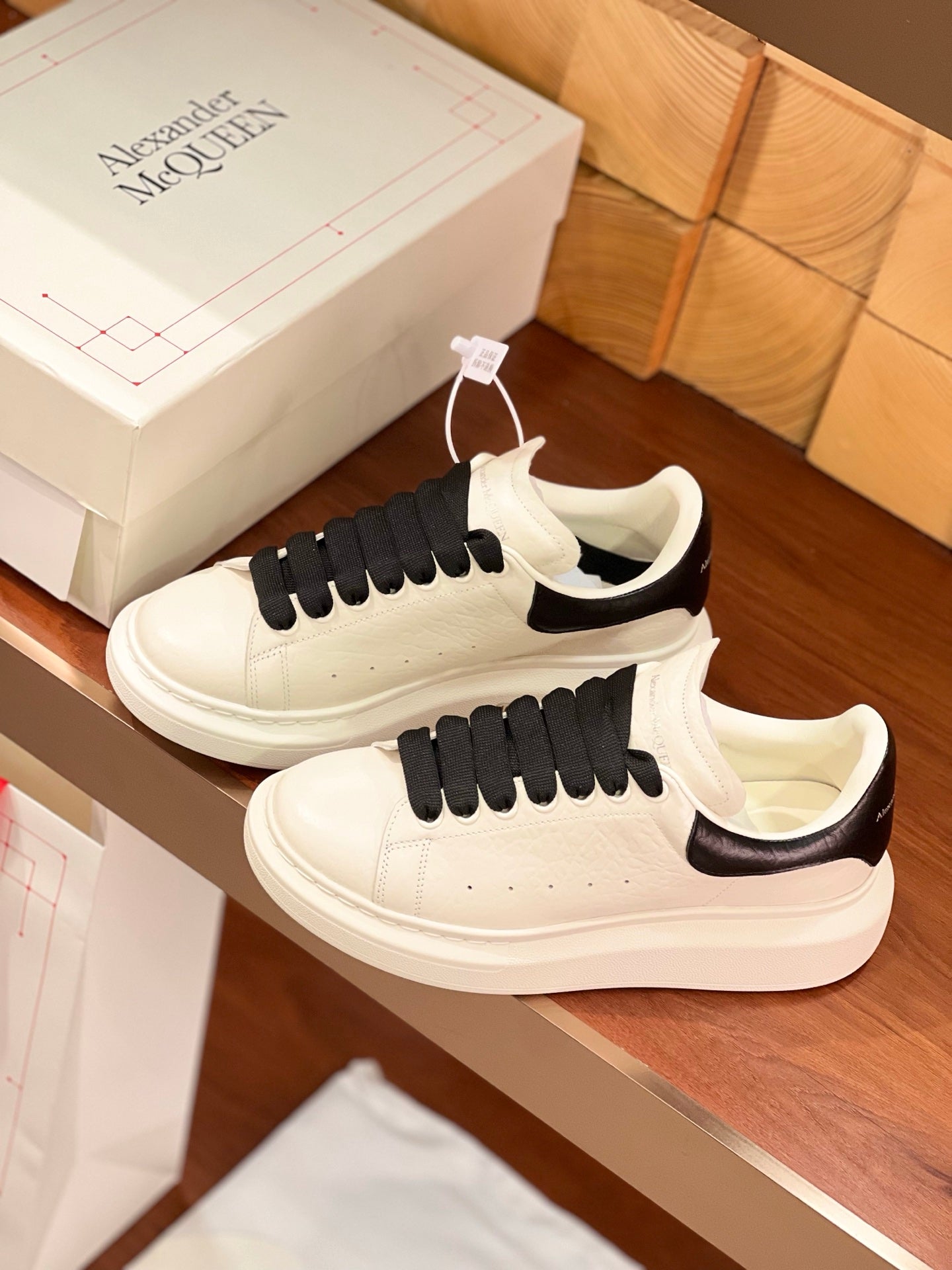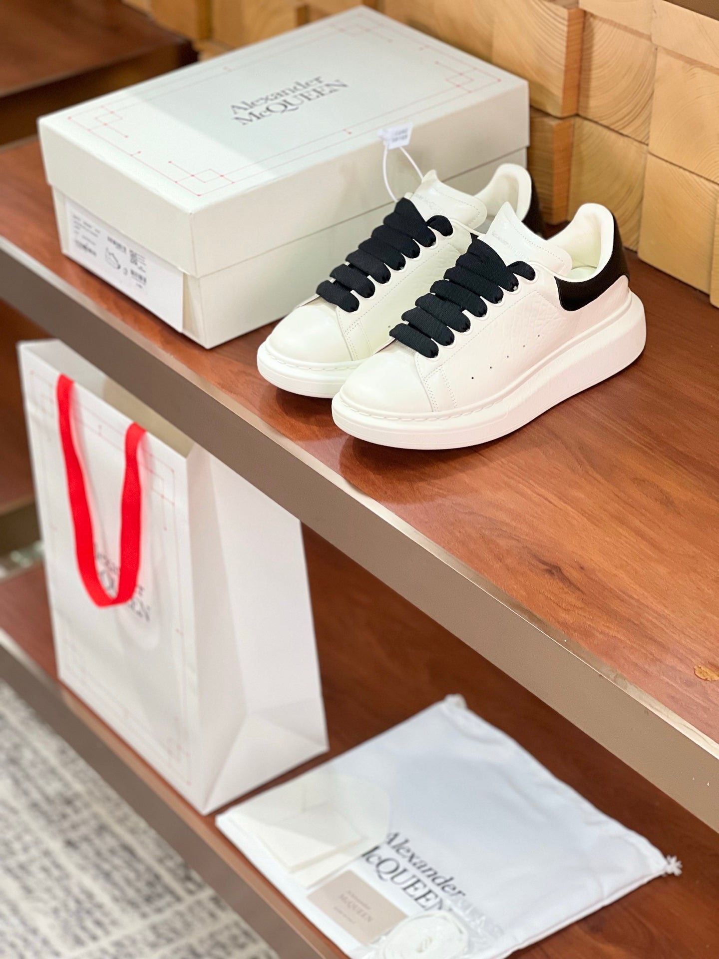 OVERSIZED SNEAKERS IN WHITE CALFSKIN BLACK HEEL BLACK LACES