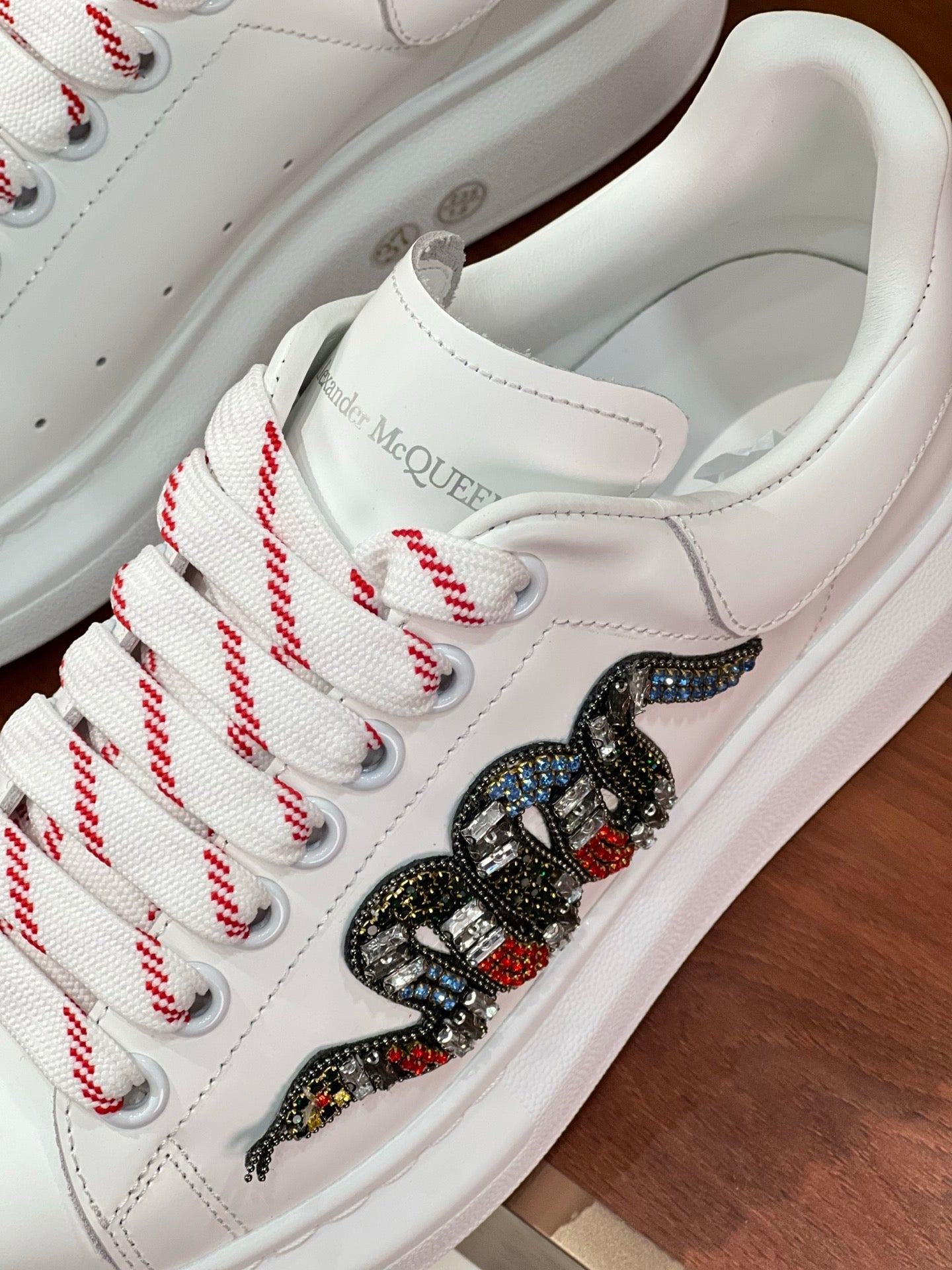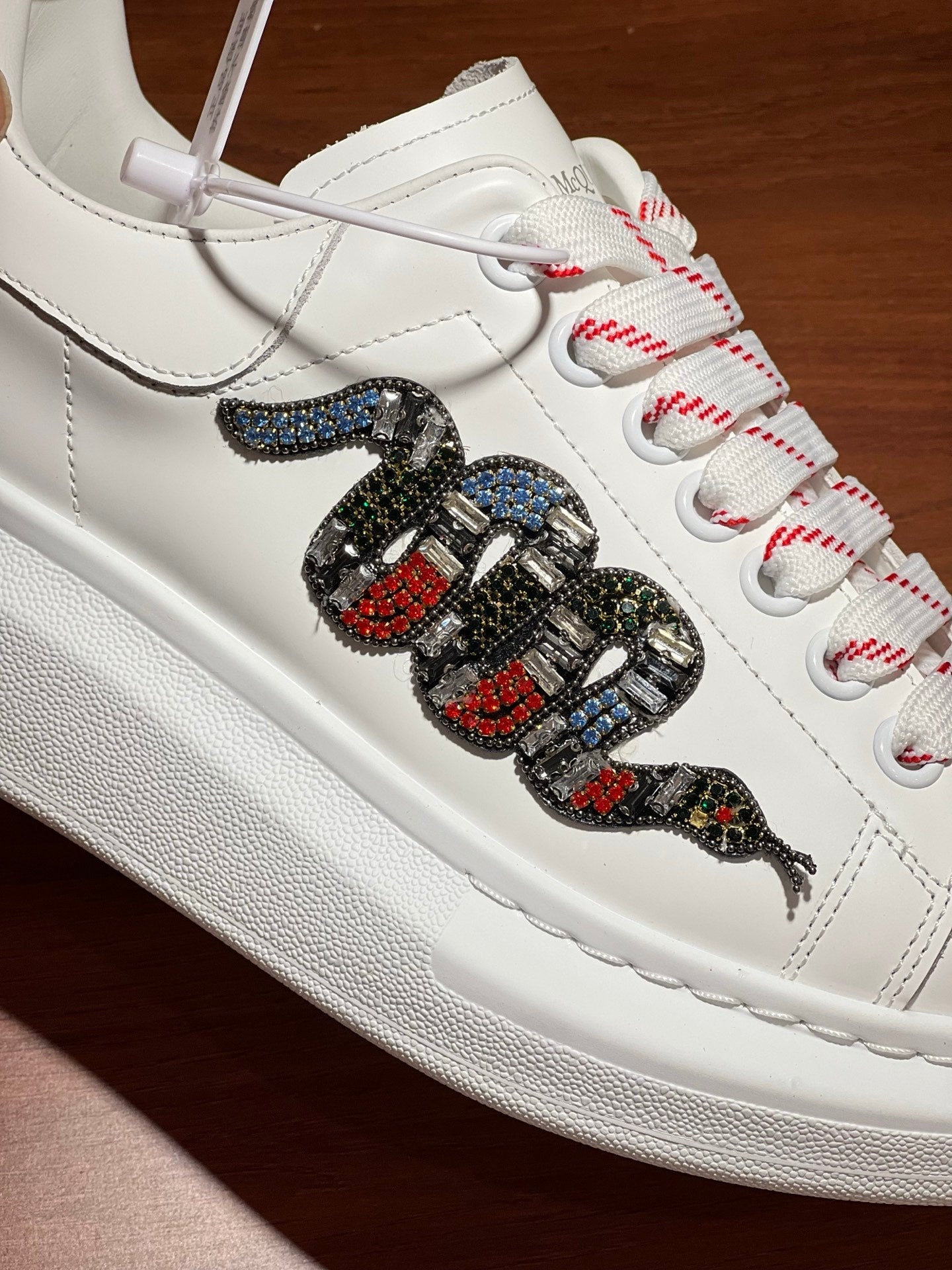 OVERSIZED SNEAKERS IN WHITE CALFSKIN EMBROIDERED CRYSTAL SNAKE
