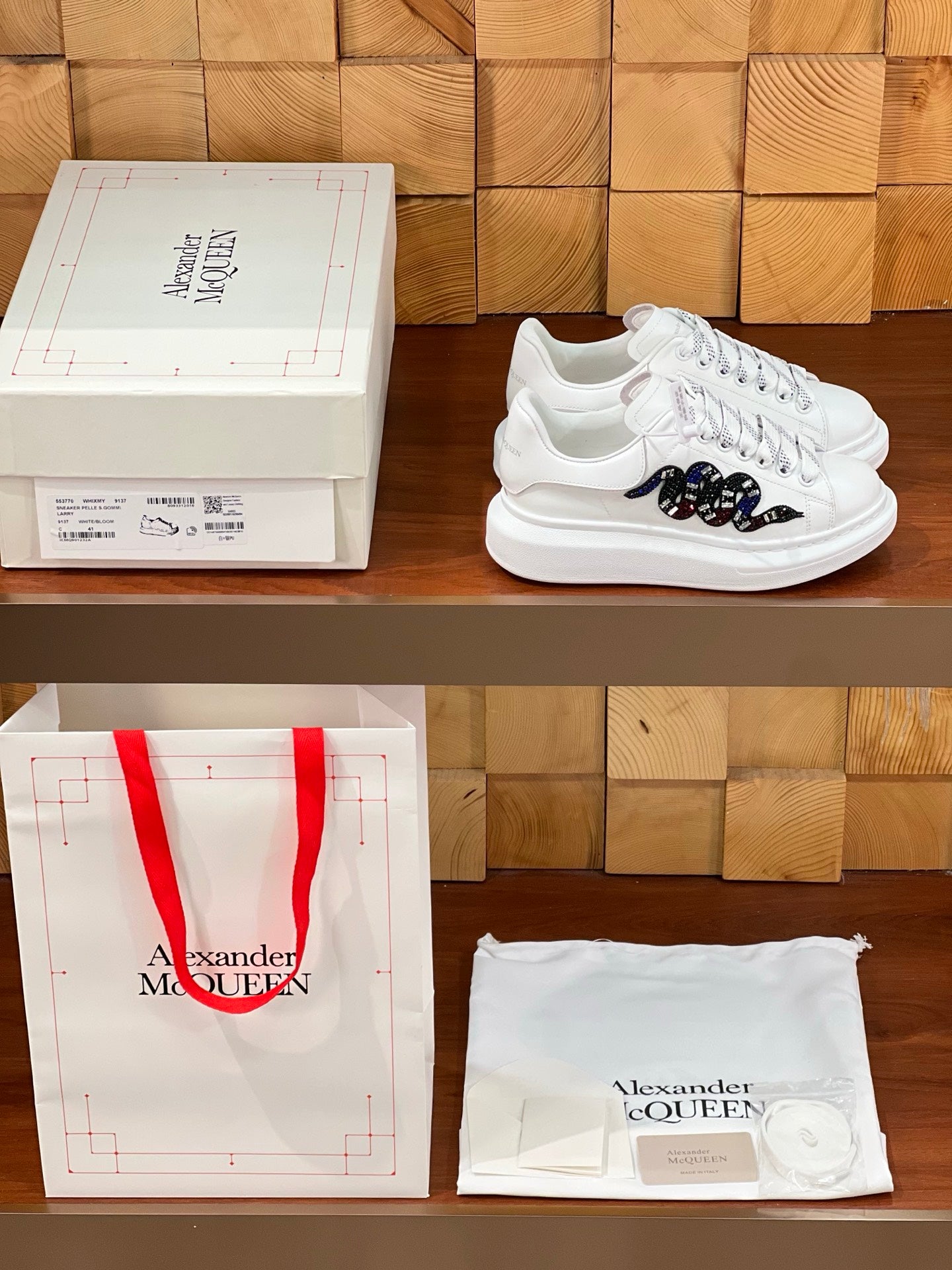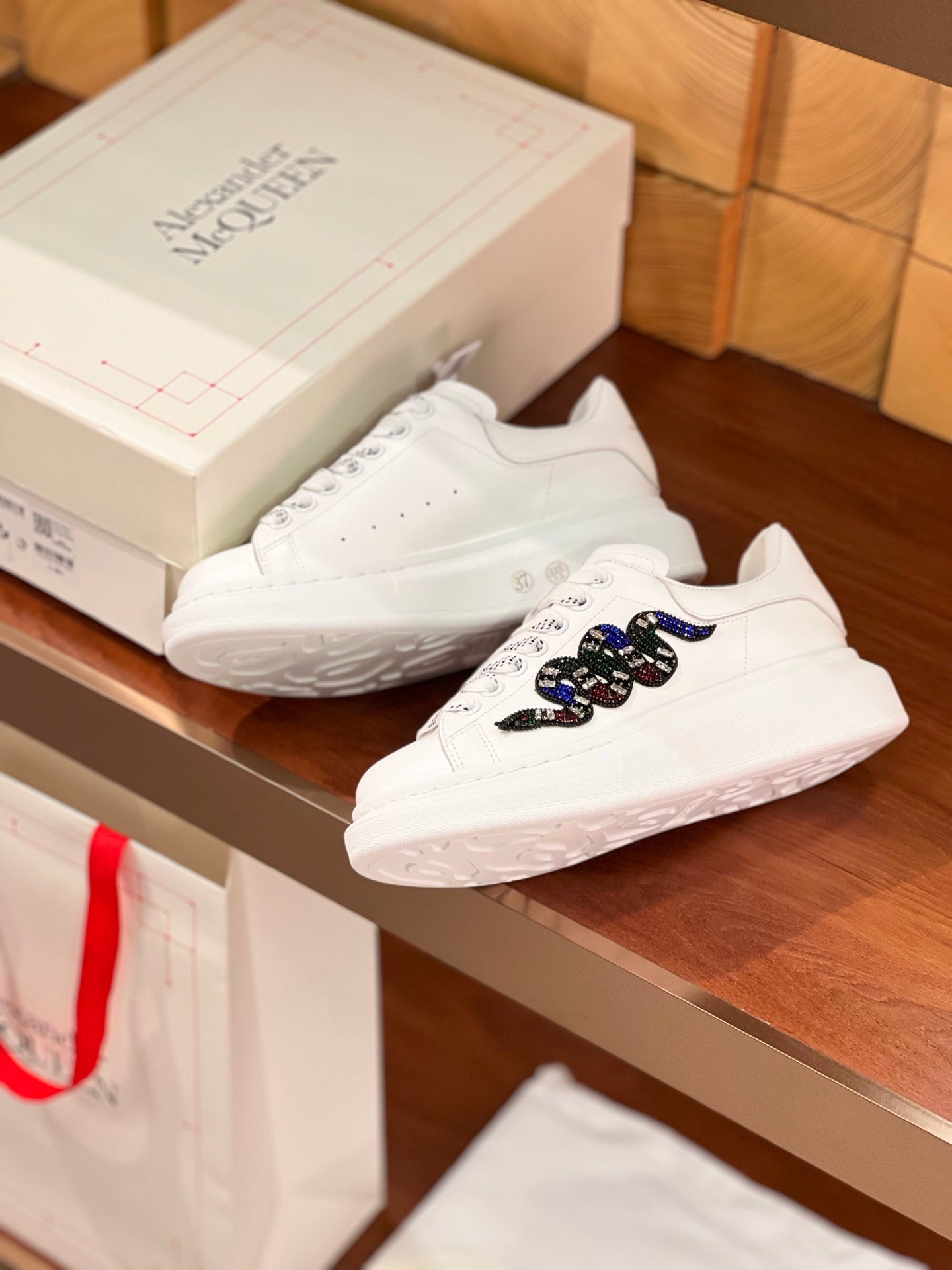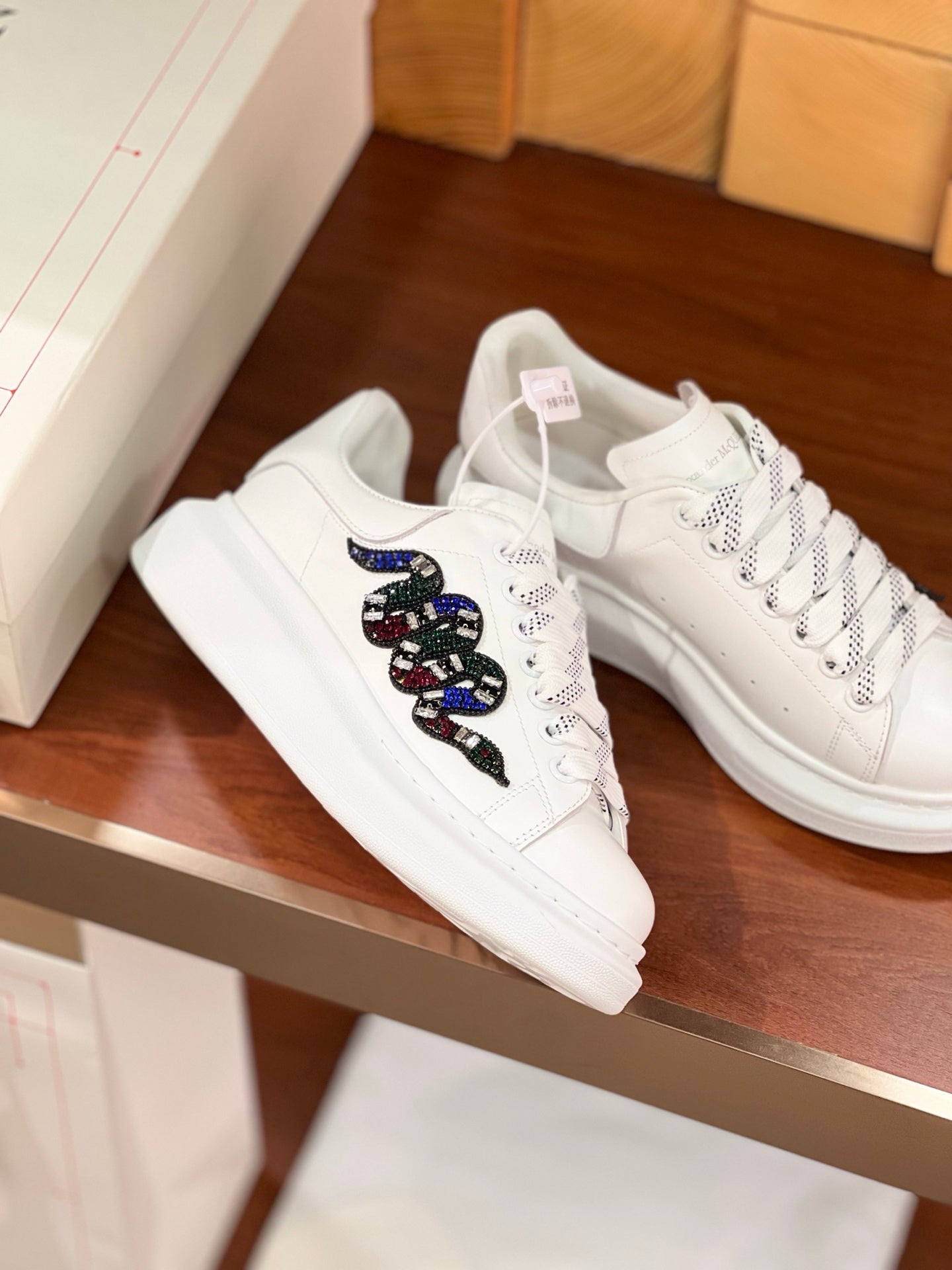 OVERSIZED SNEAKERS IN WHITE CALFSKIN EMBROIDERED MULTICOLOR SNAKE