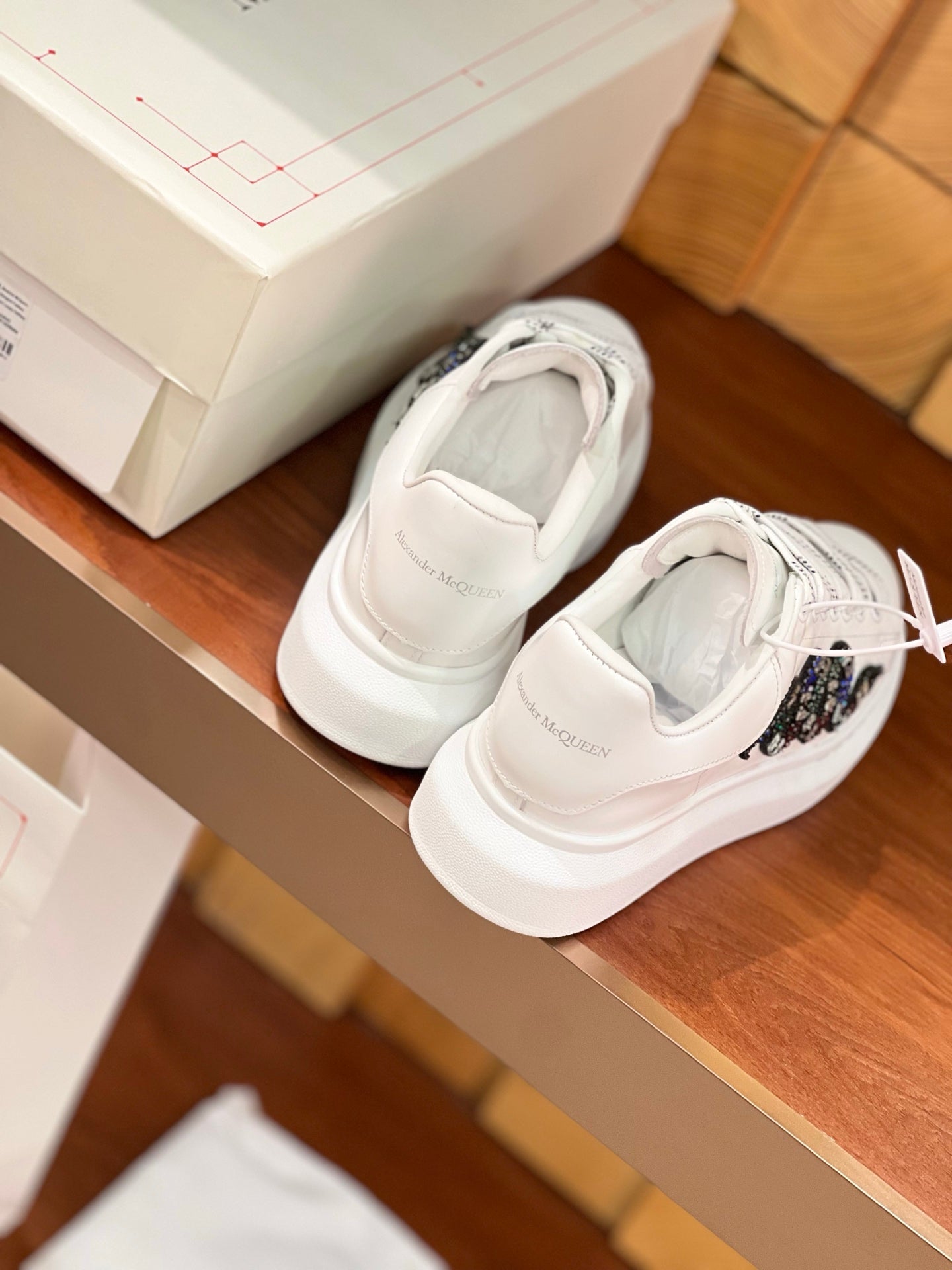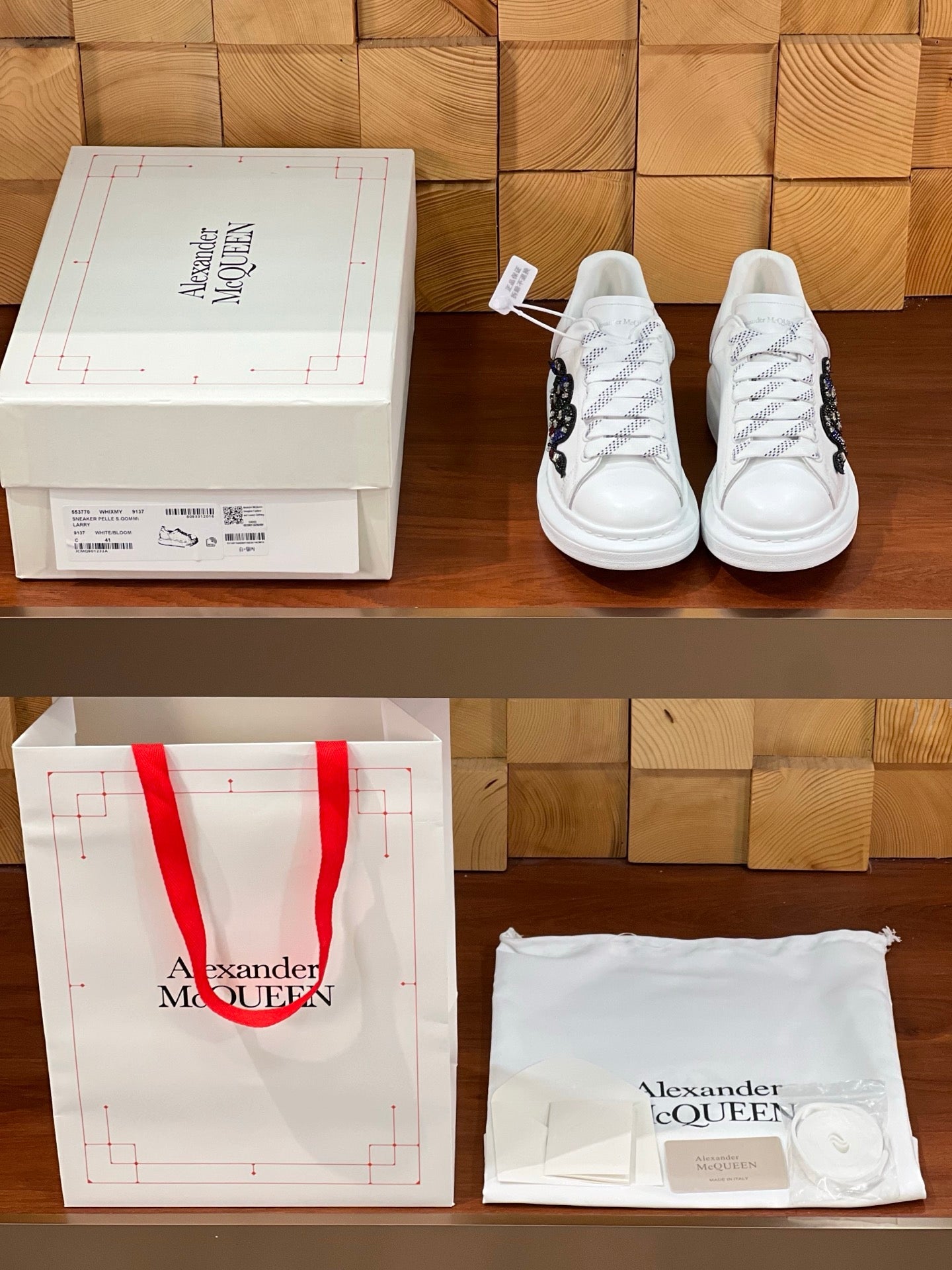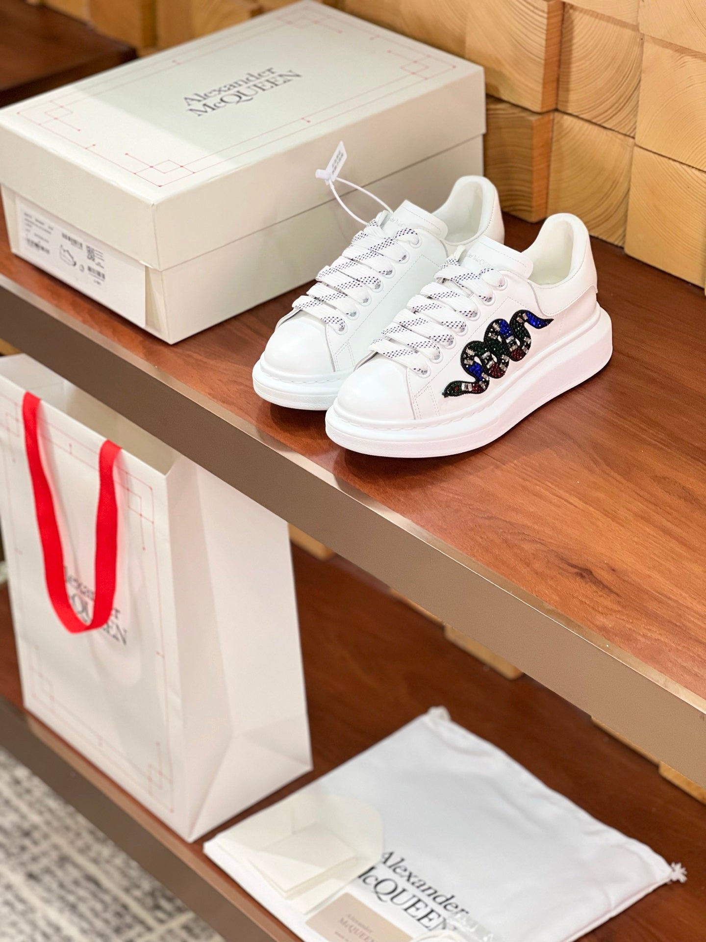OVERSIZED SNEAKERS IN WHITE CALFSKIN EMBROIDERED MULTICOLOR SNAKE